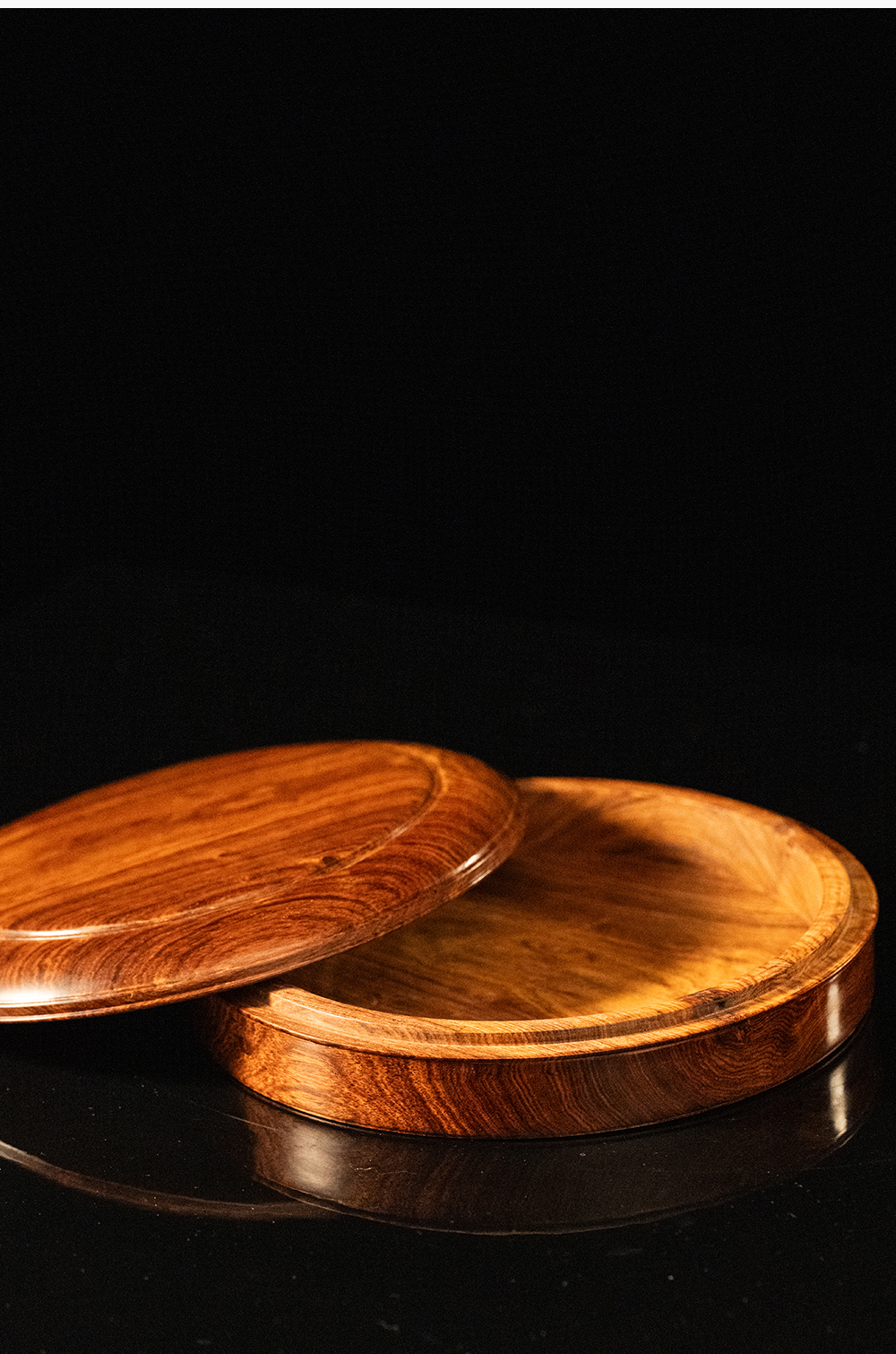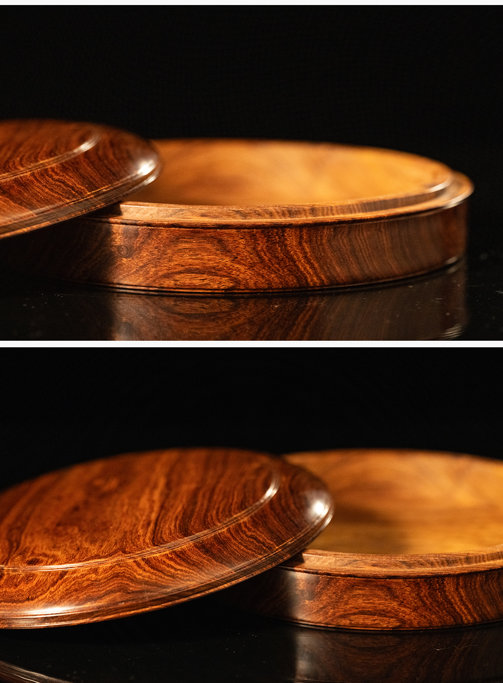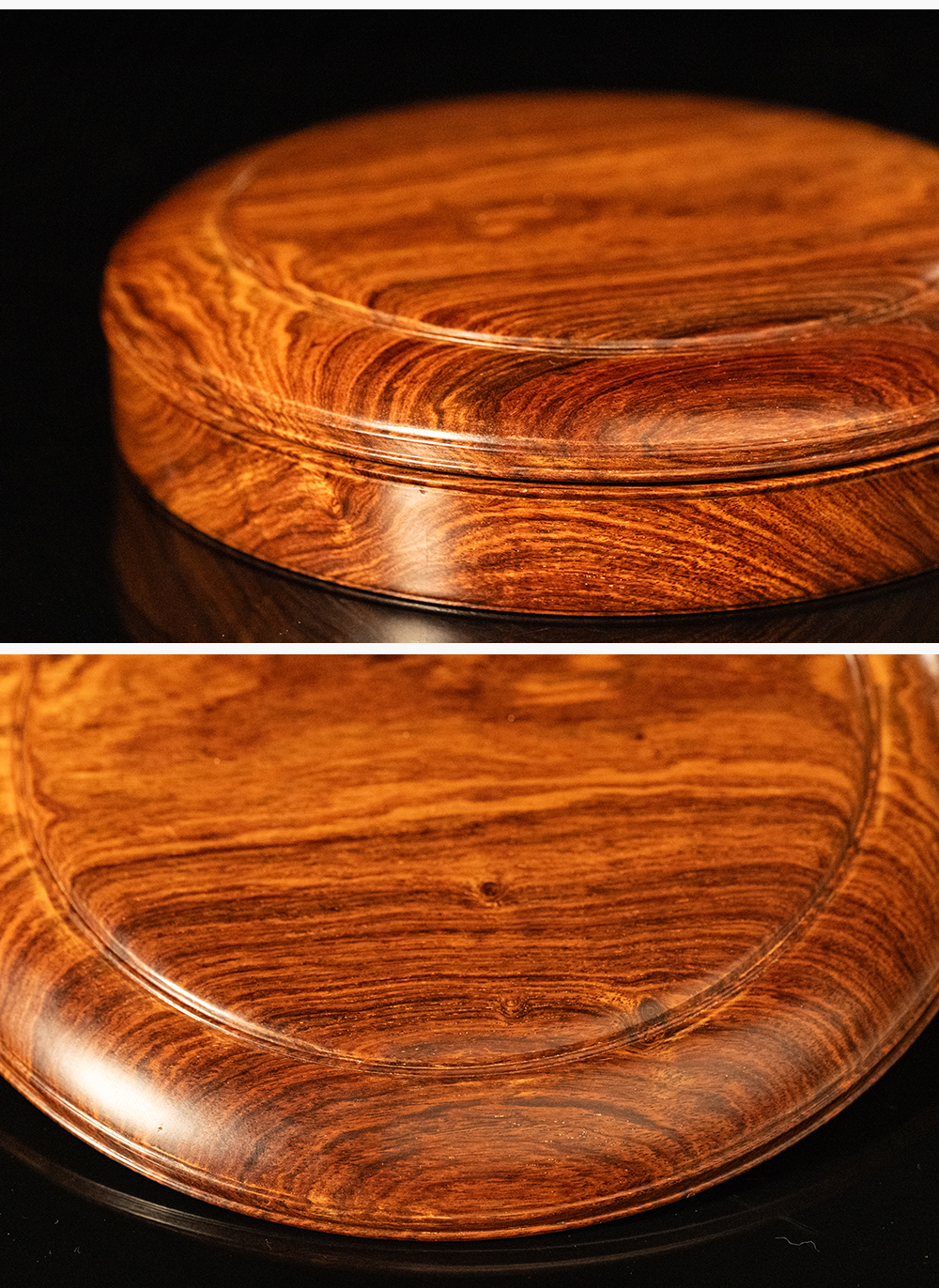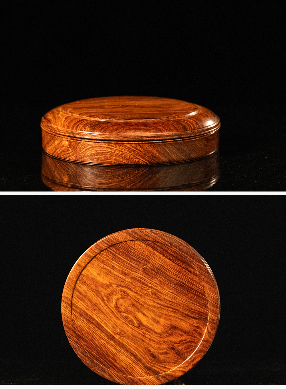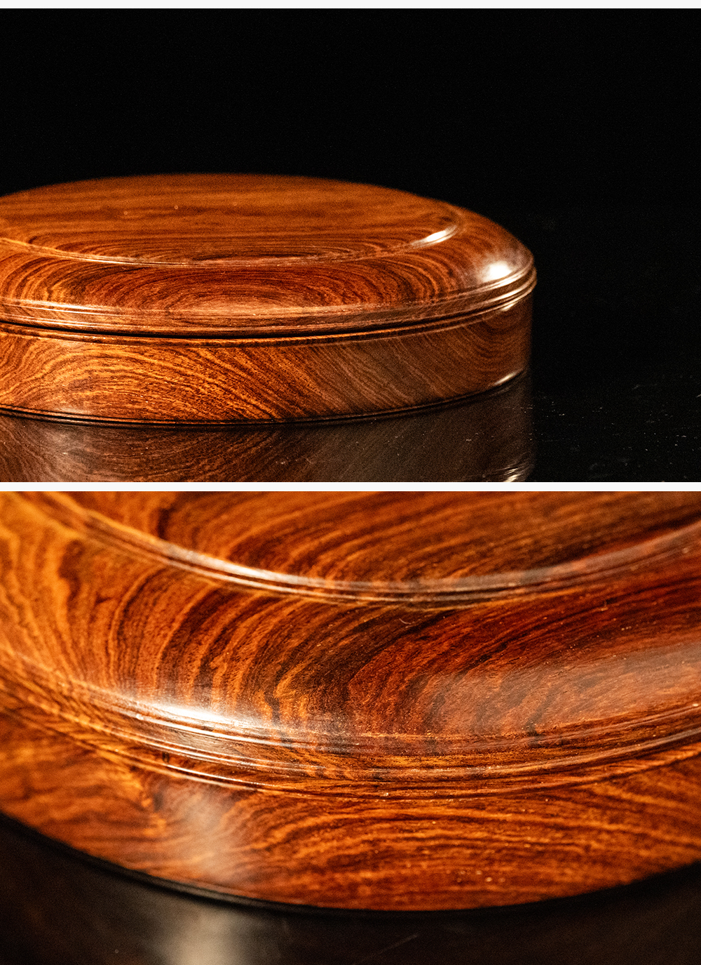 清 青金石嵌绿松石莲花盖盒(红木座)