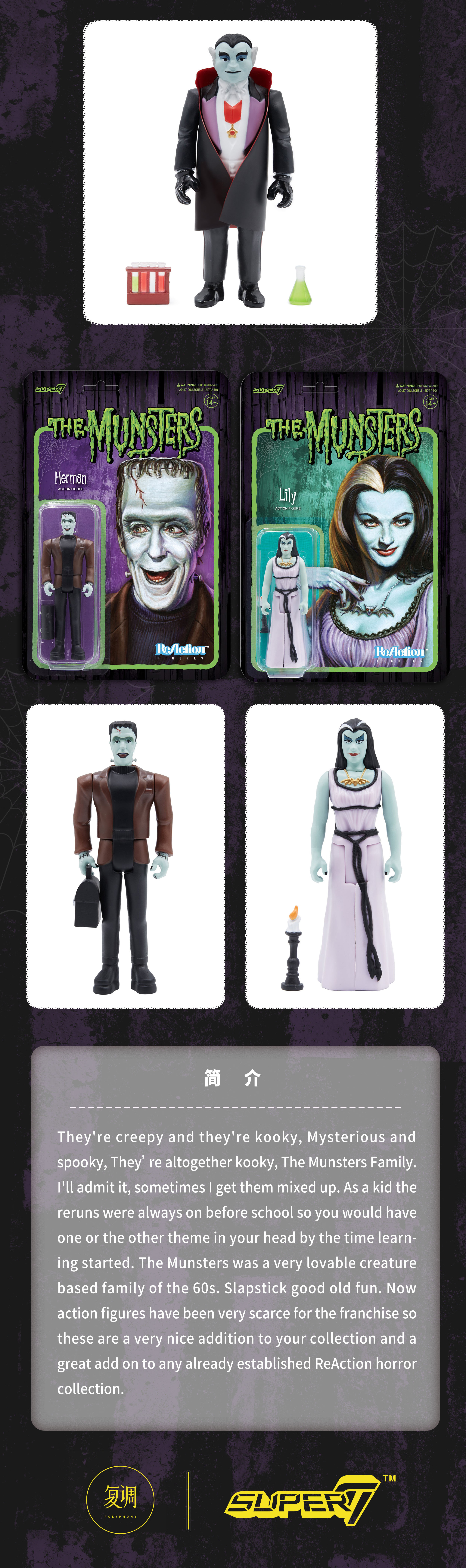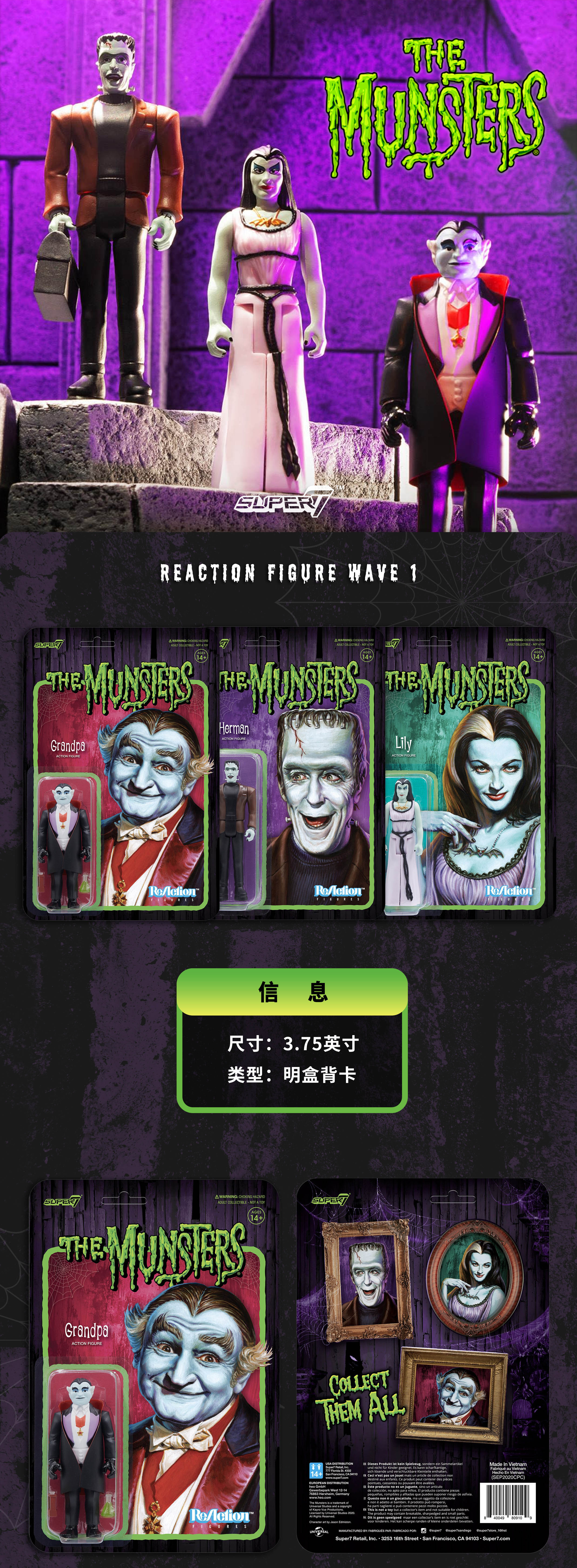 现货 Super7 明斯特一家 Munsters ReAction 3.75 挂卡