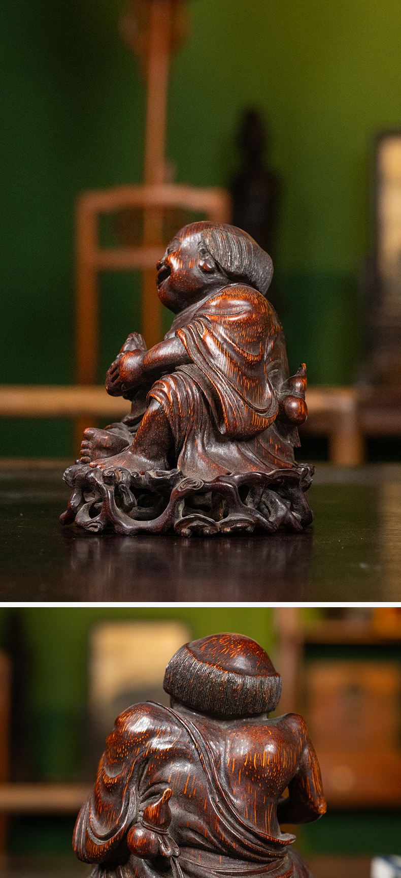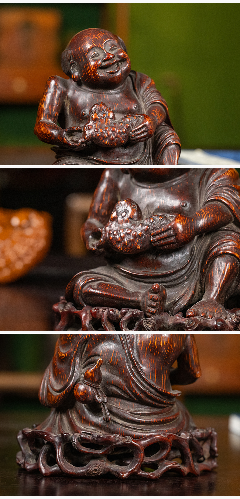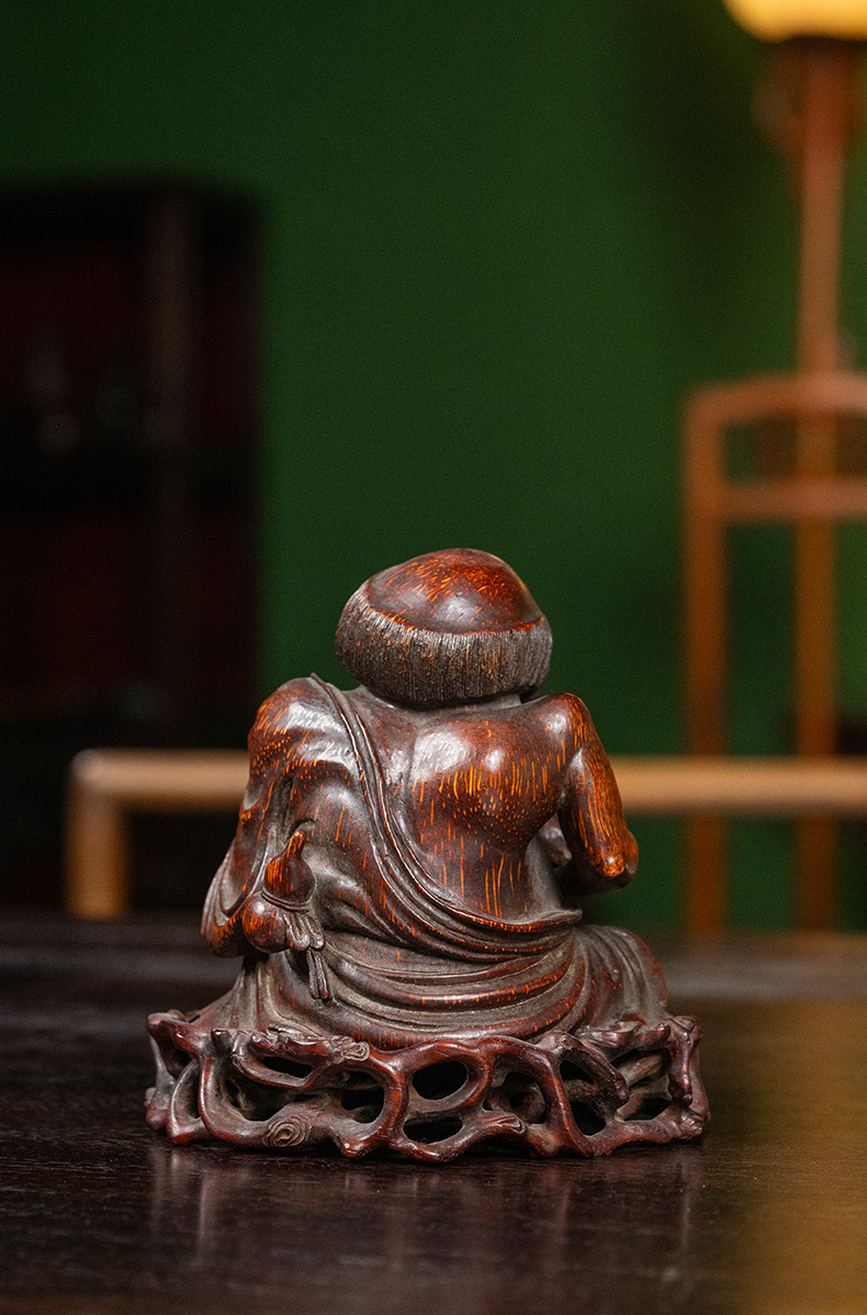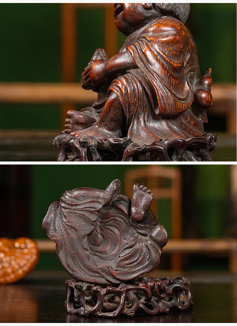 清 青金石嵌绿松石莲花盖盒(红木座)