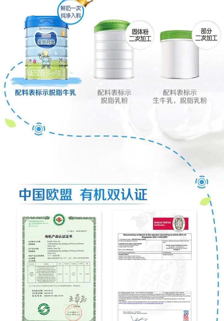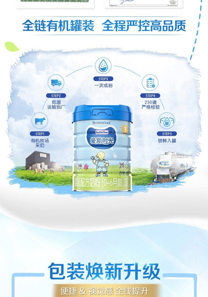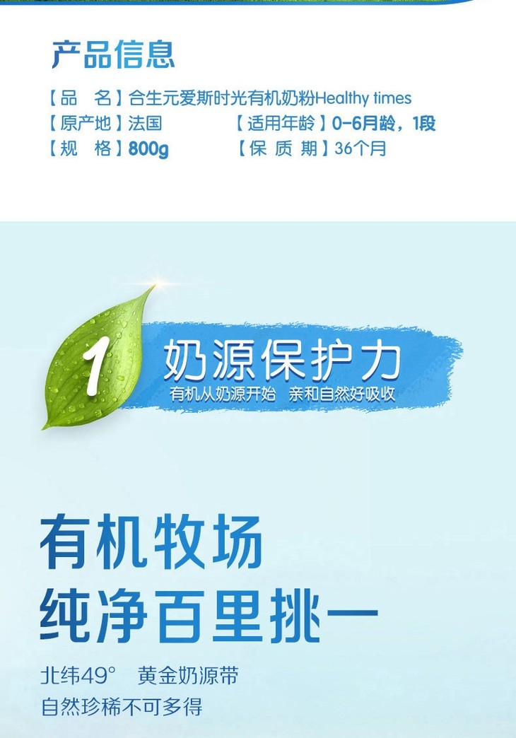 合生元 爱斯时光婴儿有机配方奶粉1段 800g