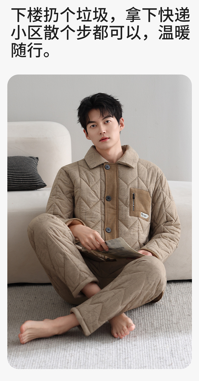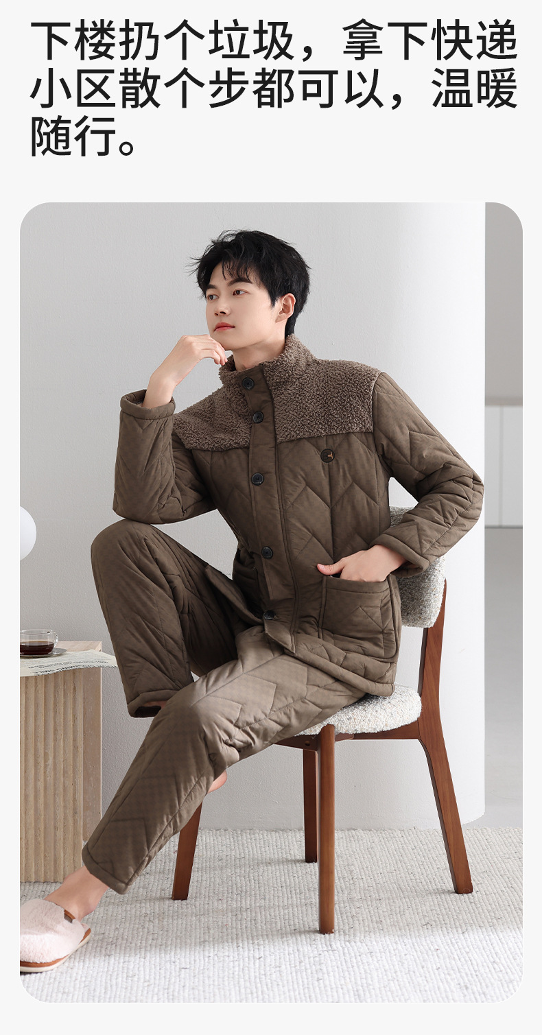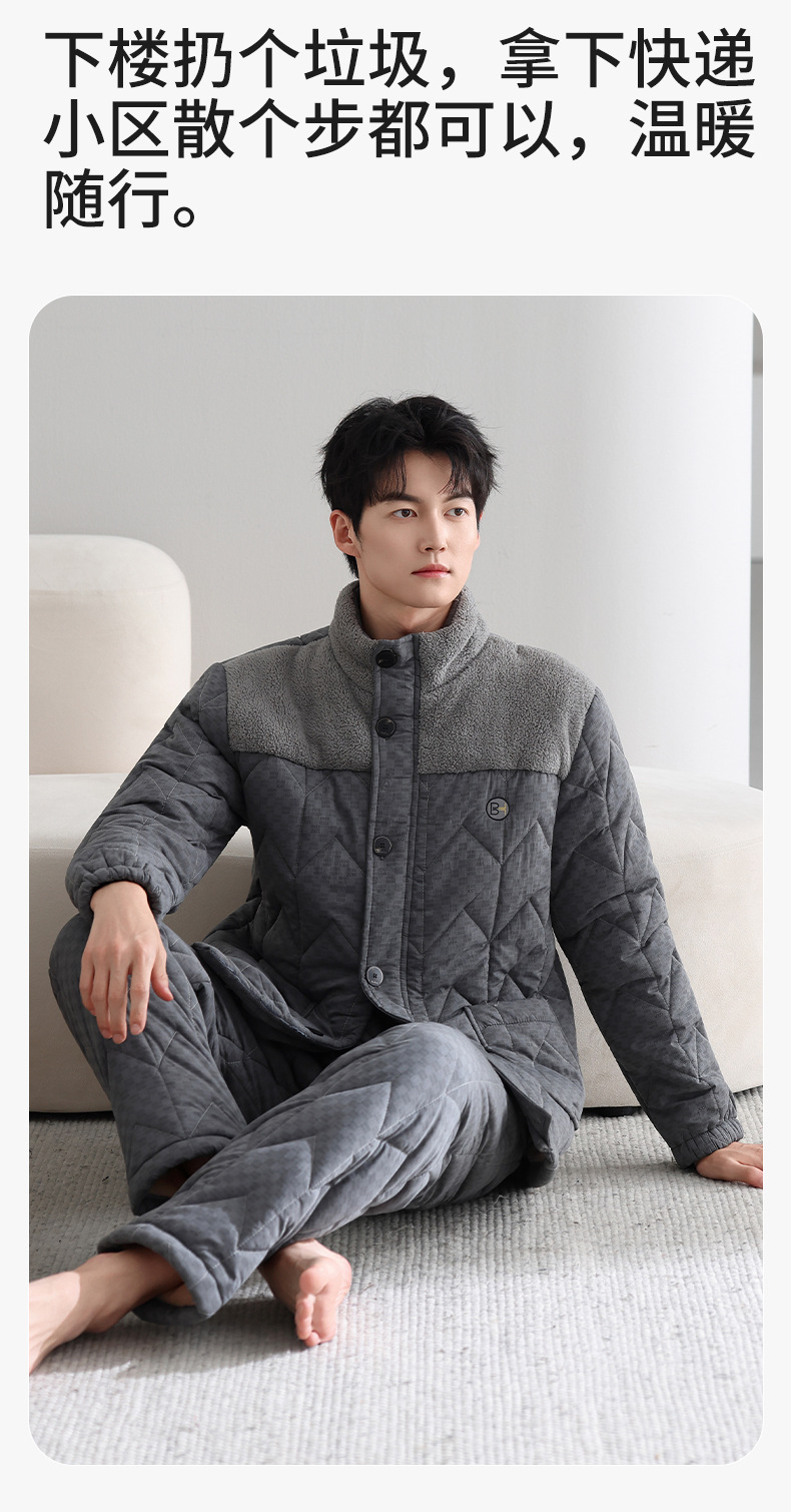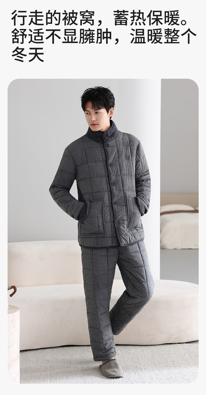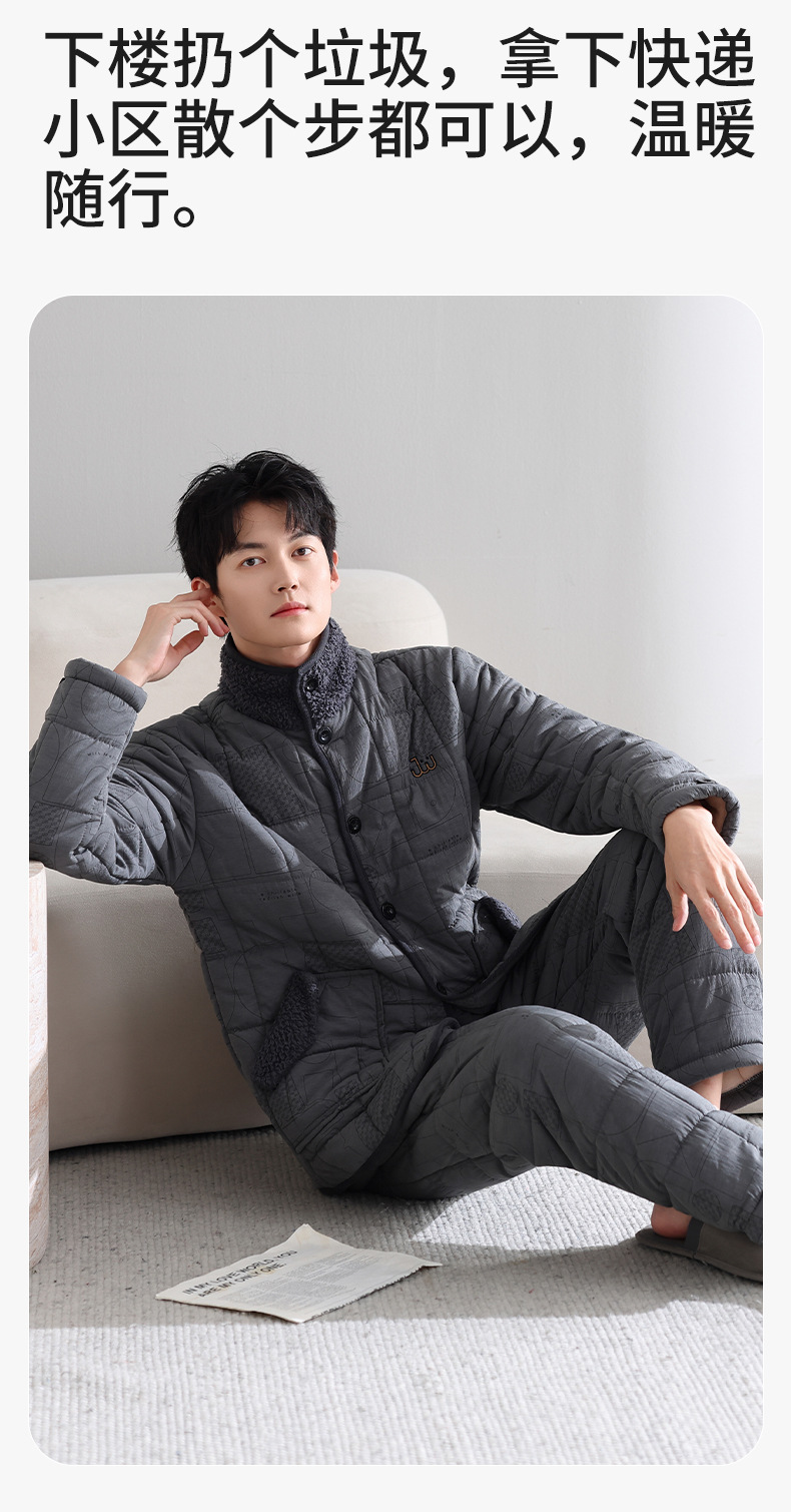 雀说 三层加厚羽绒夹棉袄睡衣男士冬季加绒家居服