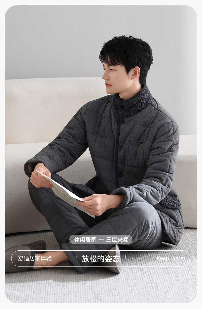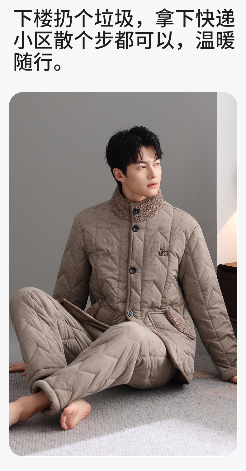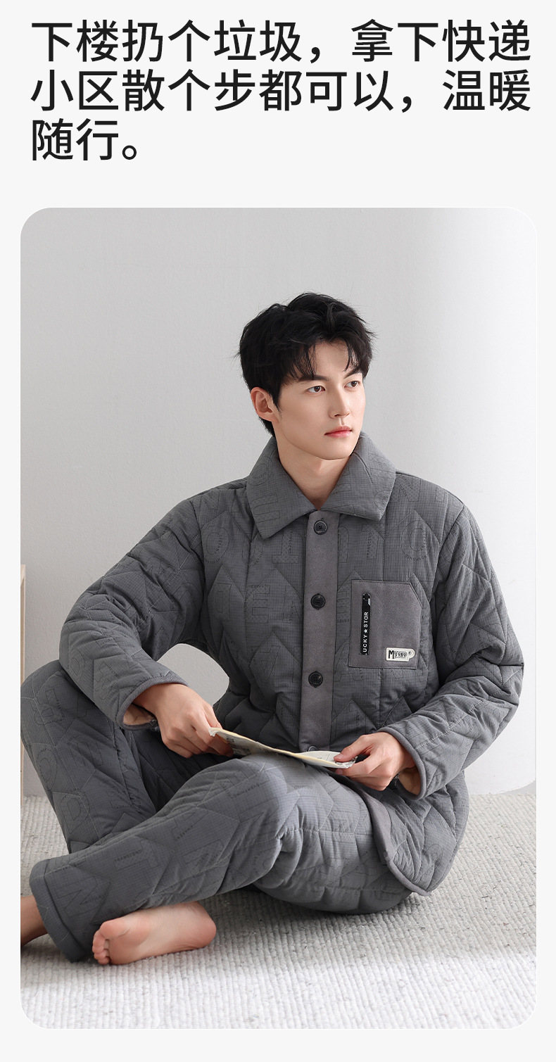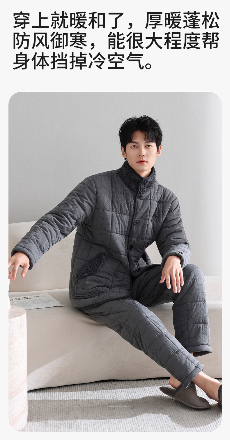 雀说 三层加厚羽绒夹棉袄睡衣男士冬季加绒家居服