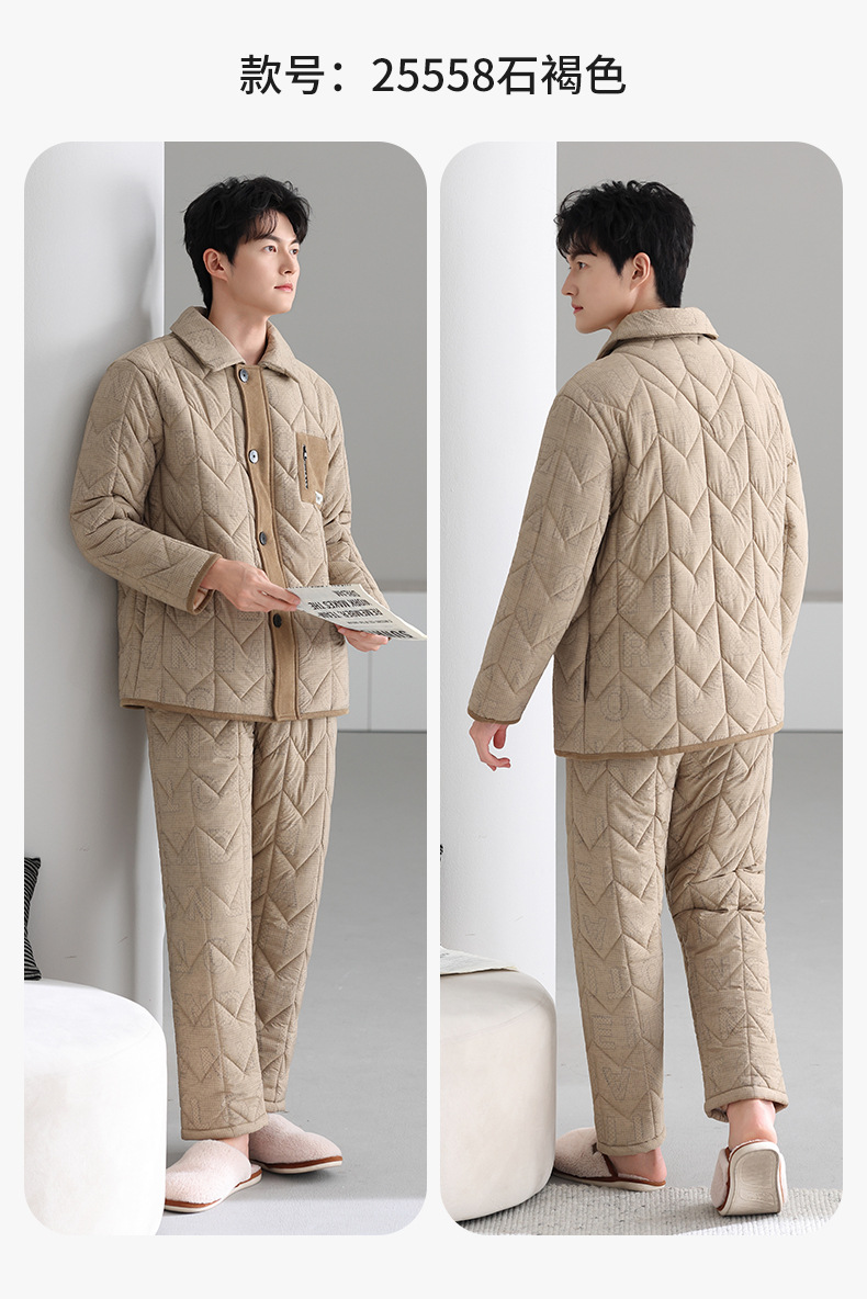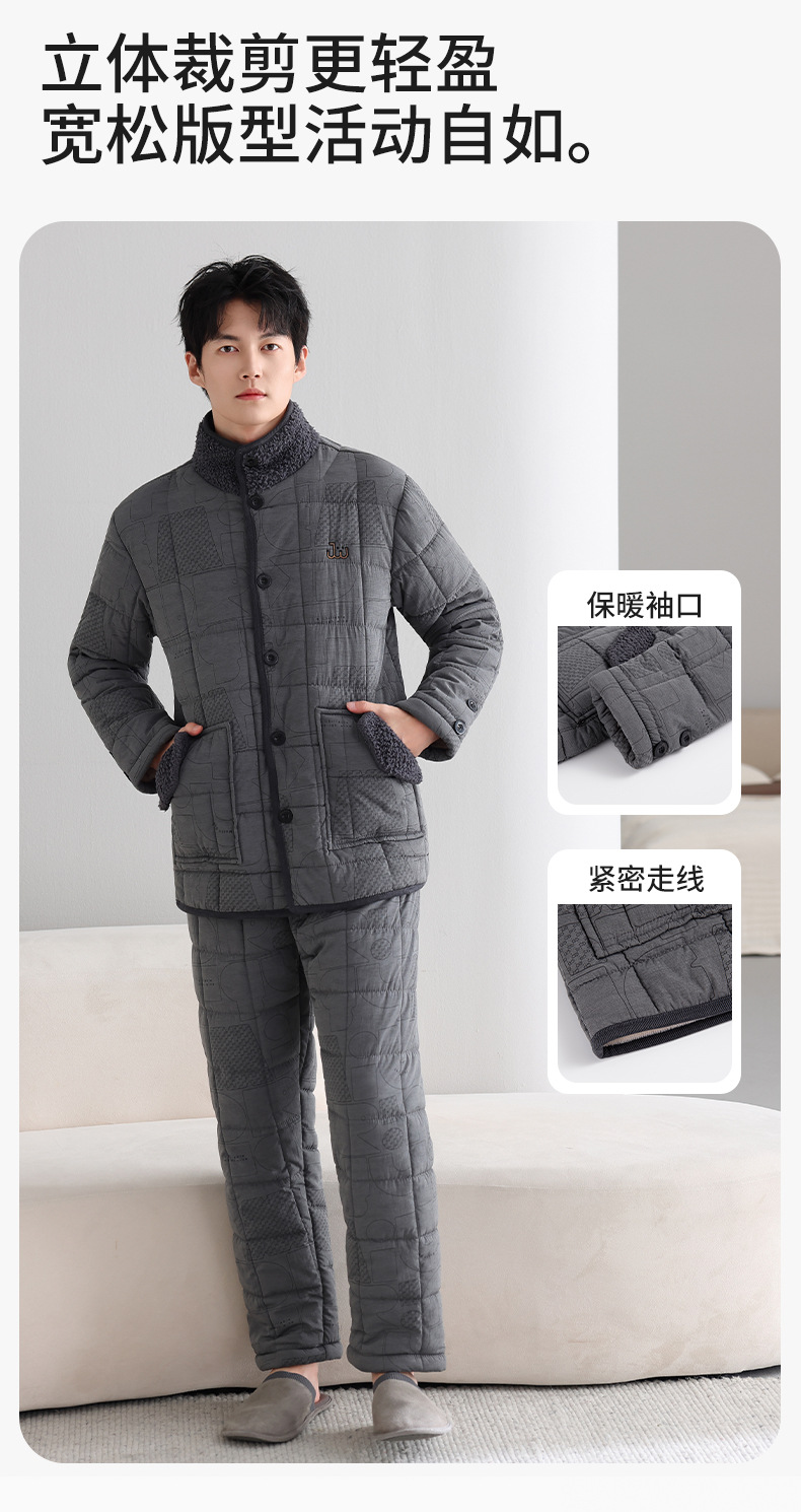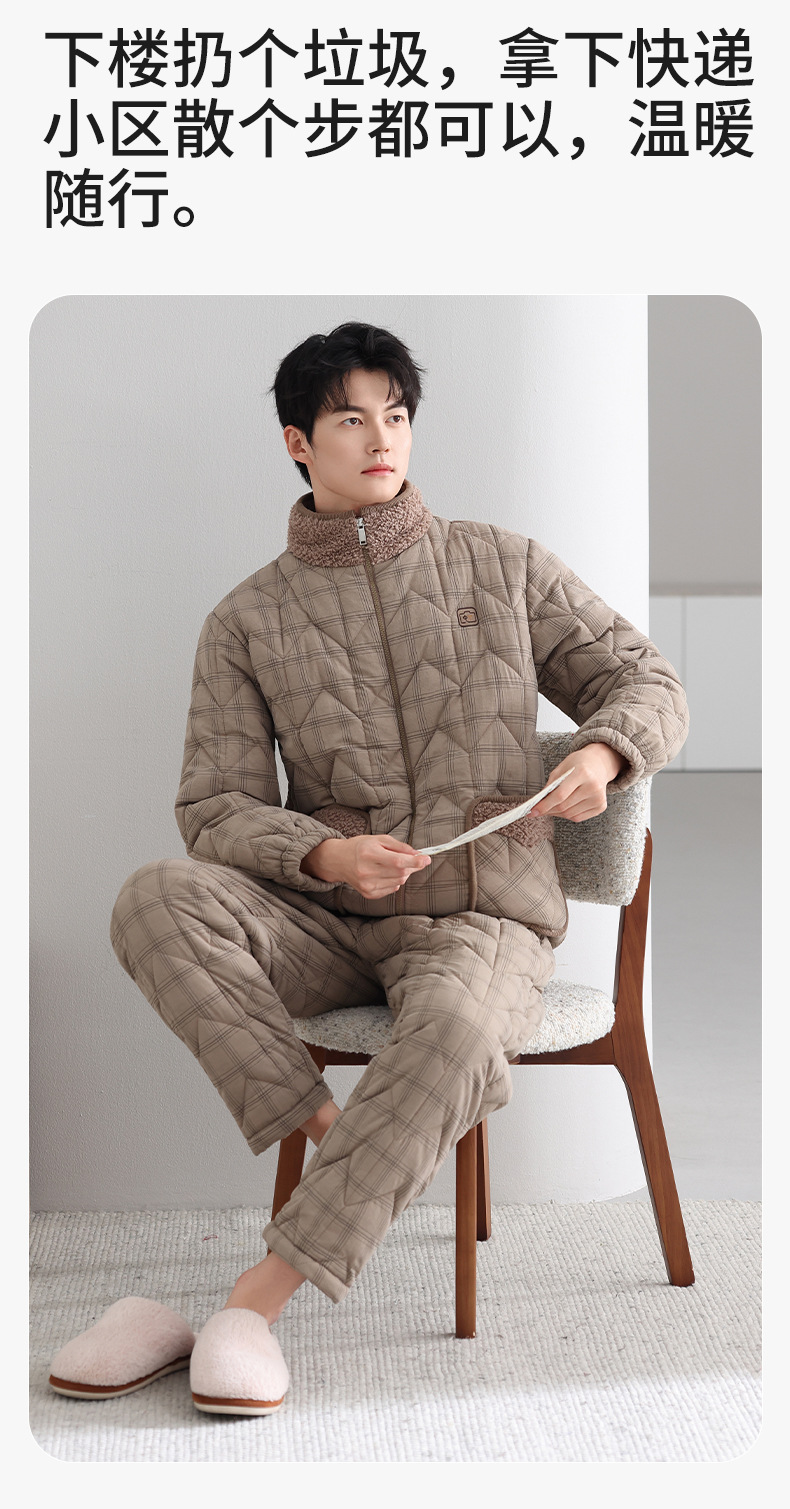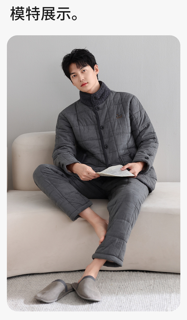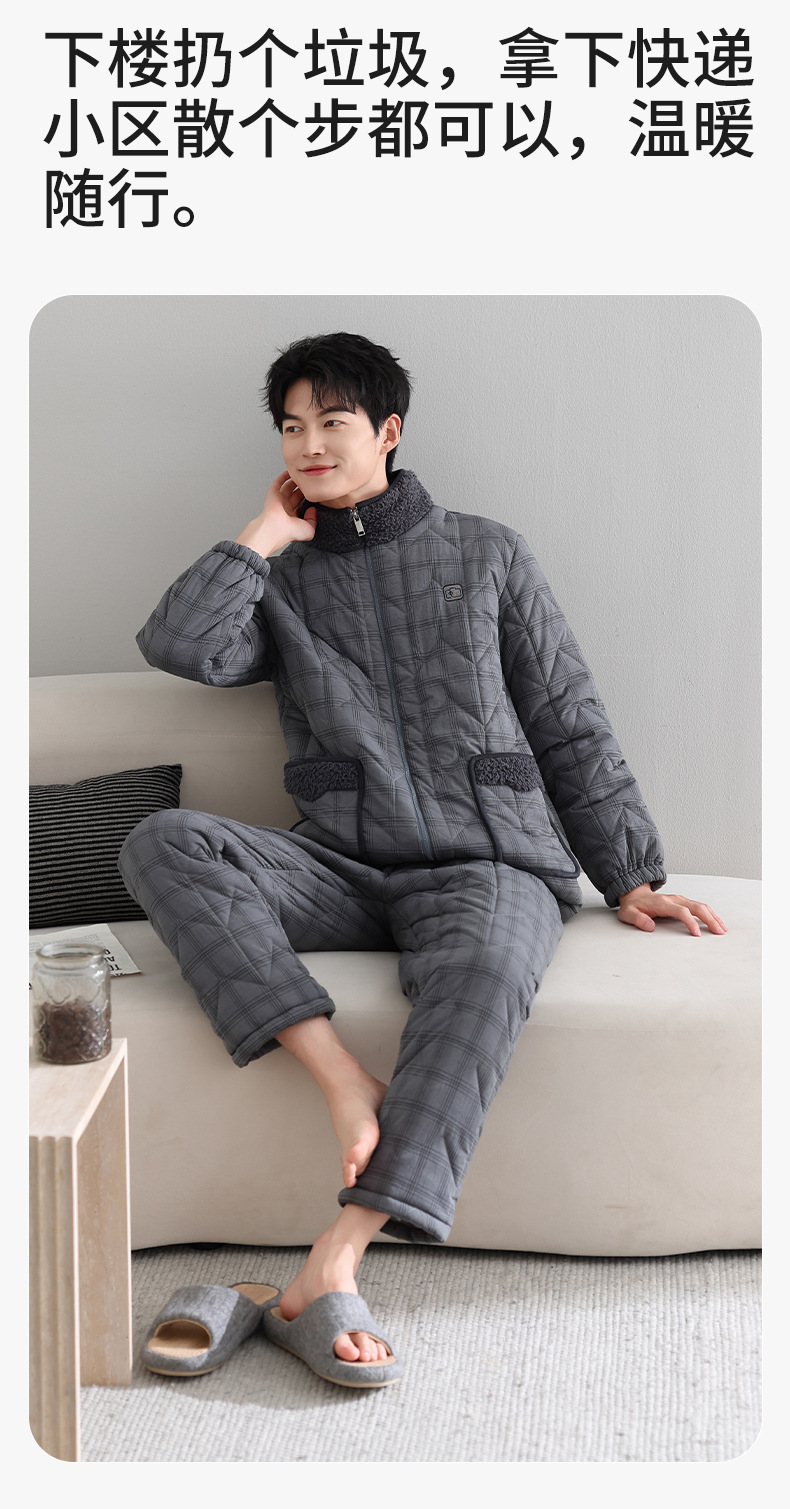 雀说 三层加厚羽绒夹棉袄睡衣男士冬季加绒家居服