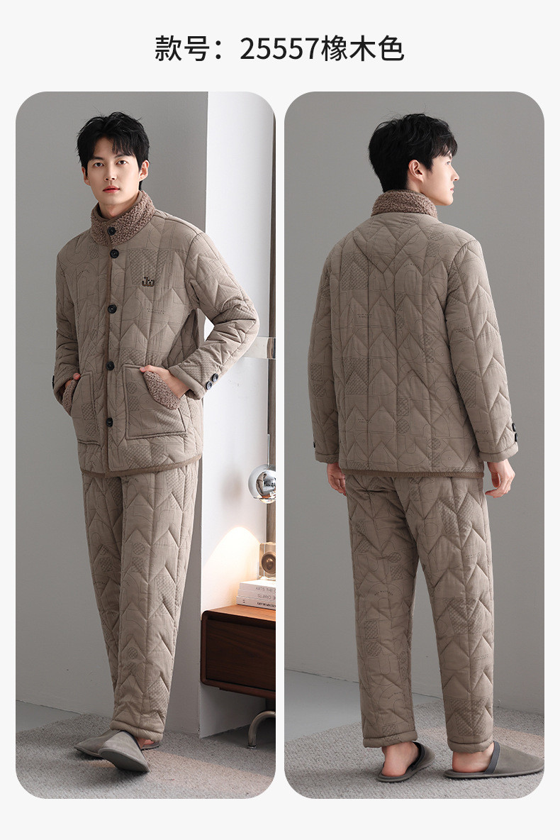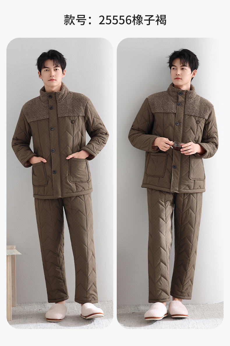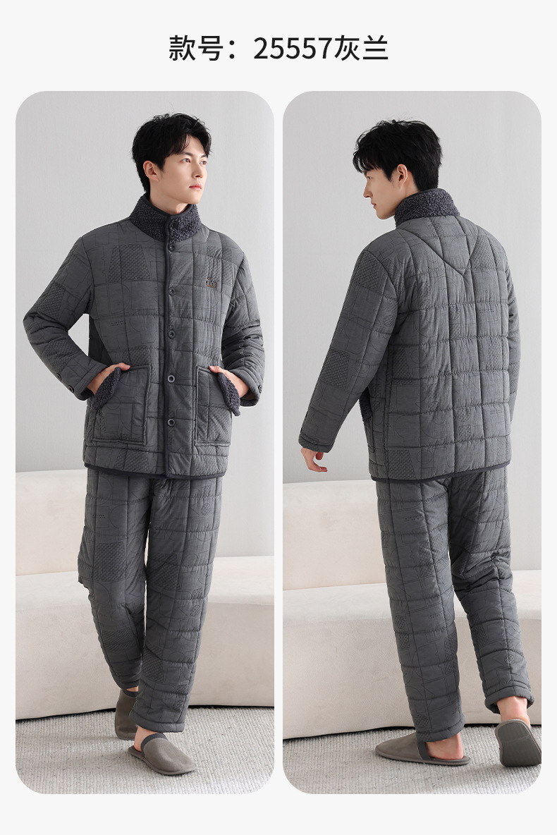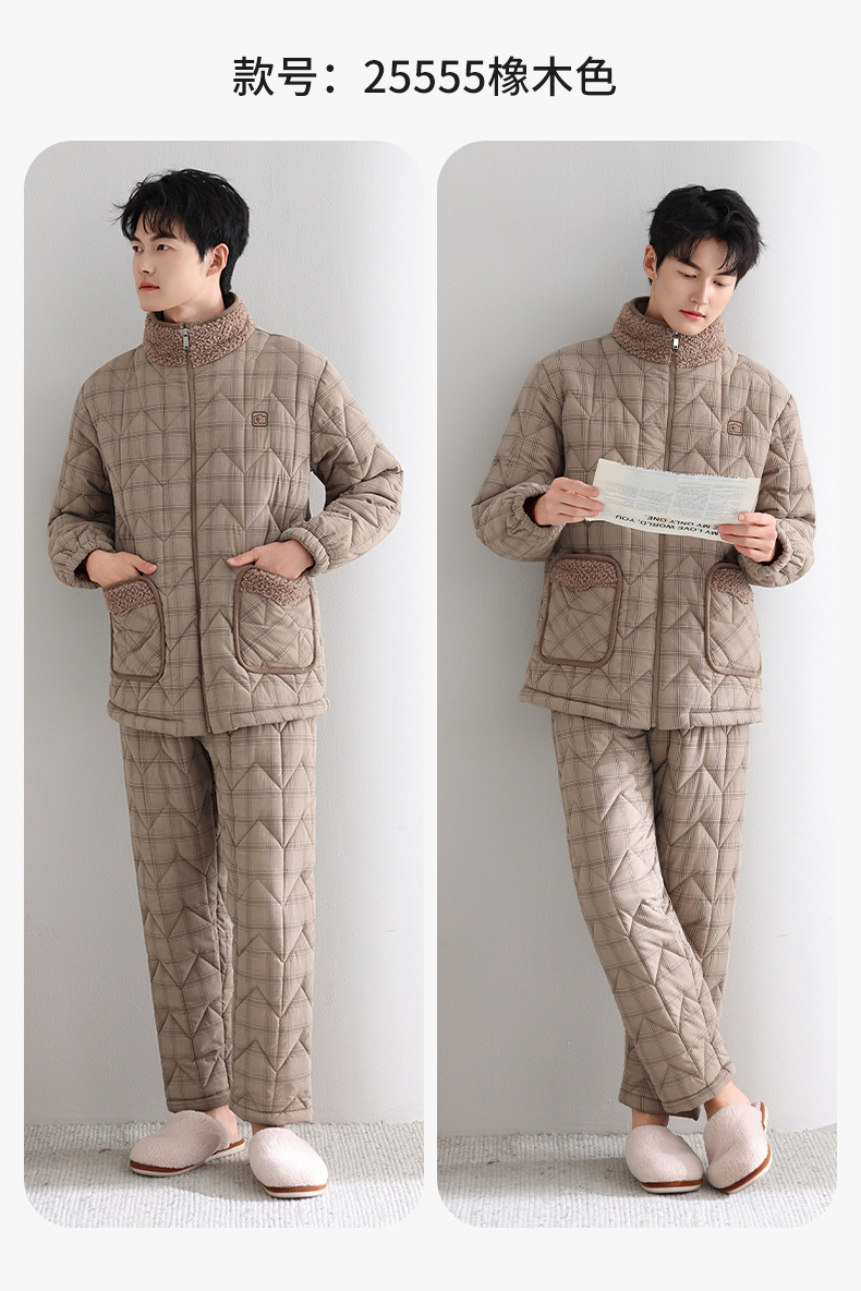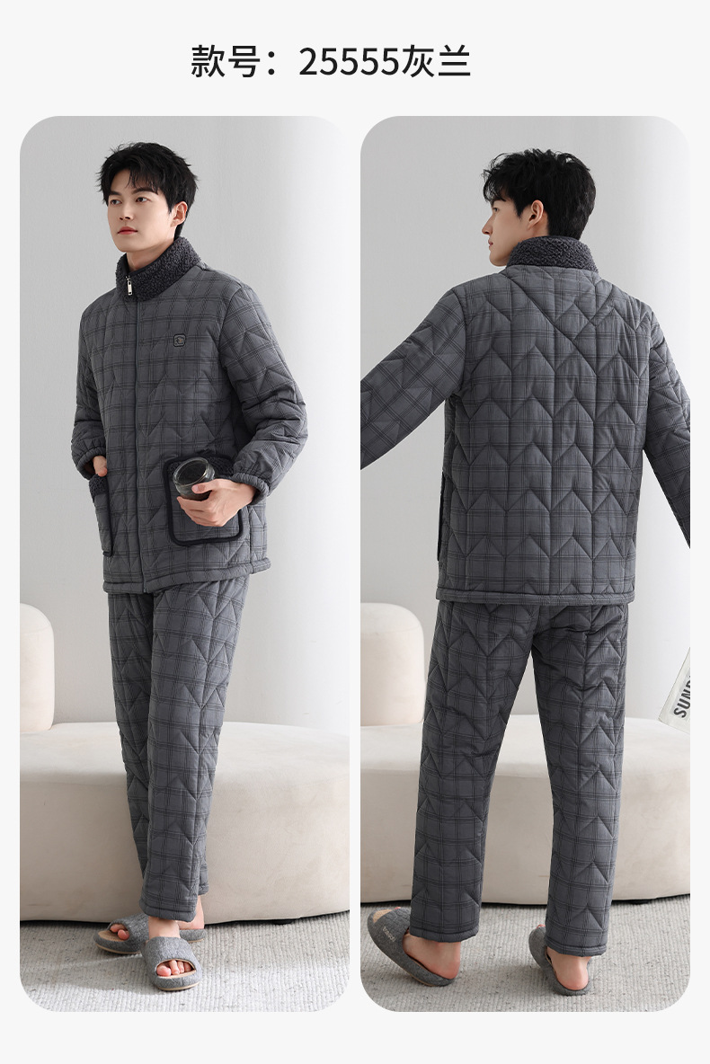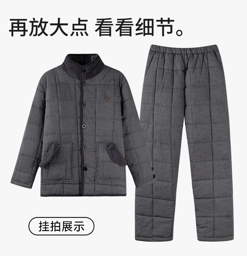 雀说 三层加厚羽绒夹棉袄睡衣男士冬季加绒家居服