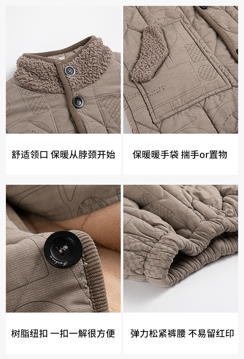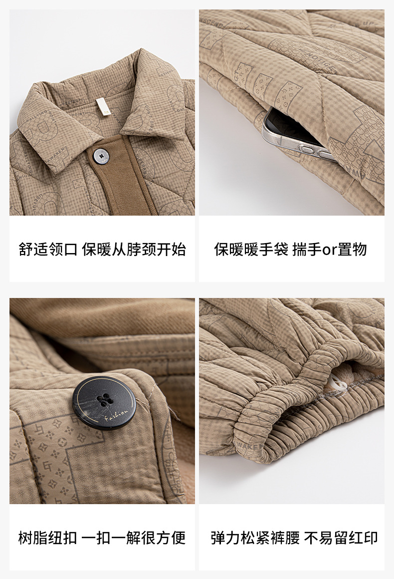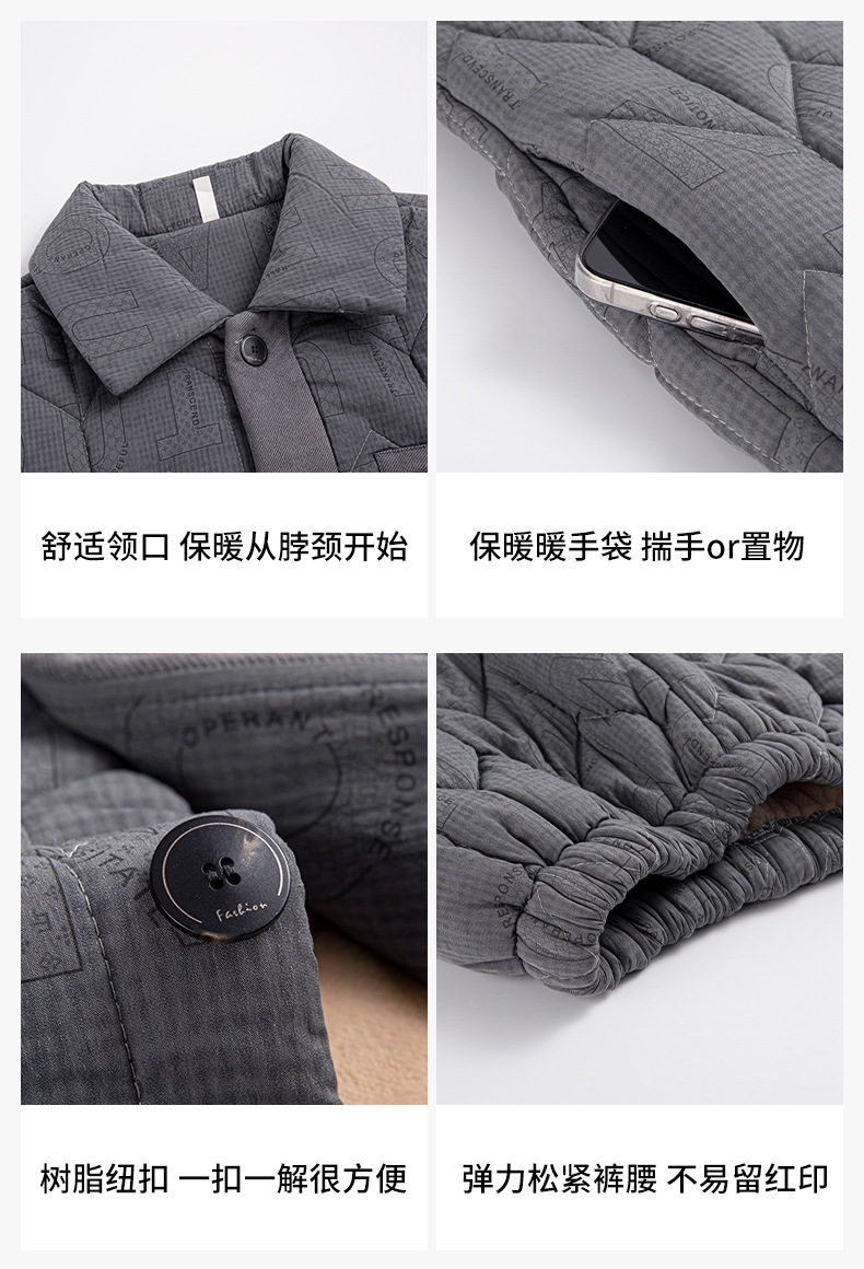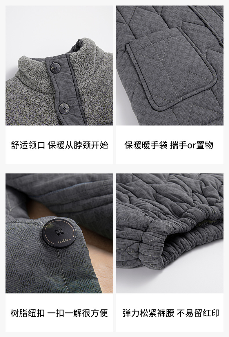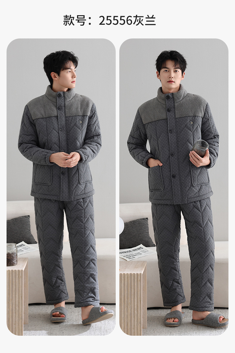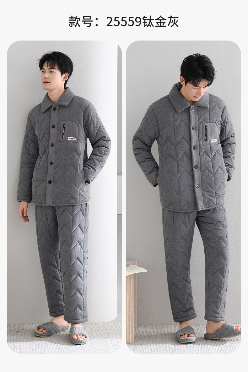 雀说 三层加厚羽绒夹棉袄睡衣男士冬季加绒家居服