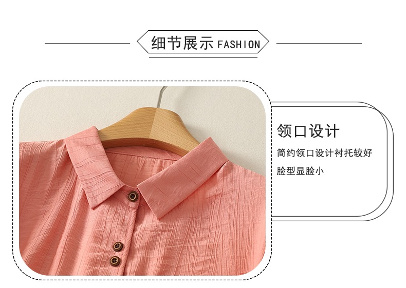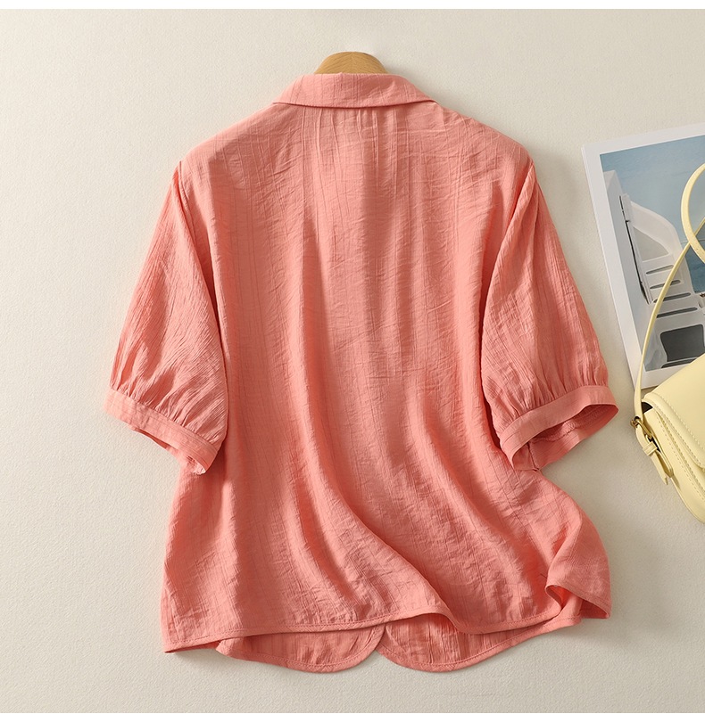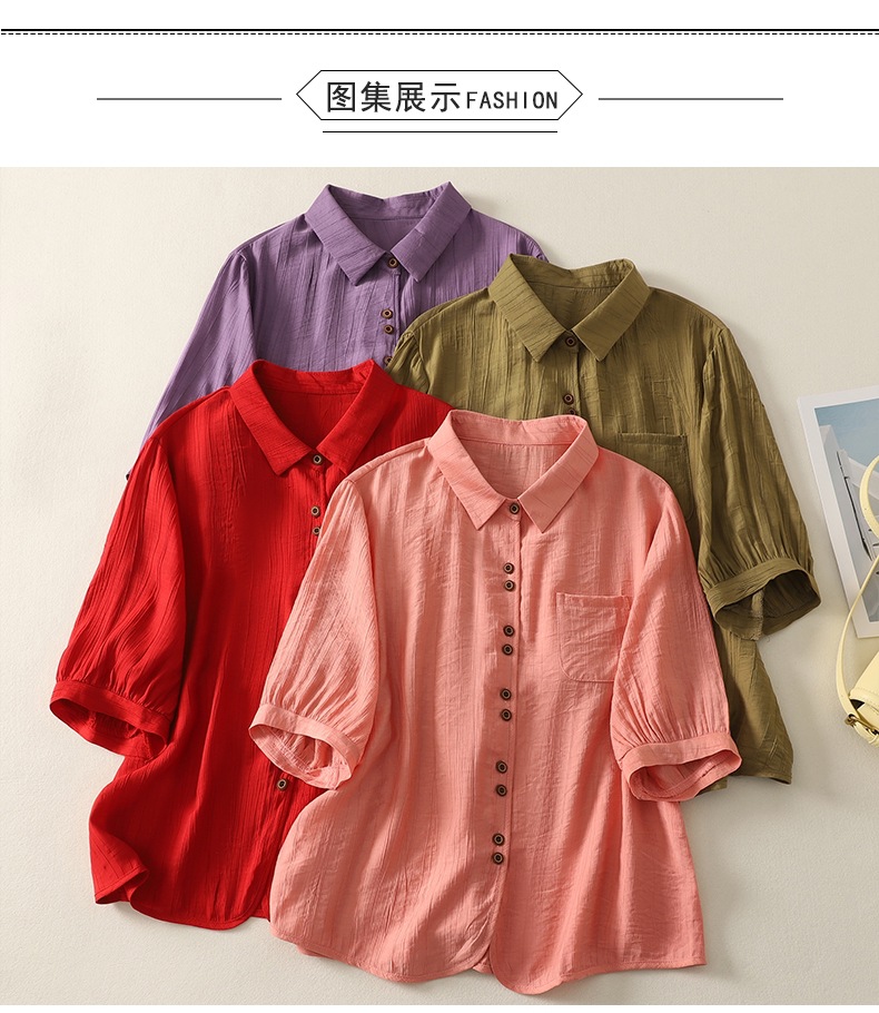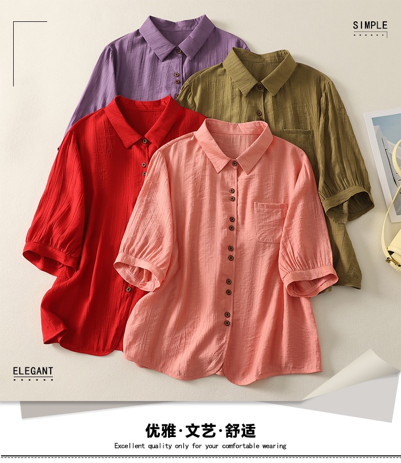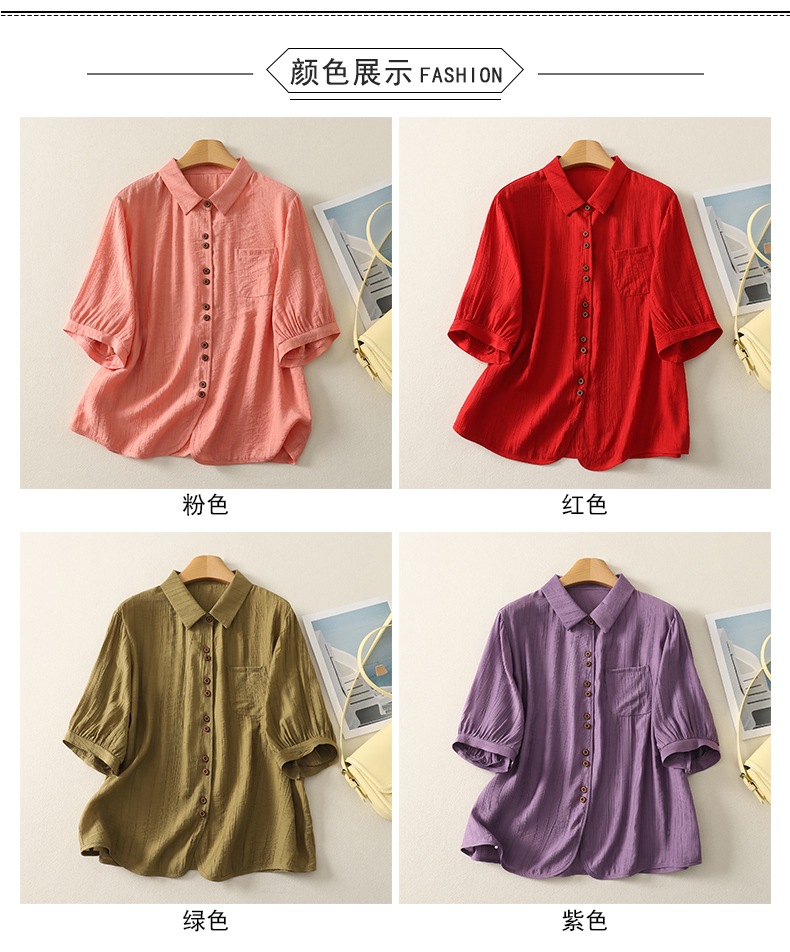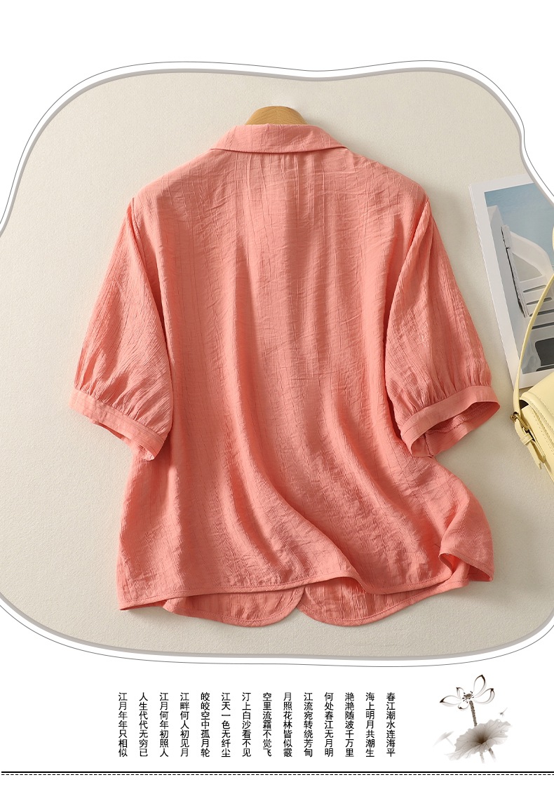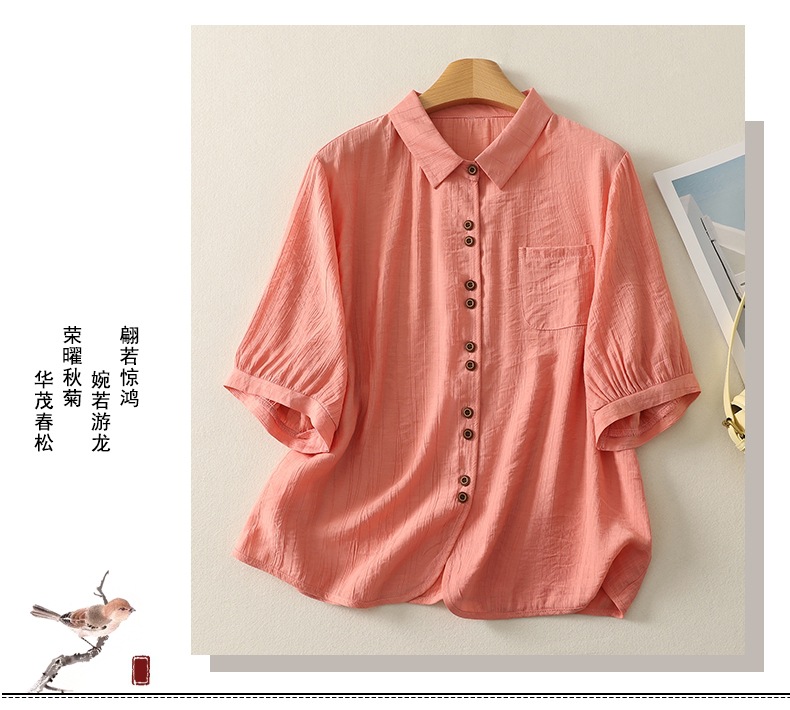 雀说纯色五分袖衬衫女棉质开衫上衣9050