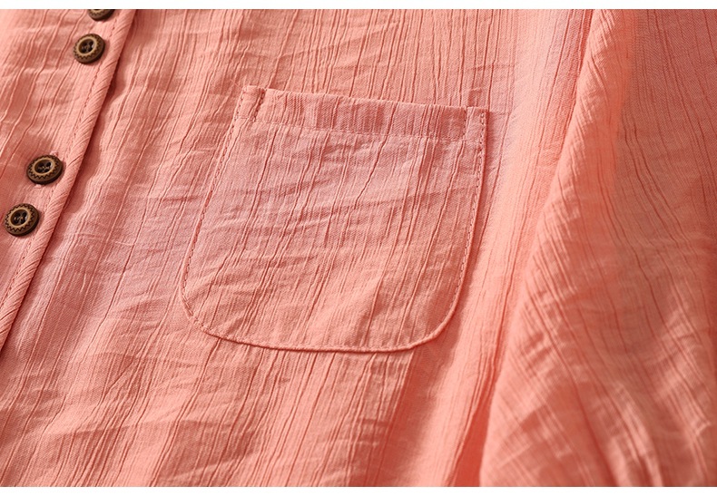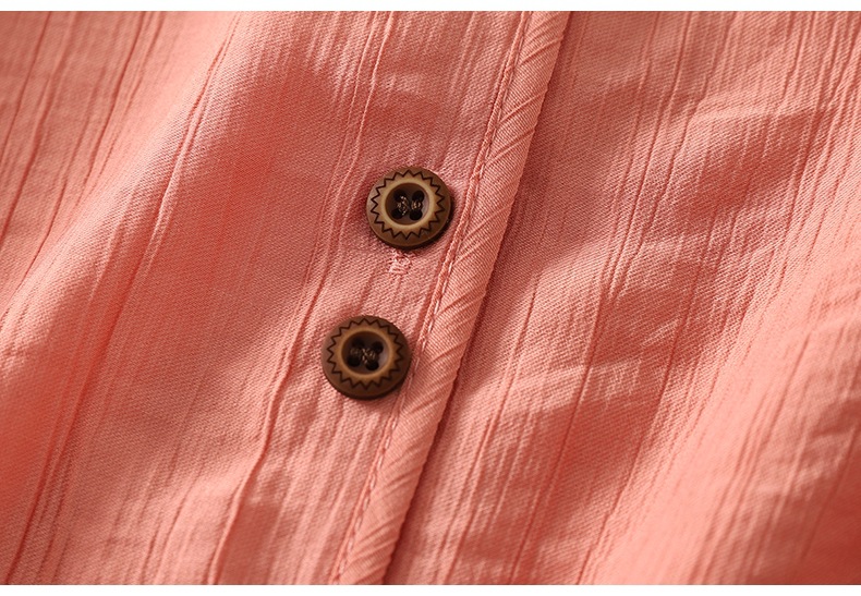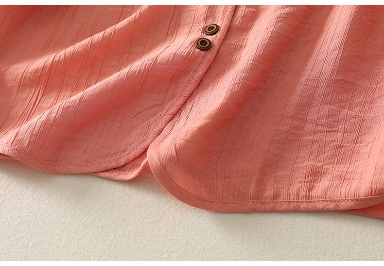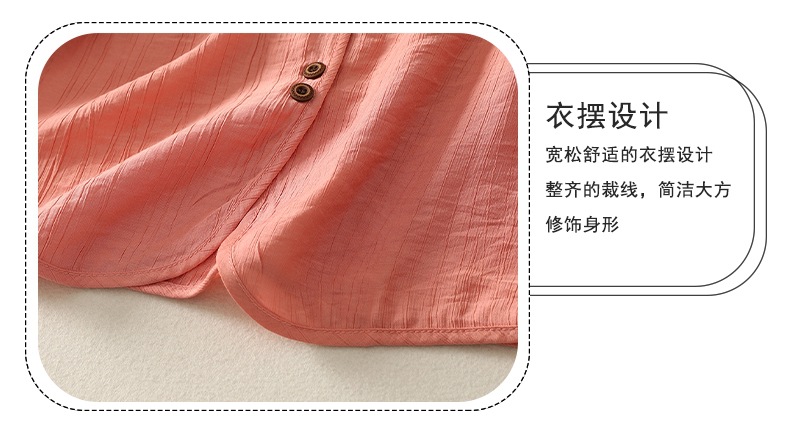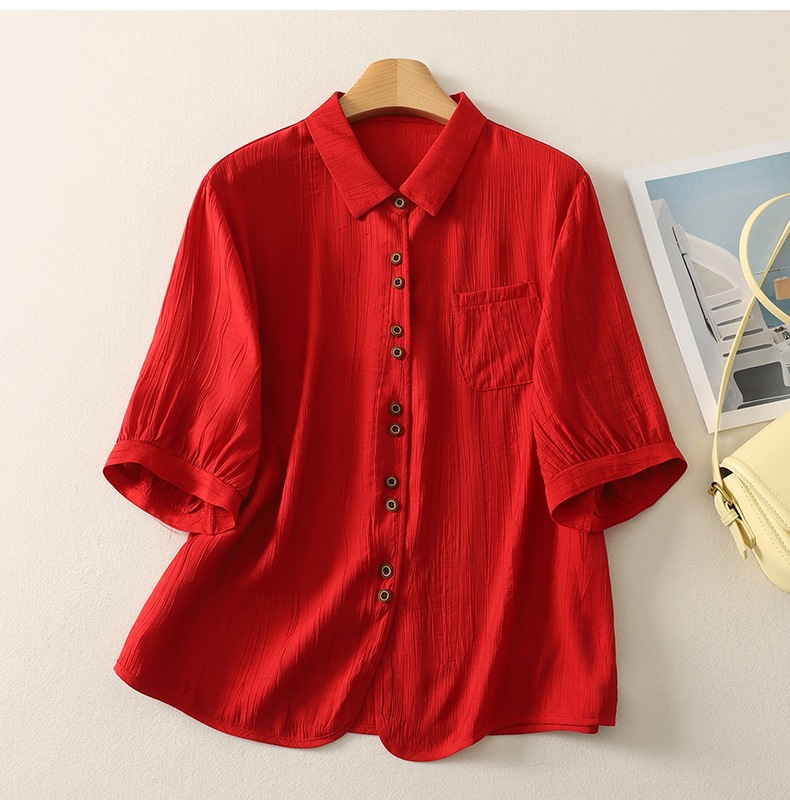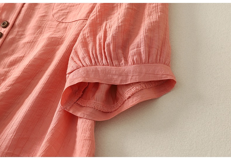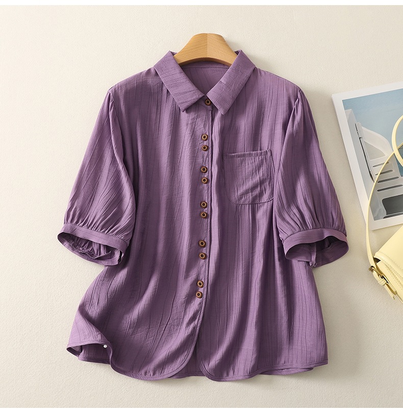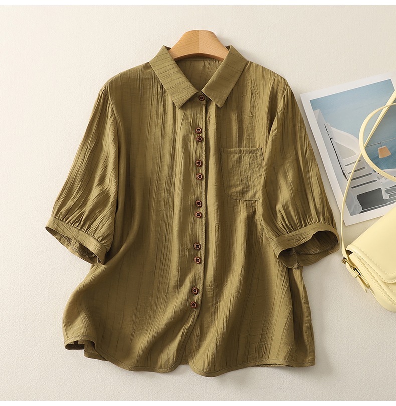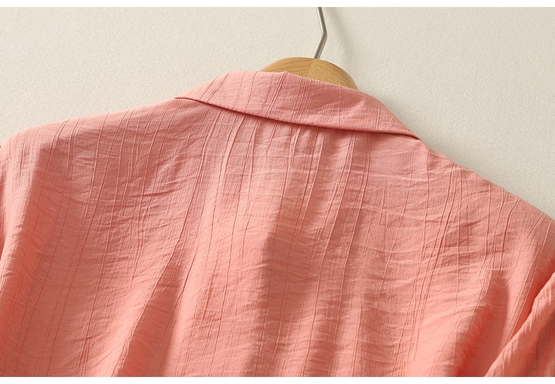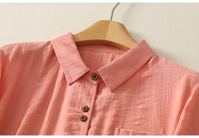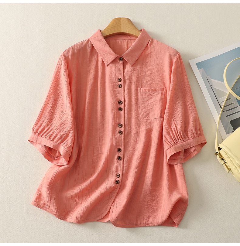 雀说纯色五分袖衬衫女棉质开衫上衣9050