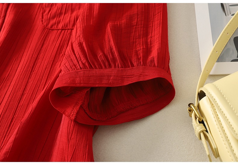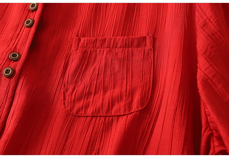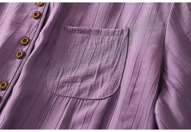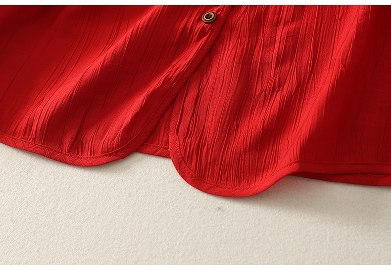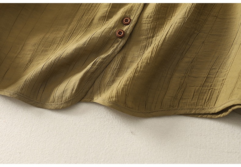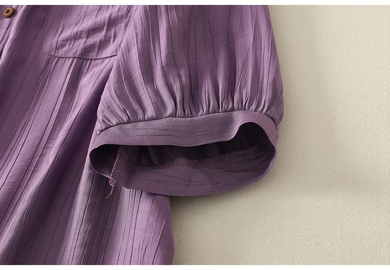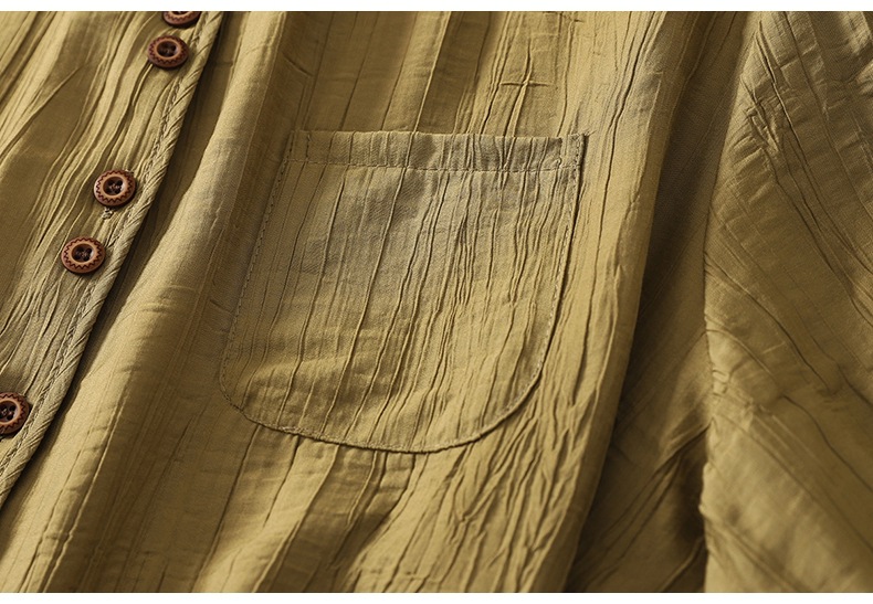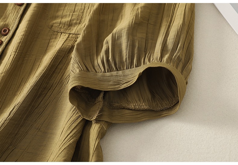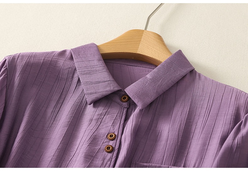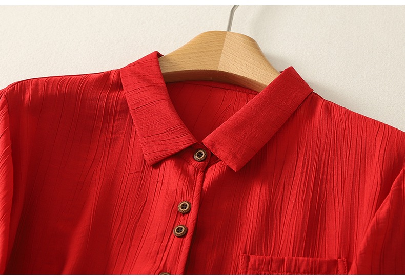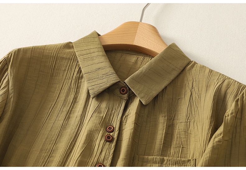 雀说纯色五分袖衬衫女棉质开衫上衣9050
