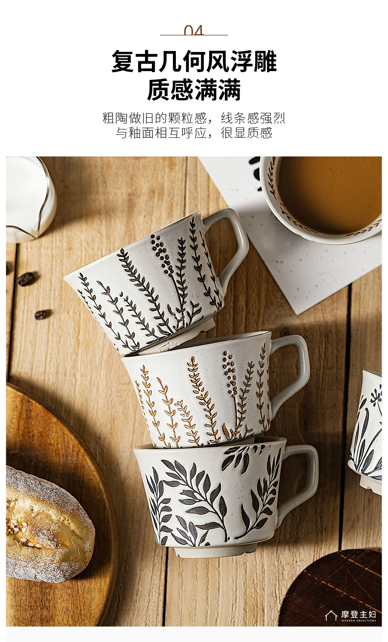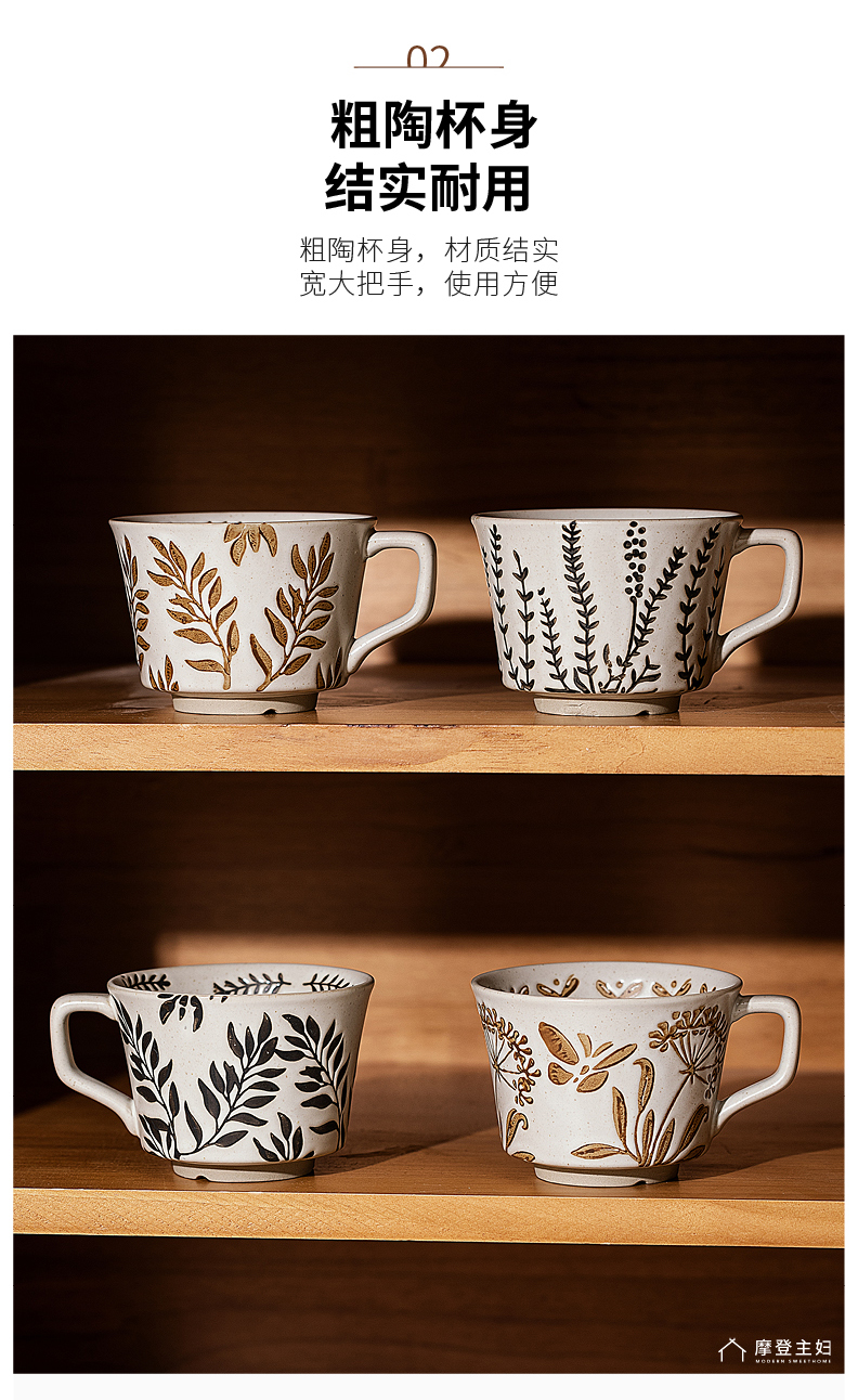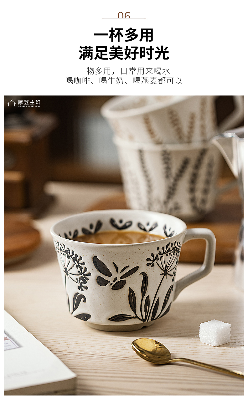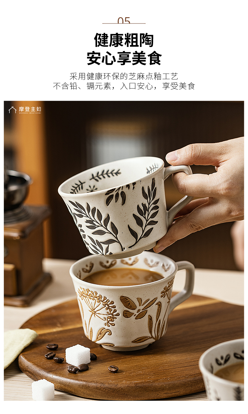 摩登主妇马克杯家用早餐杯下午茶杯子粗陶复古日式陶瓷拿铁咖啡杯