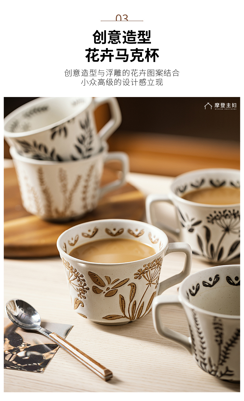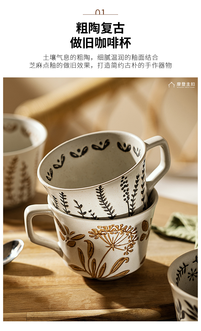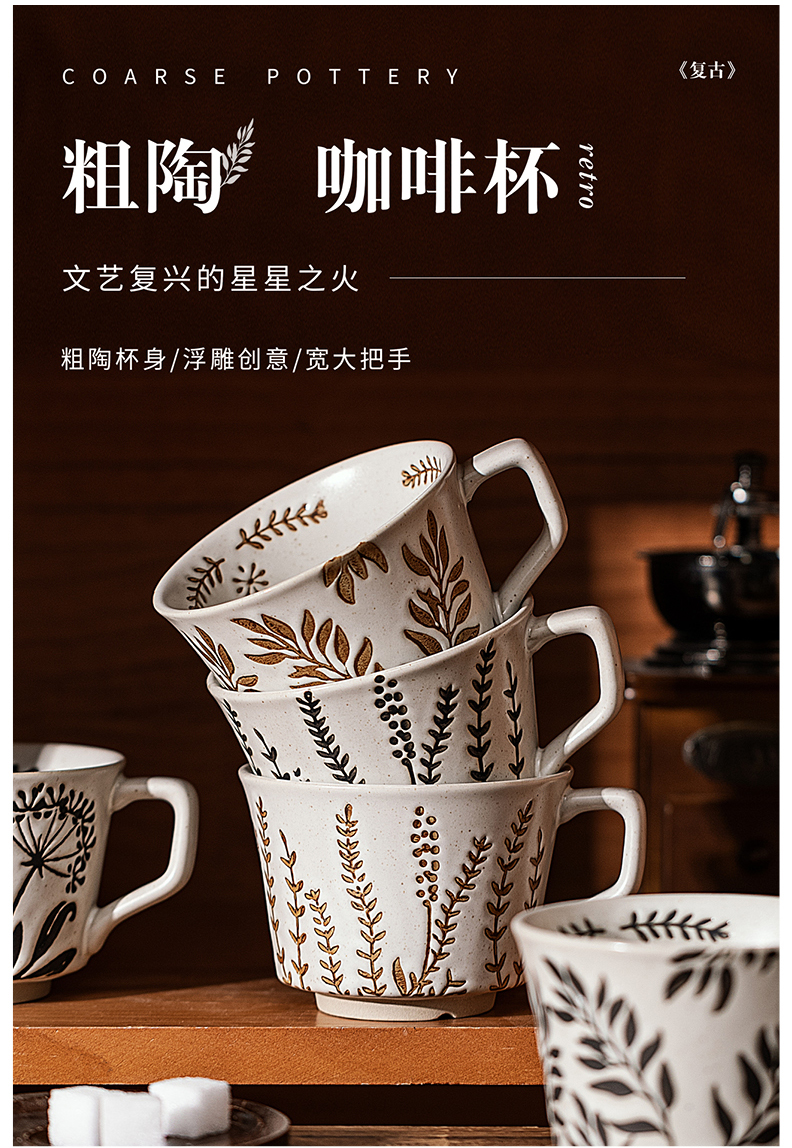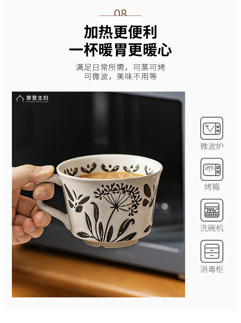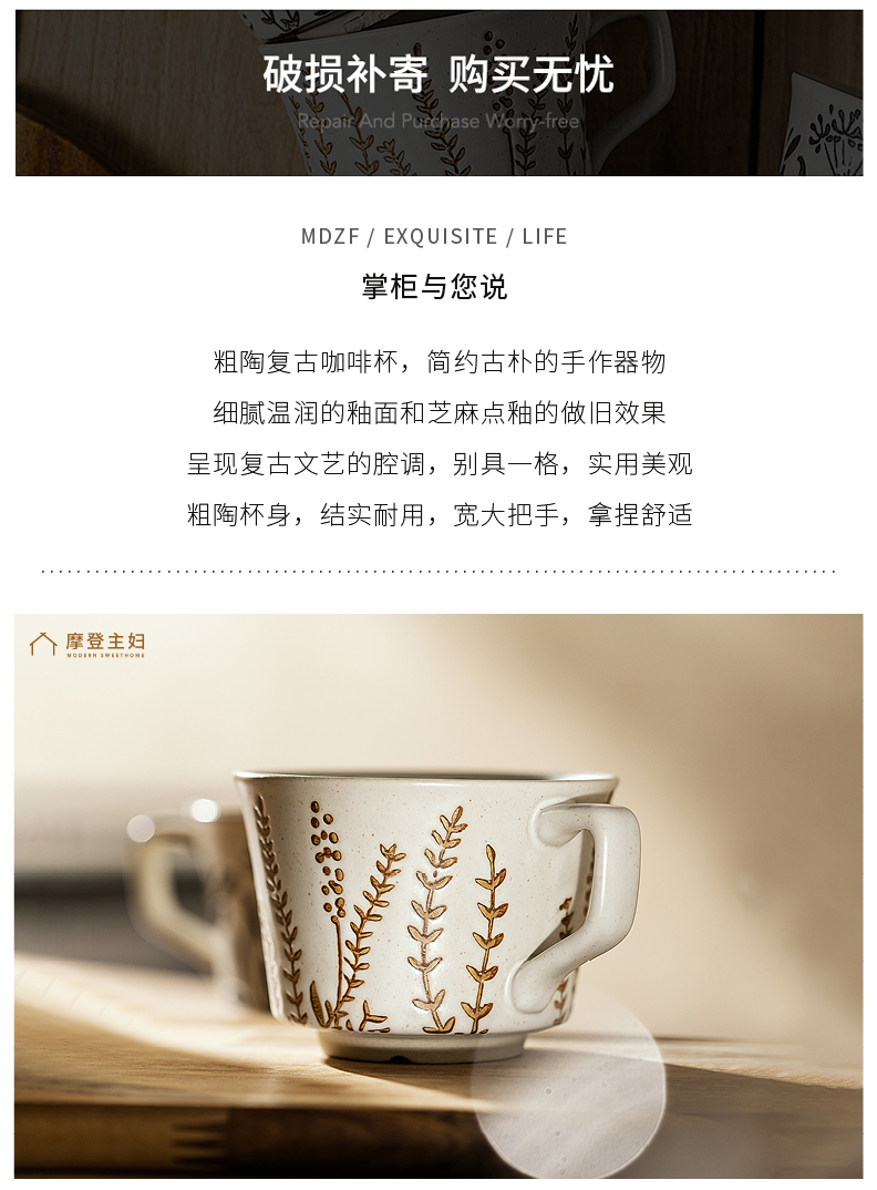 摩登主妇马克杯家用早餐杯下午茶杯子粗陶复古日式陶瓷拿铁咖啡杯