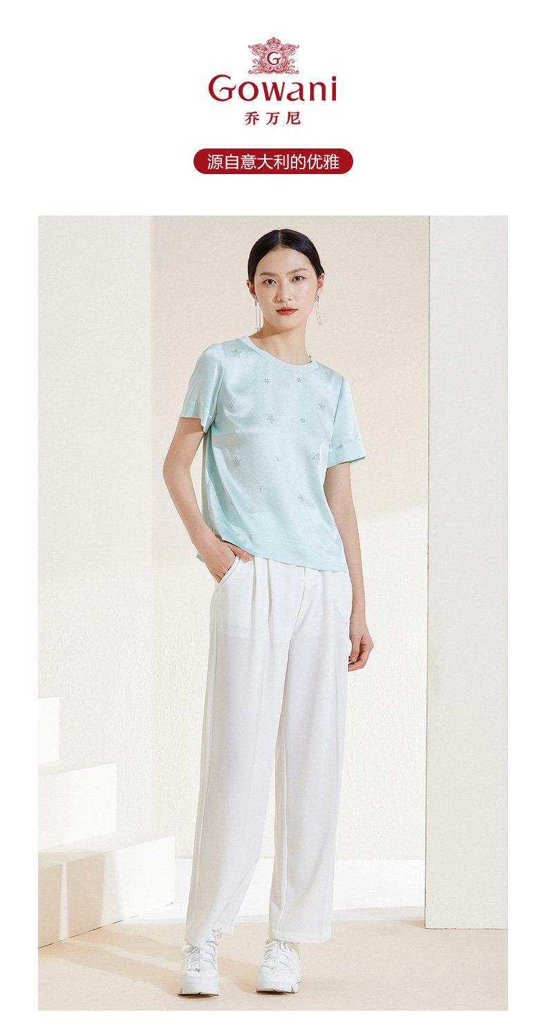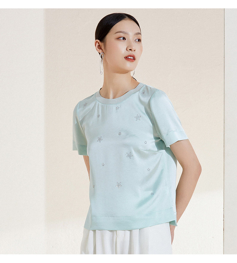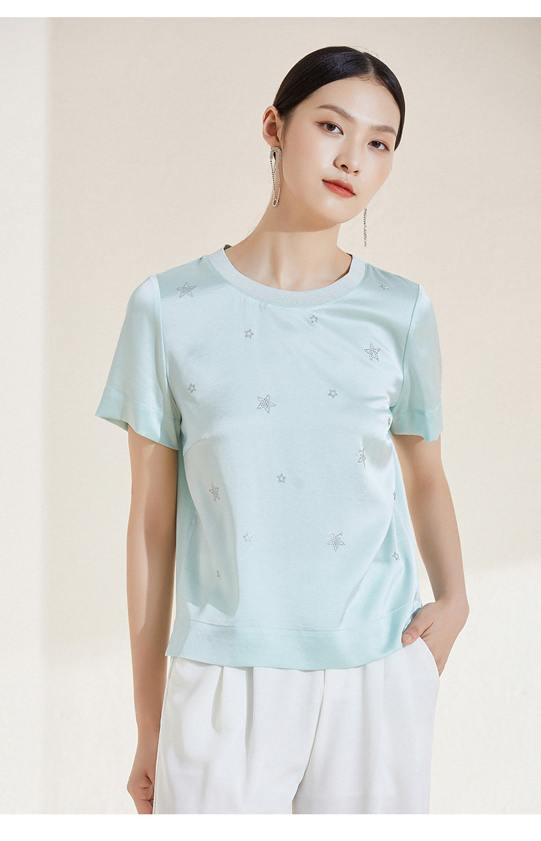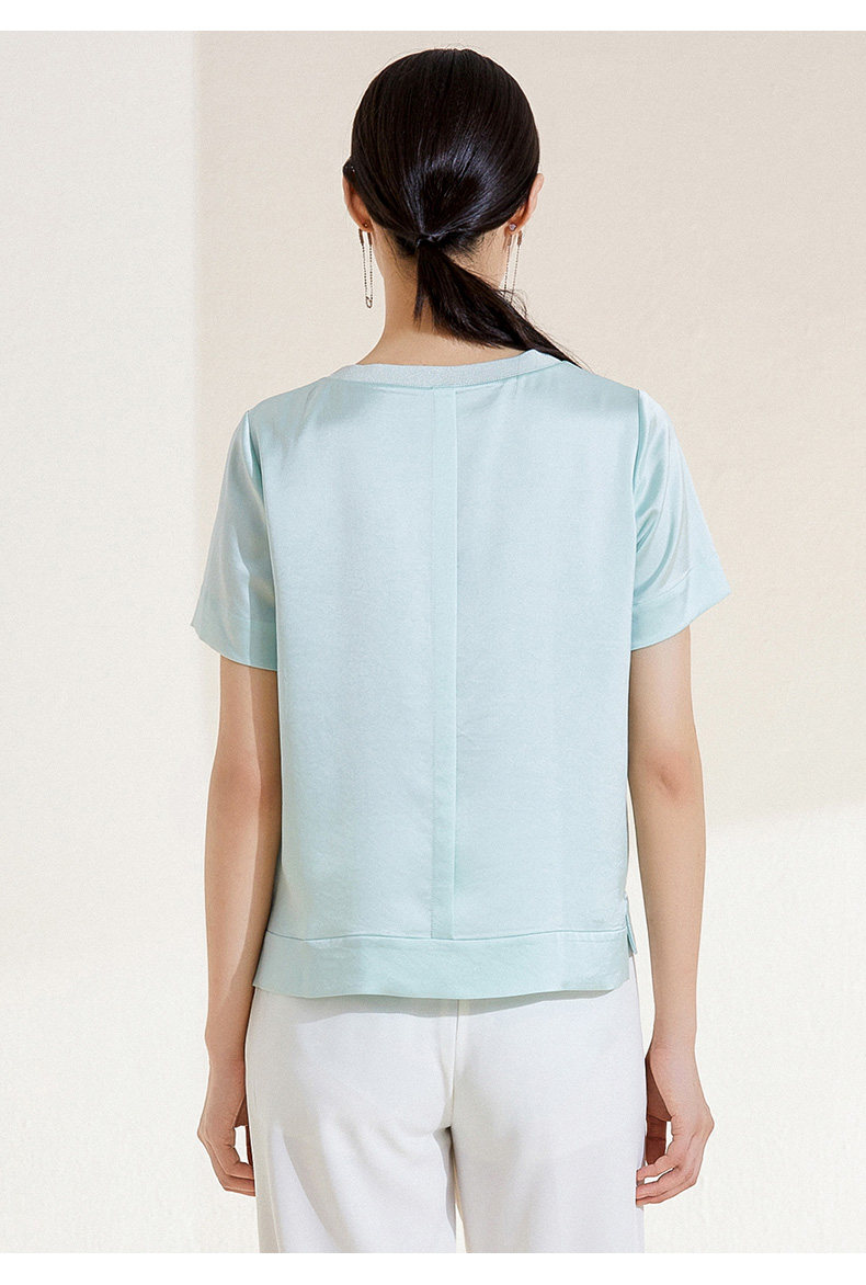 【三醋酸】乔万尼新款三醋酸缎面衬衫短袖衬衣休闲上衣EI2C756