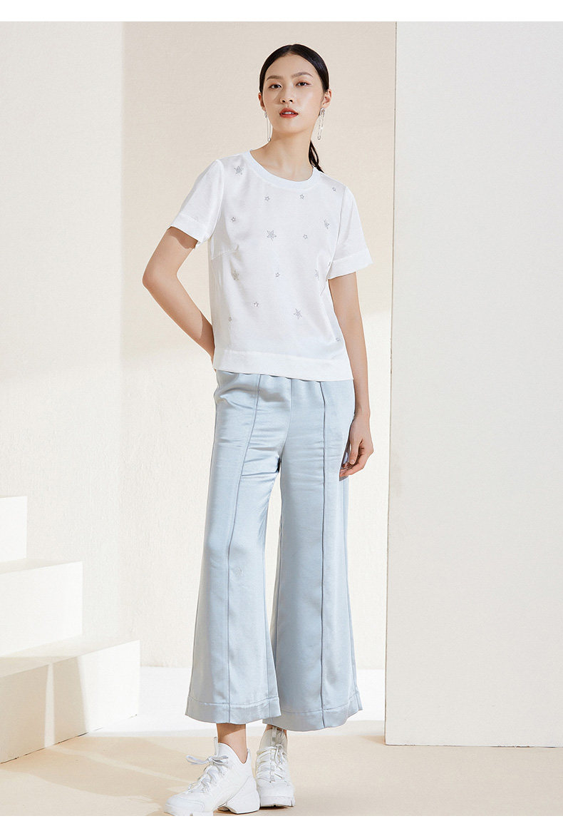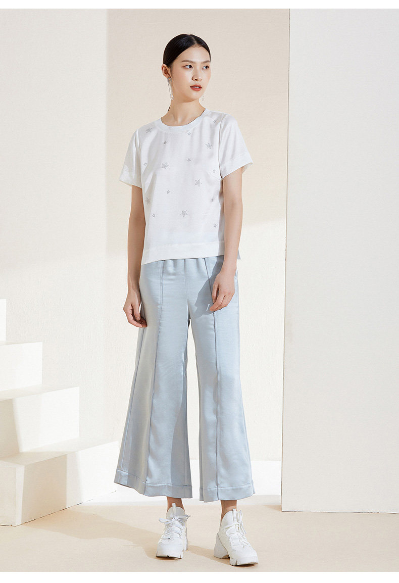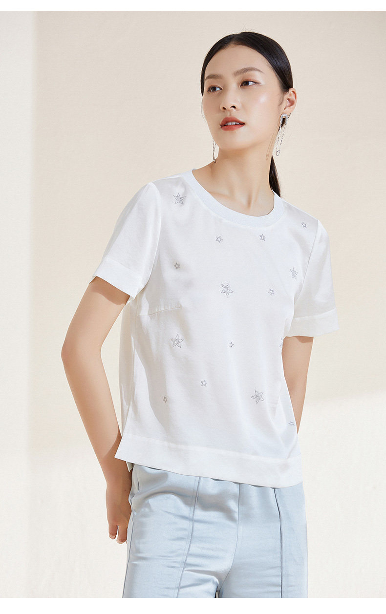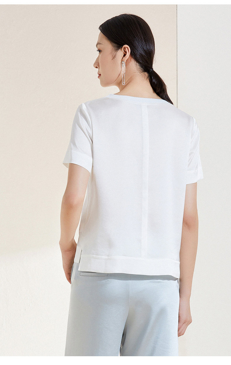 【三醋酸】乔万尼新款三醋酸缎面衬衫短袖衬衣休闲上衣EI2C756