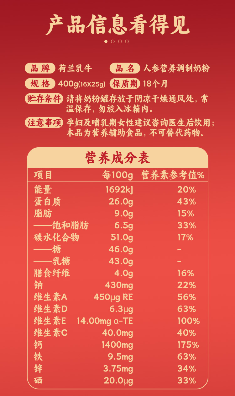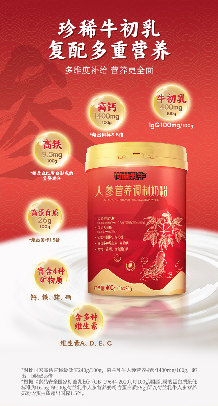 荷兰乳牛人参营养调制奶粉