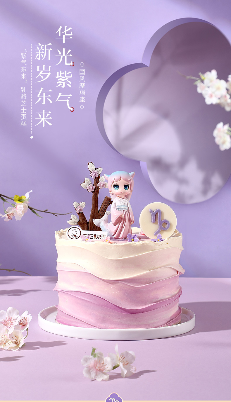 ♑摩羯座“紫气东来”乳酪芝士蛋糕 生日蛋糕 星座蛋糕