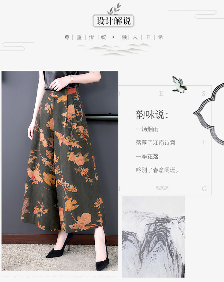 KQL 332H9186印花大摆宽松休闲百搭阔腿裤