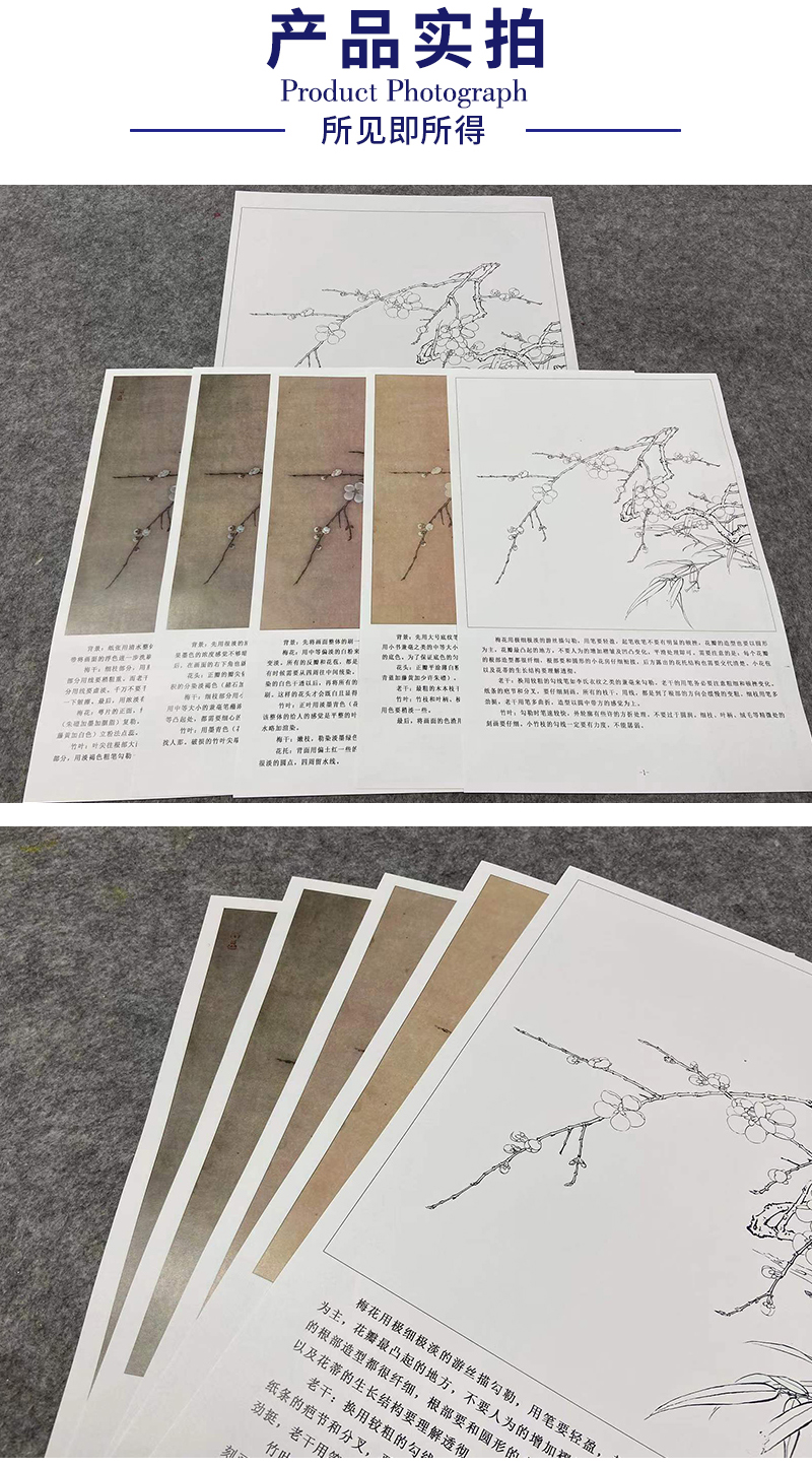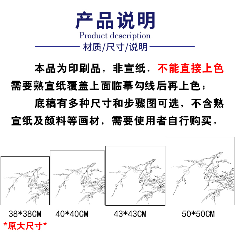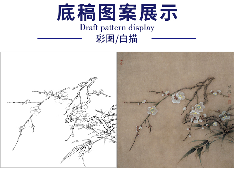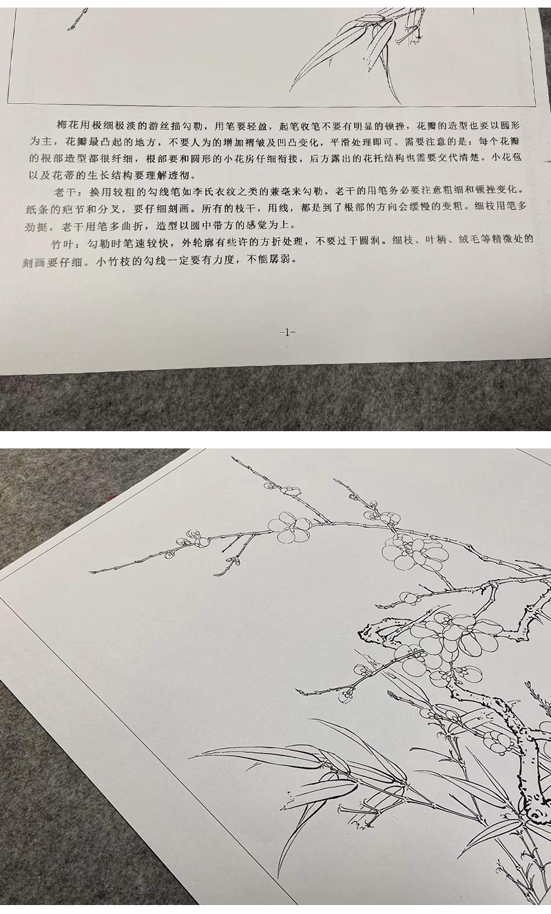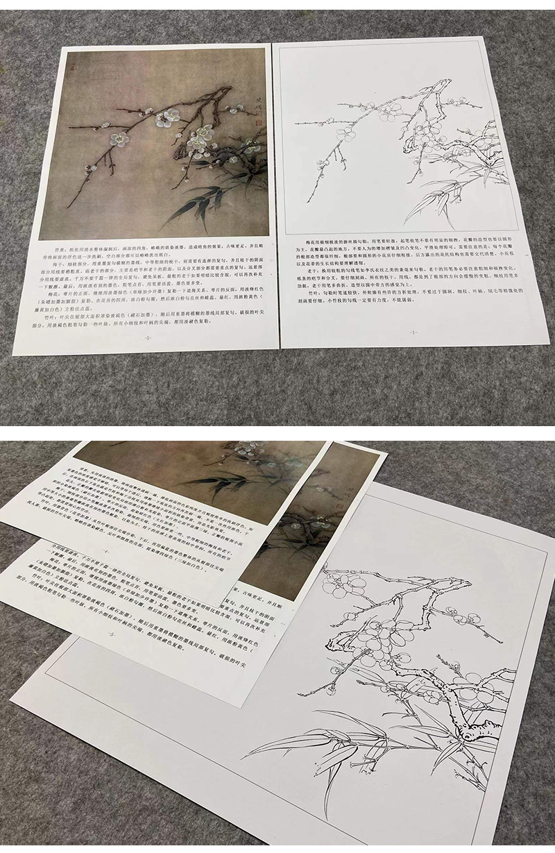 【有步骤、大彩图】李晓明工笔画白描稿斗方小品《临宋梅竹图页》梅花竹子初学者临摹花鸟线稿KL07