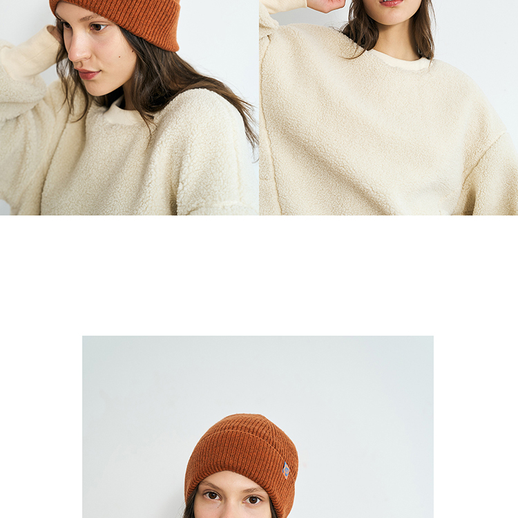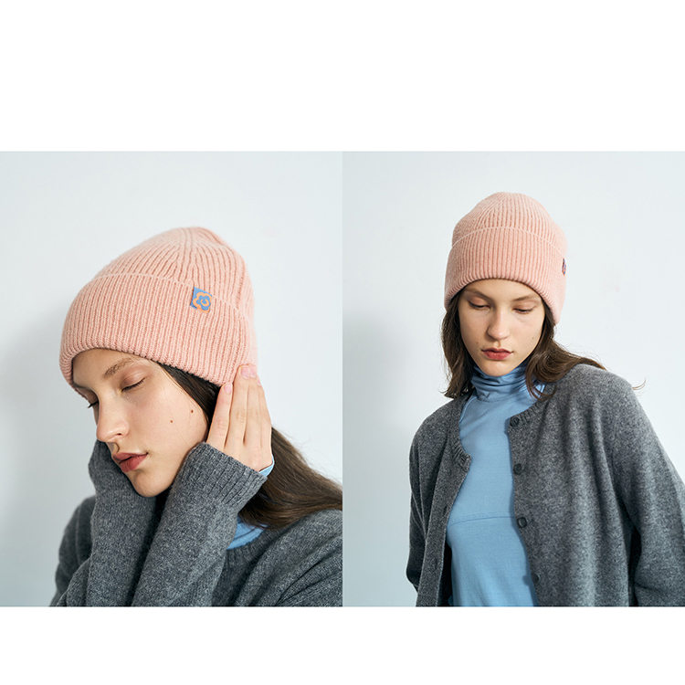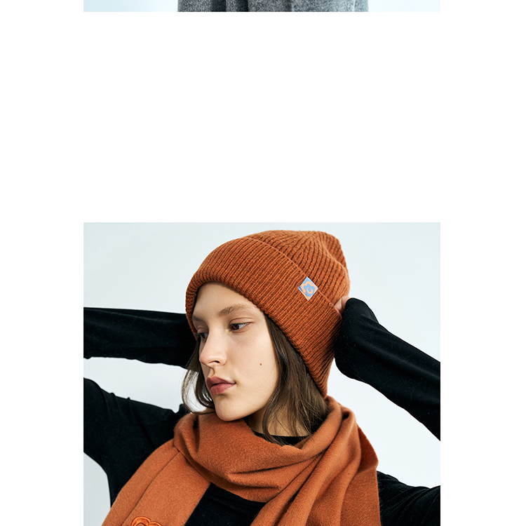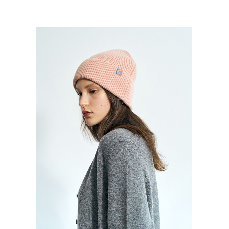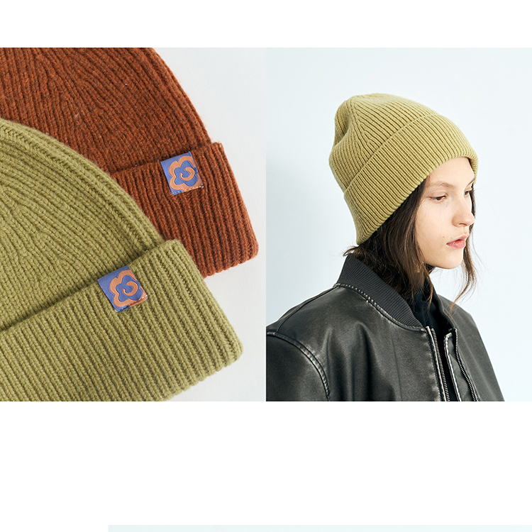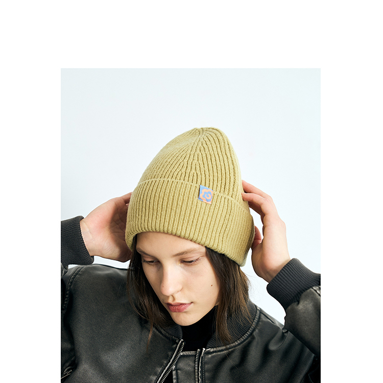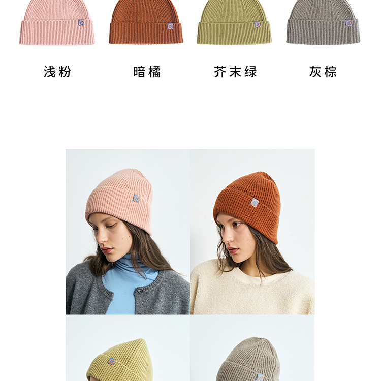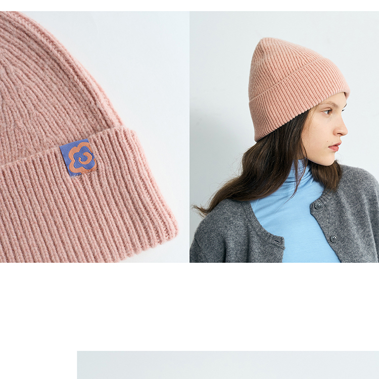 双成记翻边羊毛针织套头帽