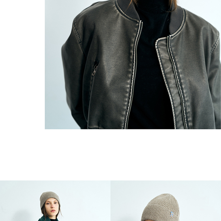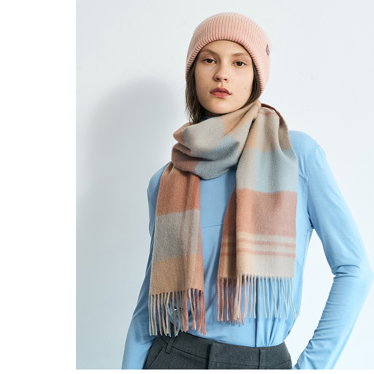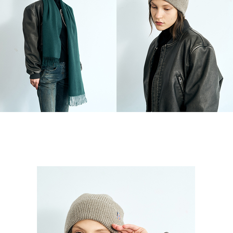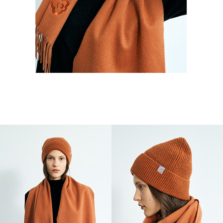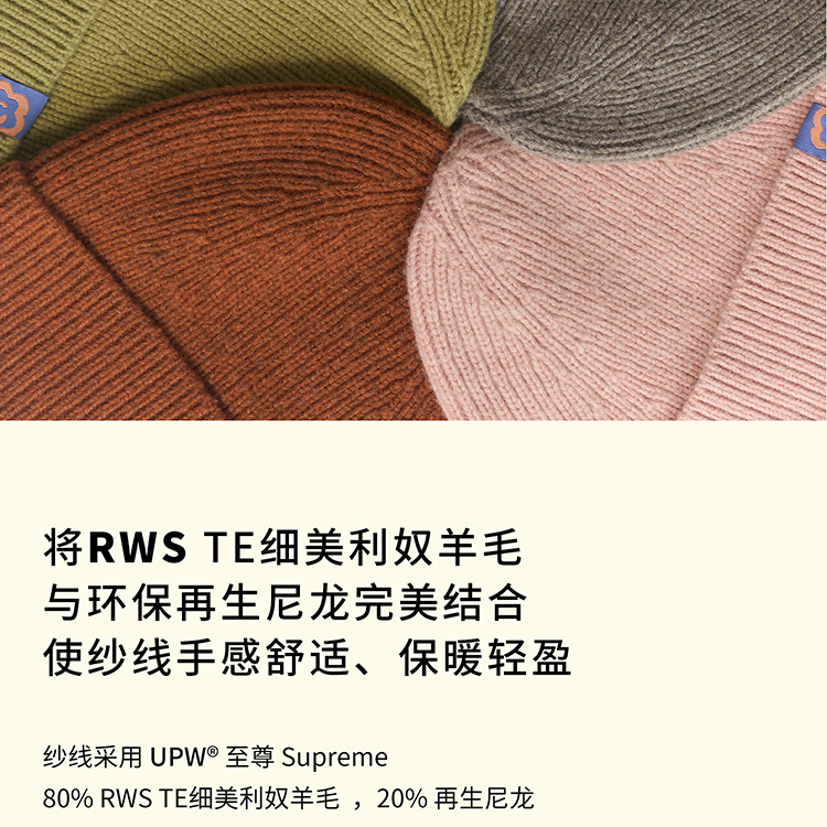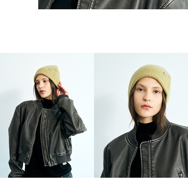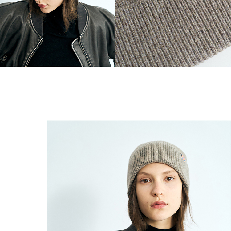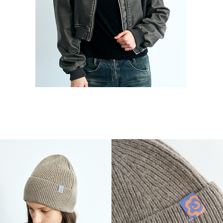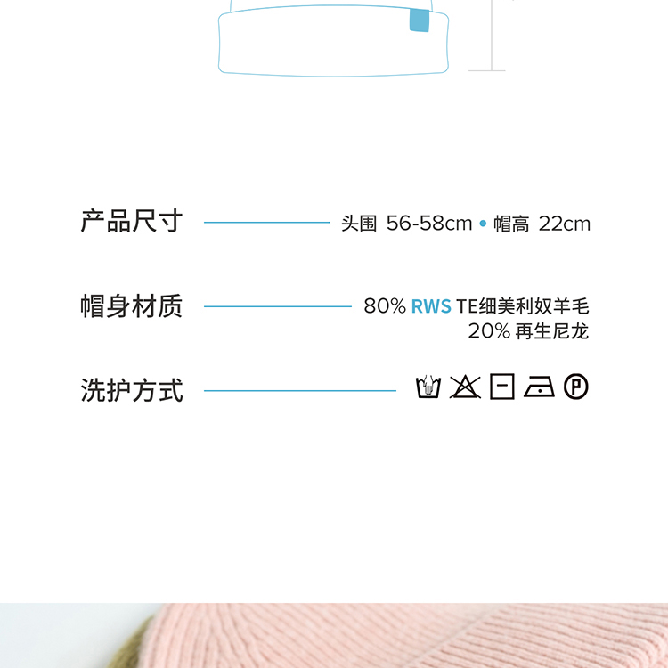 双成记翻边羊毛针织套头帽
