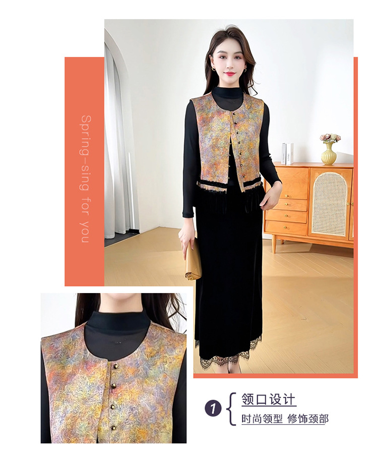 QYM LZ25B2513 -Y春秋小香风短款外套长袖连衣裙休闲套装气质 商品图2