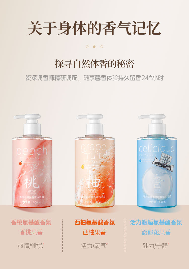 【氨基酸亲肤!蜜桃留香】朵倍蔻氨基酸香氛沐浴露香水型沐浴露套装夏季除螨水蜜桃持久留香。xb