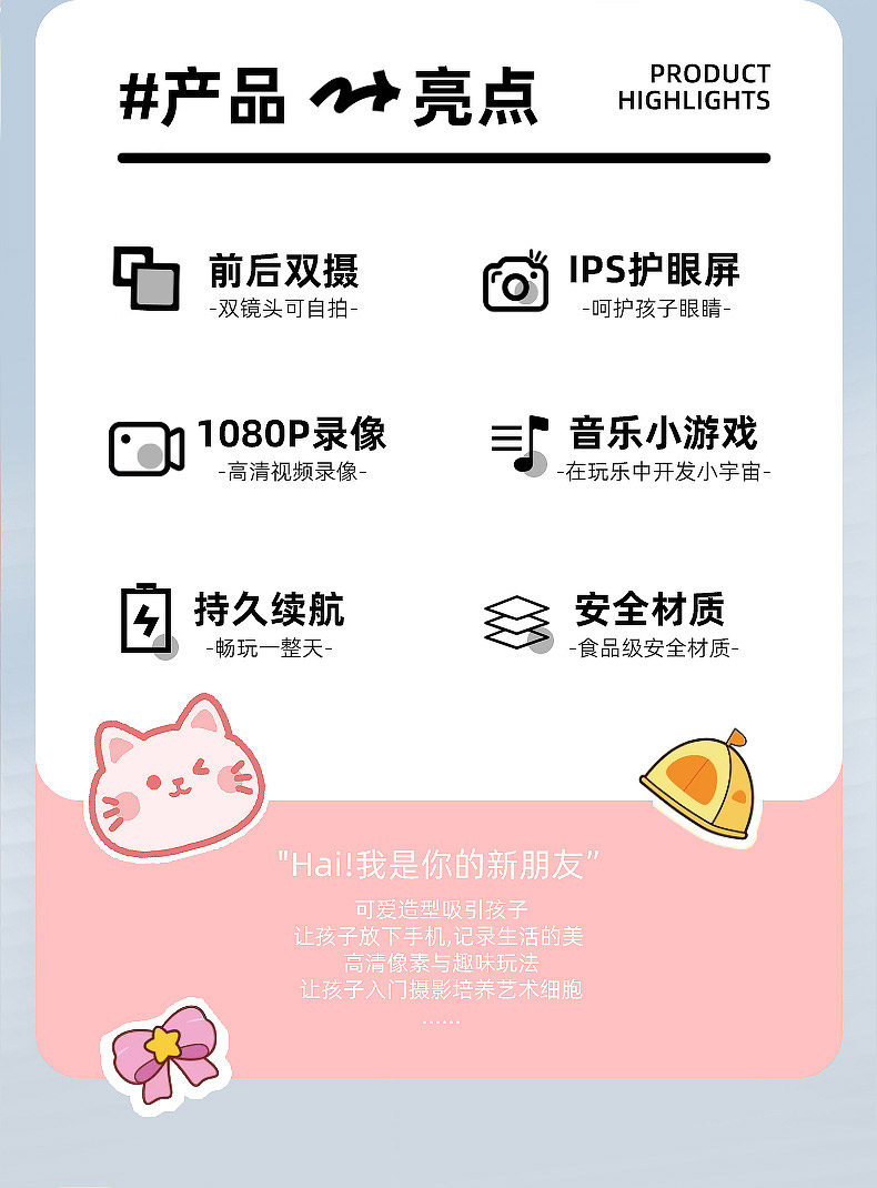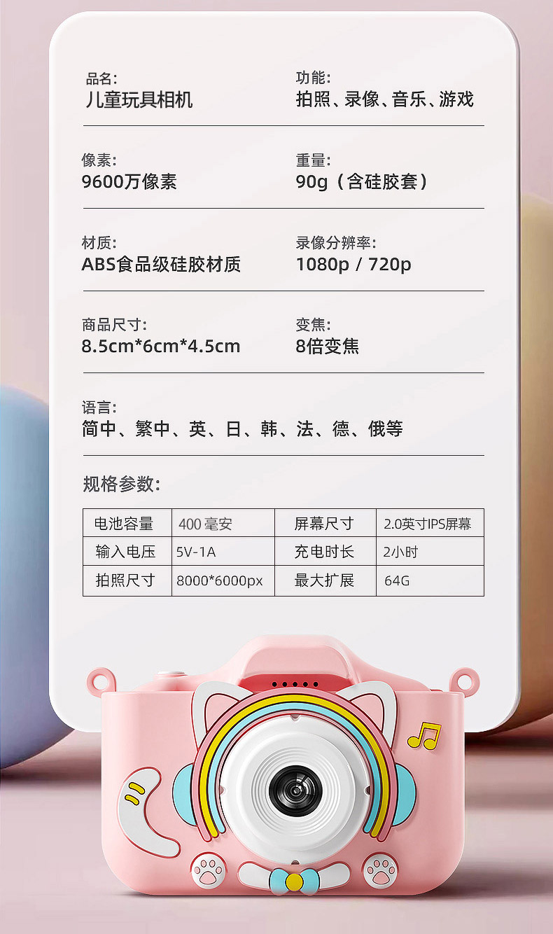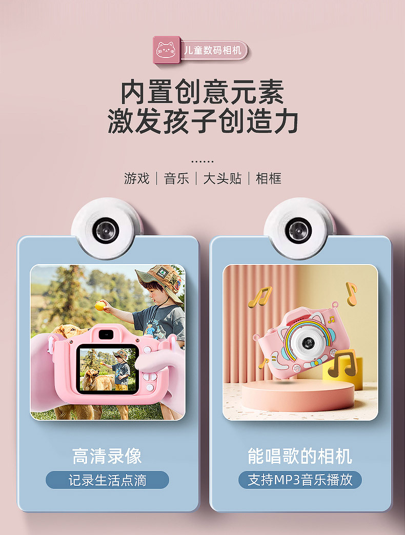 优比诺儿童玩具数码相机(粉色)/ 1个(送64G内存卡)补单专用