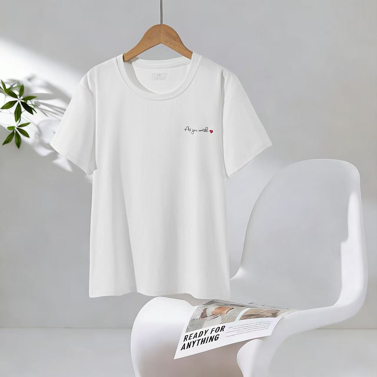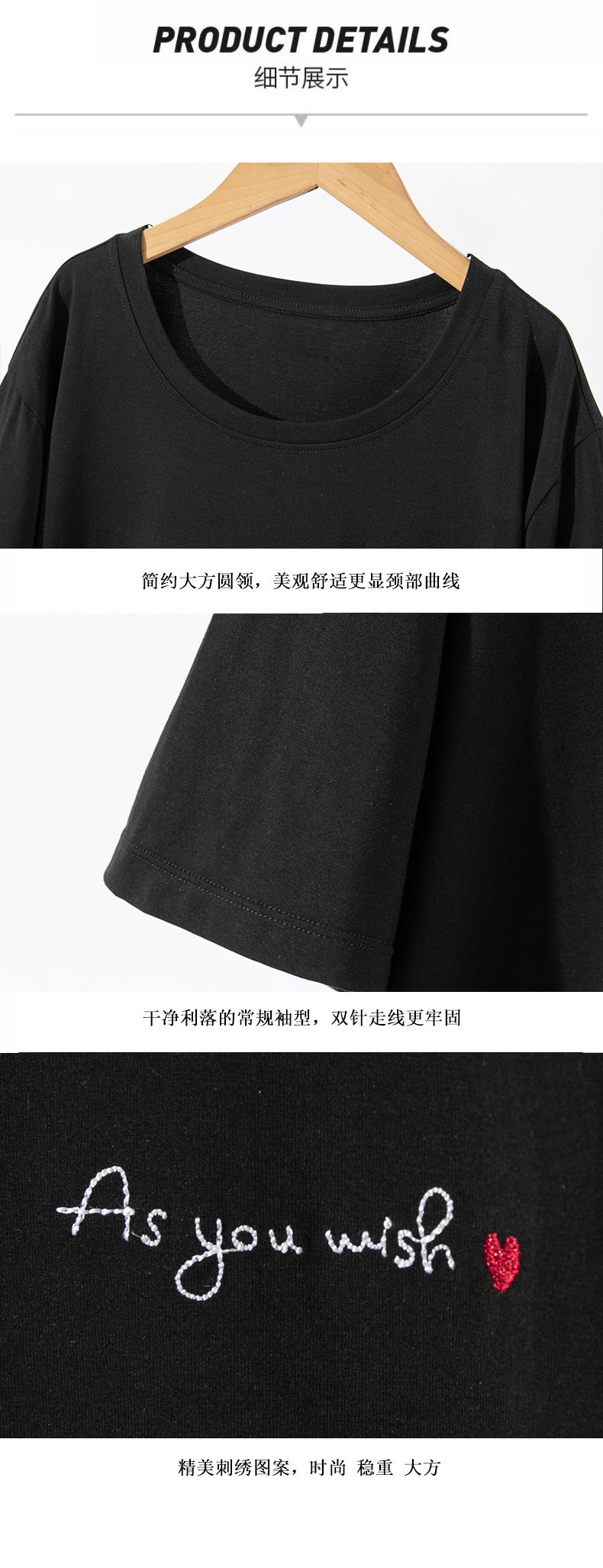 【品名】LS竹纤维女士时尚刺绣圆领半袖2720
