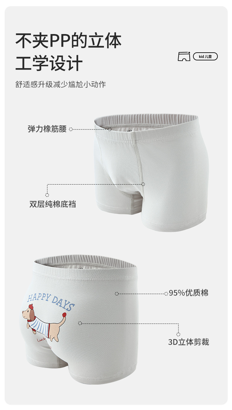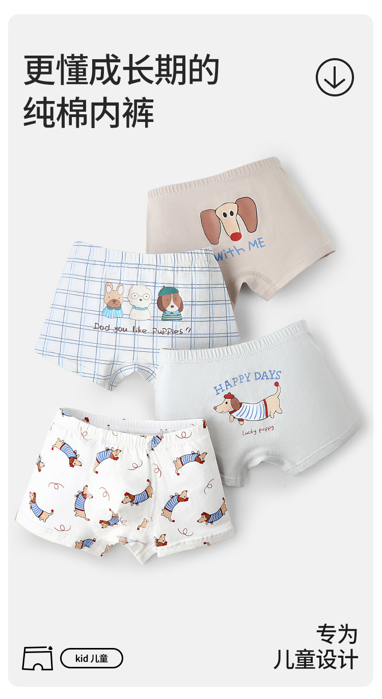 【柔软包裹,内裤新升级】四条装!儿童内裤秋季卡通小狗 男童内裤A类纯棉 卡通儿童平角内裤-QQ