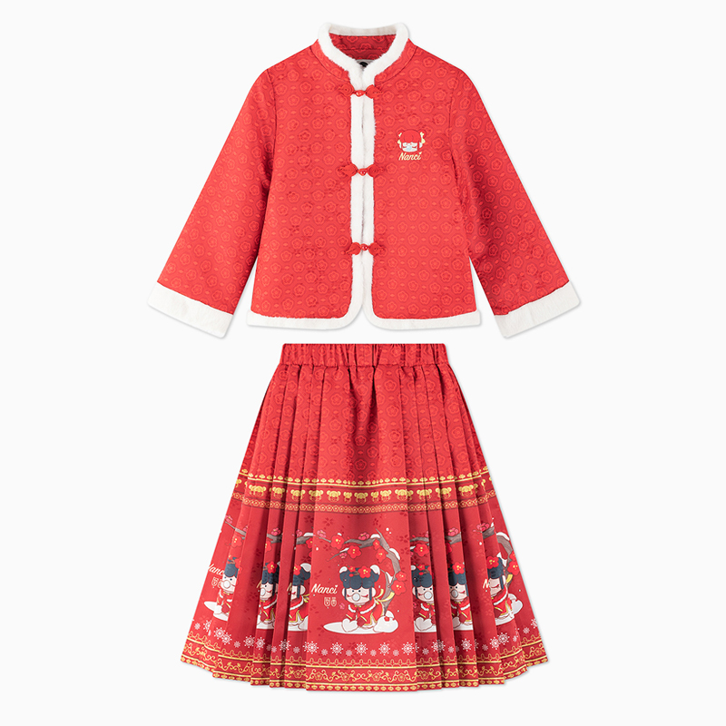 【秒1】【MQD】女童冬季新年喜庆国潮马面裙立领套装