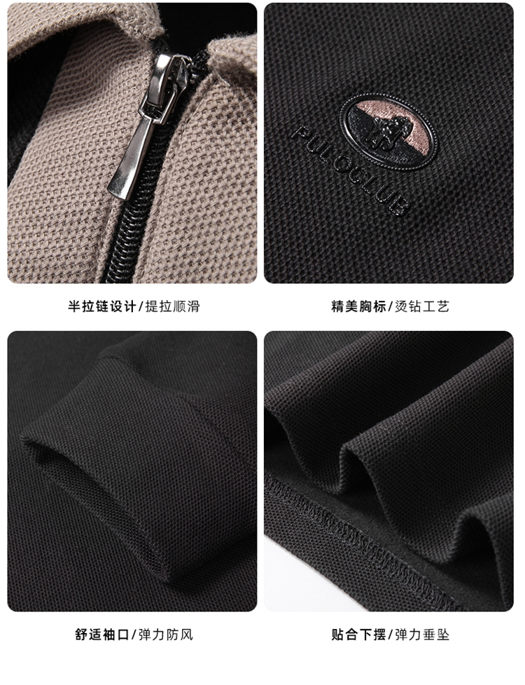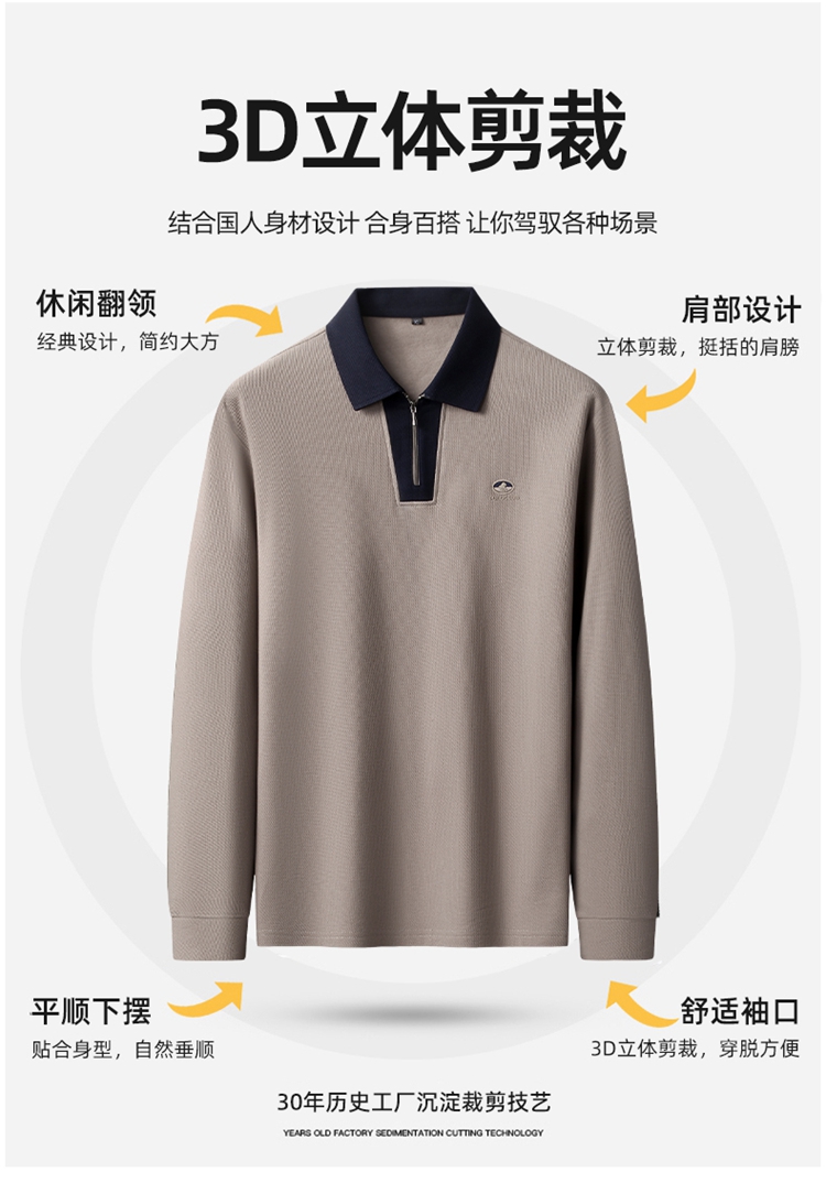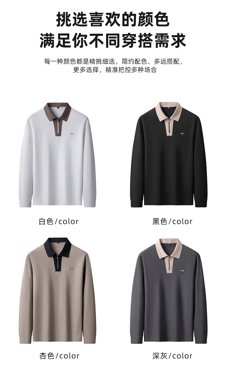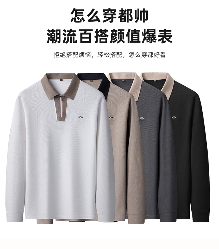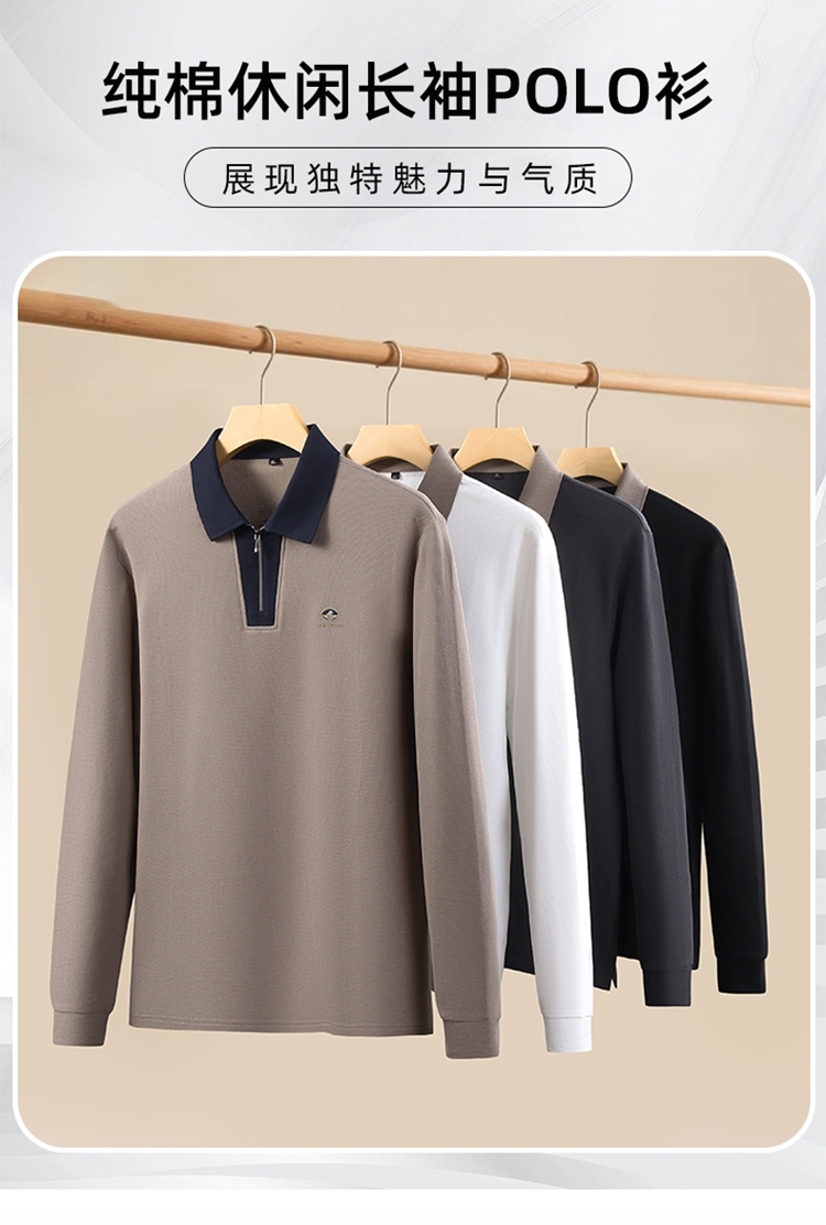 【DK】【新疆棉】大依优型大码男装棉Polo衫长袖T恤商务休闲半拉链翻领上衣