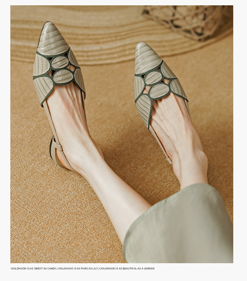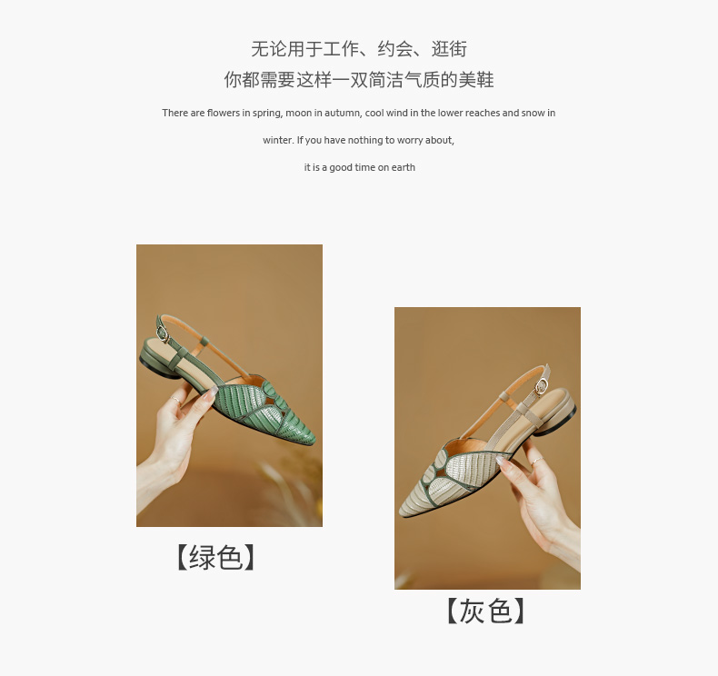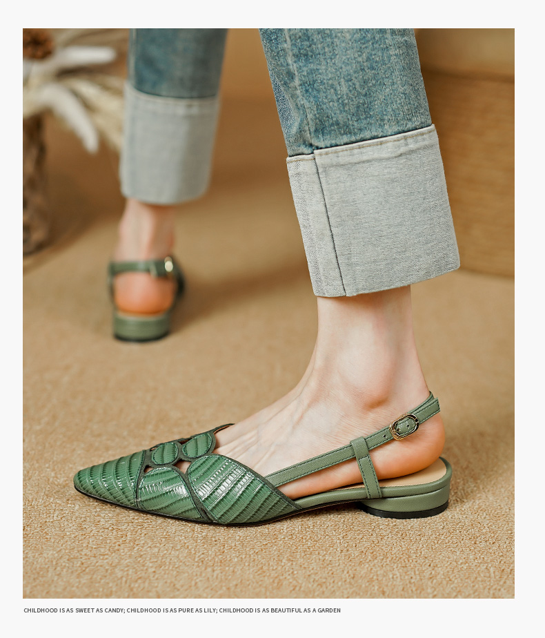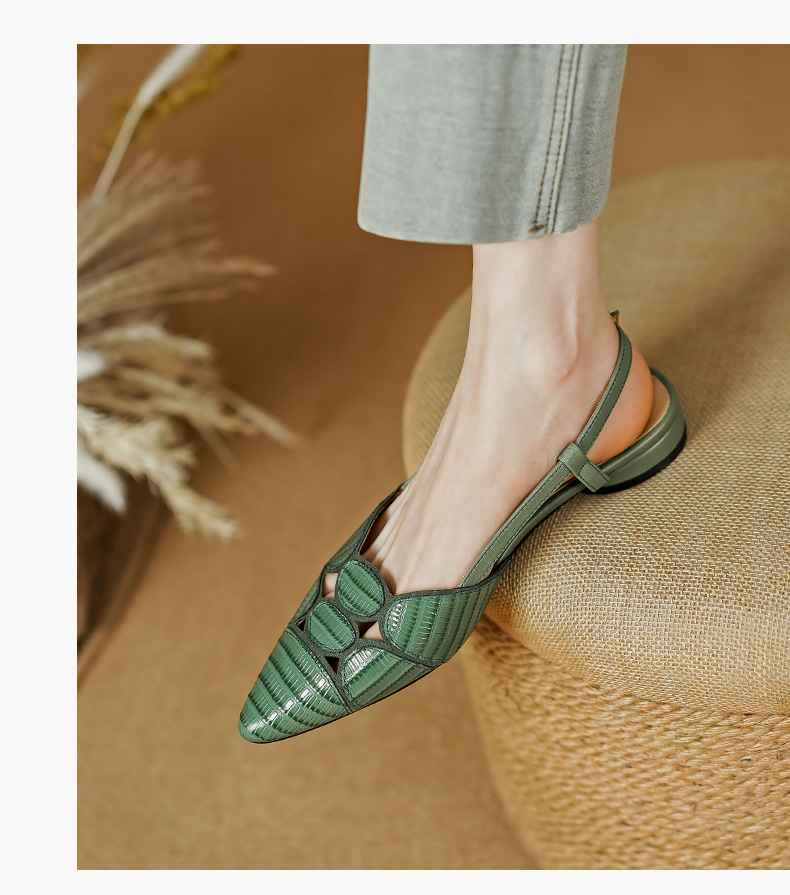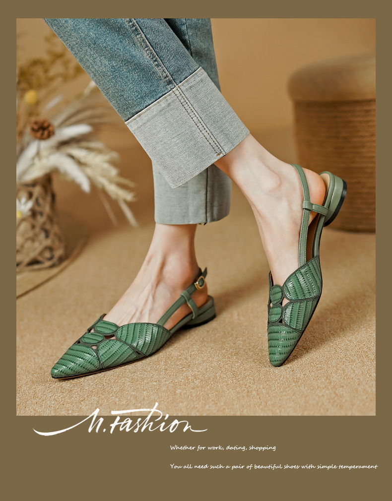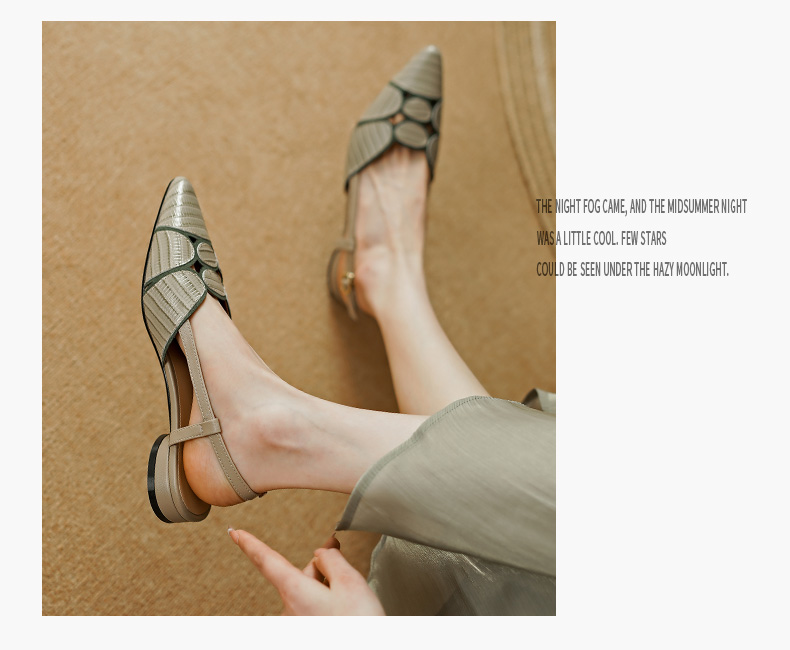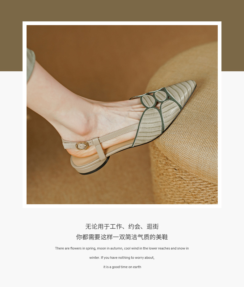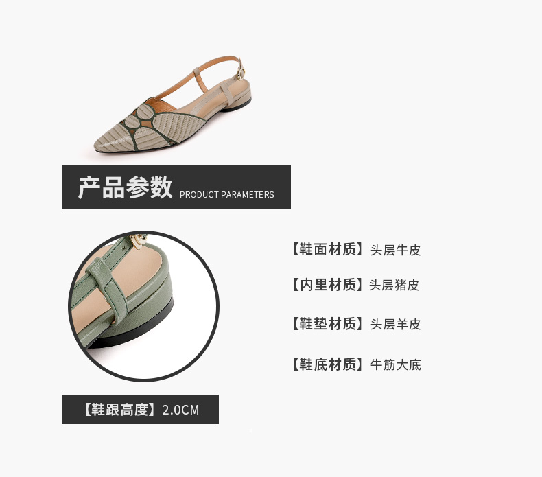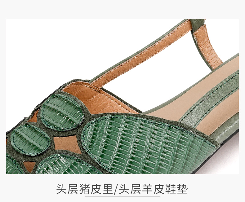 舒适百搭,里外全头层皮复古鳗鱼纹包头拖鞋PS1338