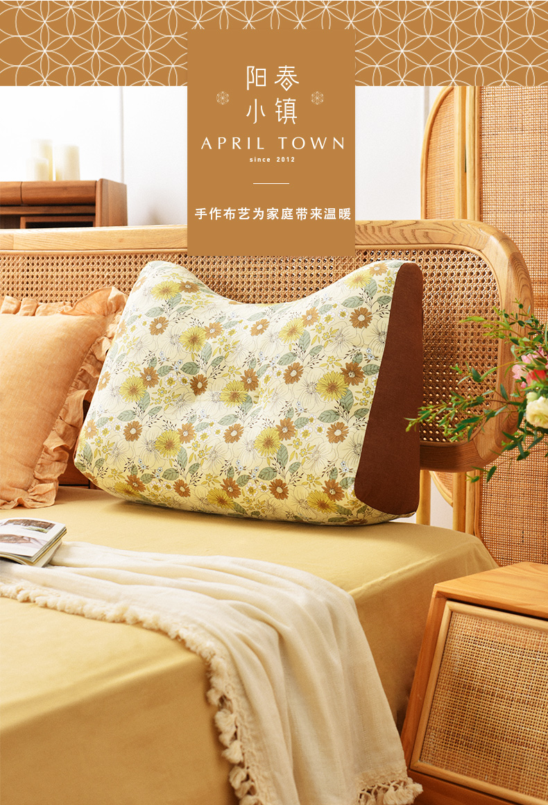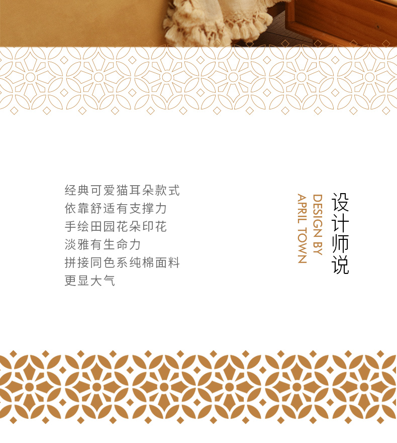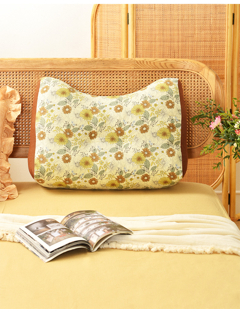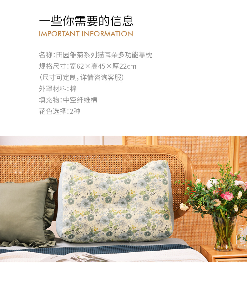 田园雏菊系列猫耳朵多功能靠枕软包高级感腰靠可拆洗