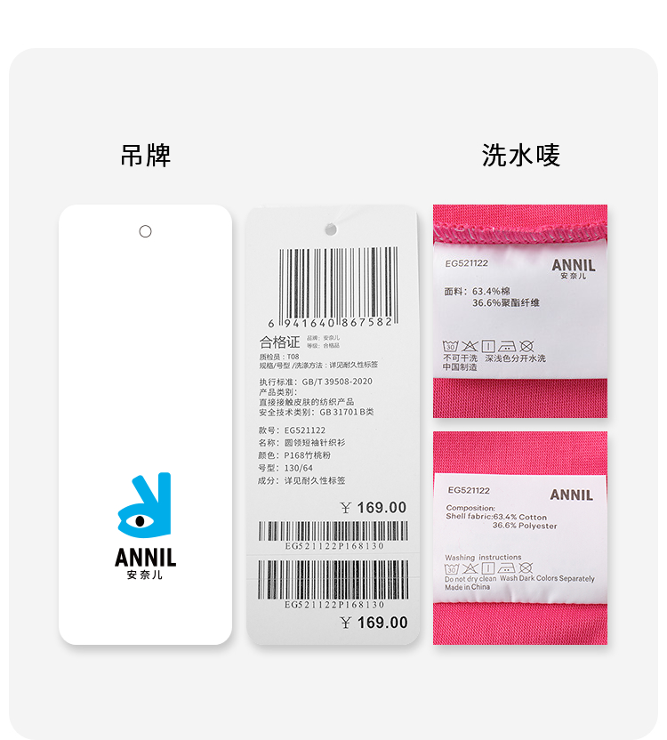 女童SORONA凉感圆领短袖针织衫夏季新款安奈儿童装EG521122