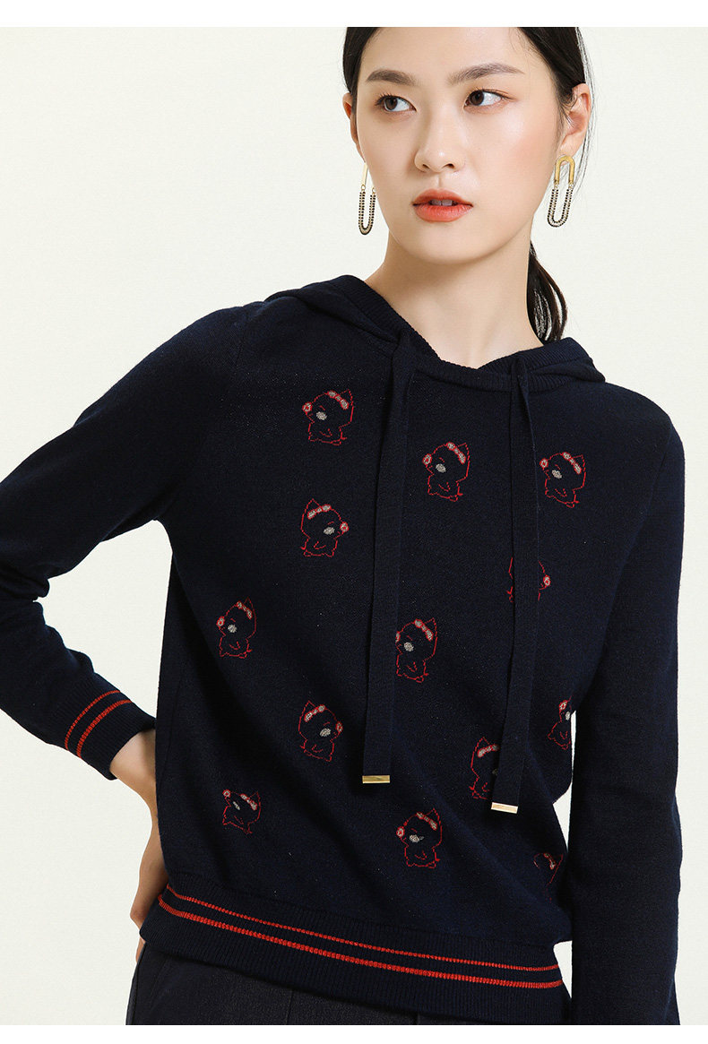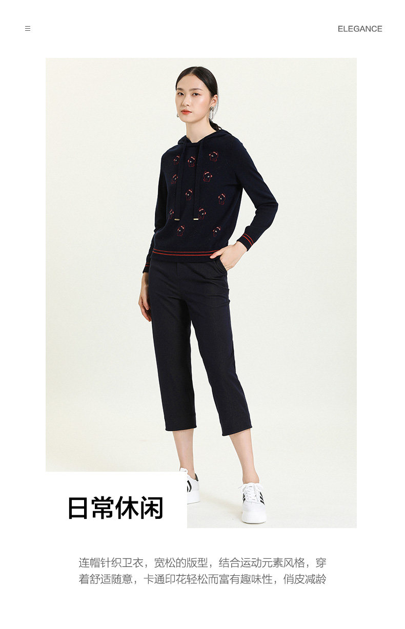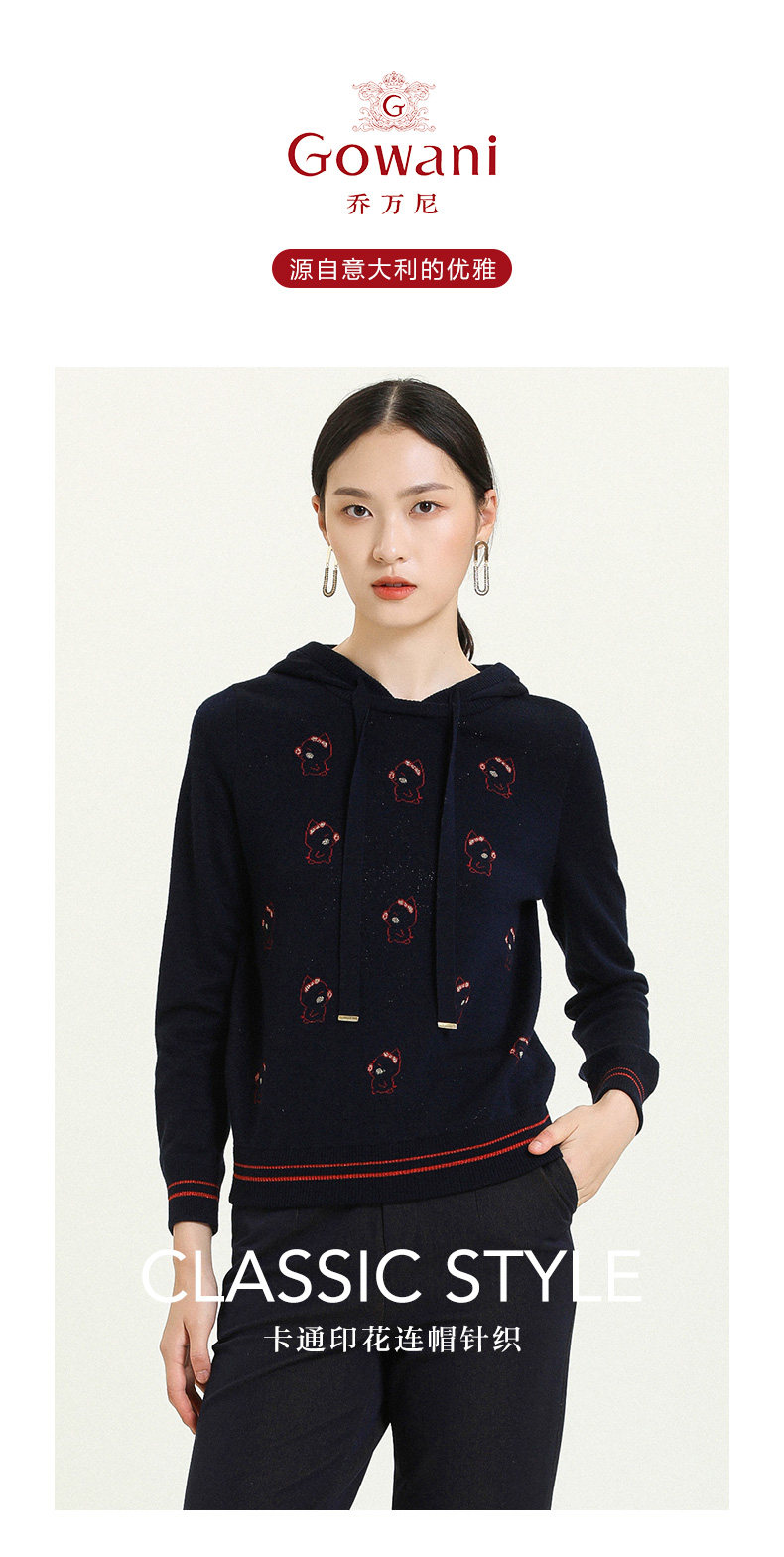 乔万尼秋冬新款设计感弹力面料舒适运动风趣味连帽针织卫衣ES4M412