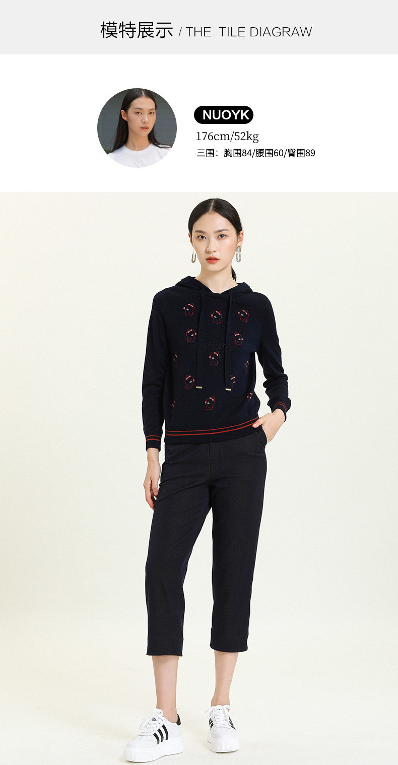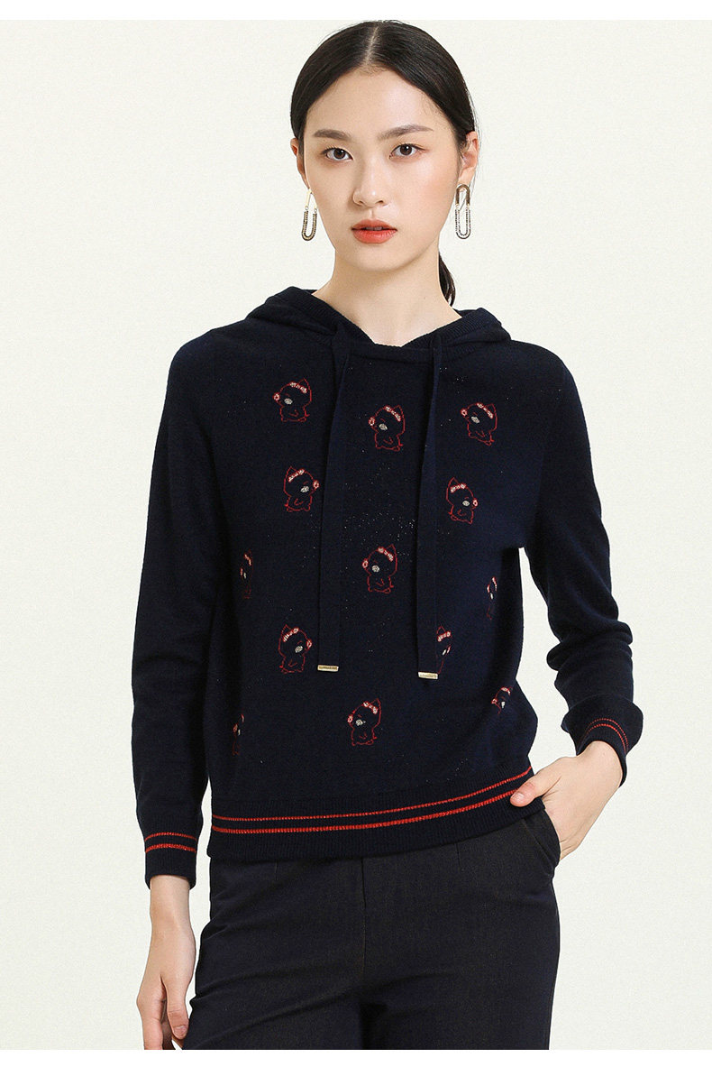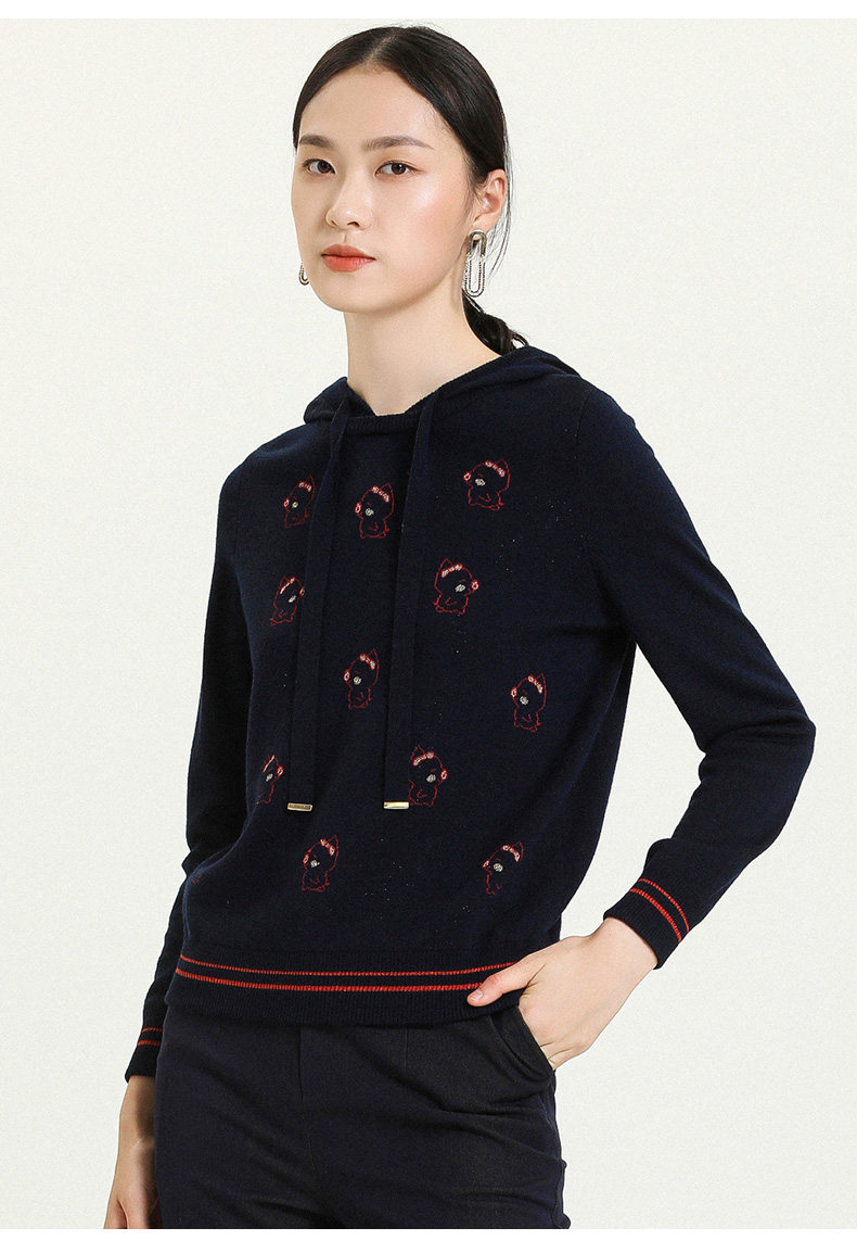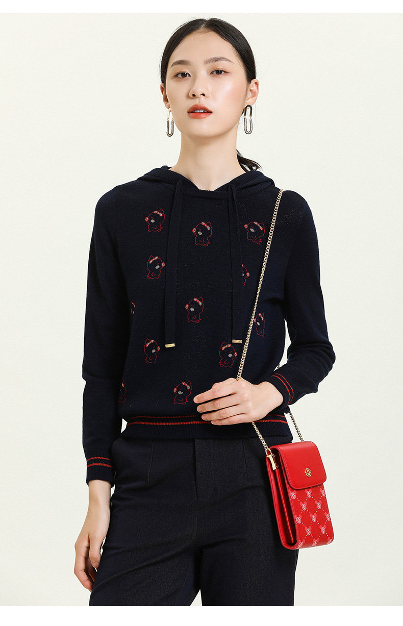 乔万尼秋冬新款设计感弹力面料舒适运动风趣味连帽针织卫衣ES4M412