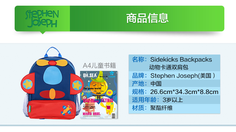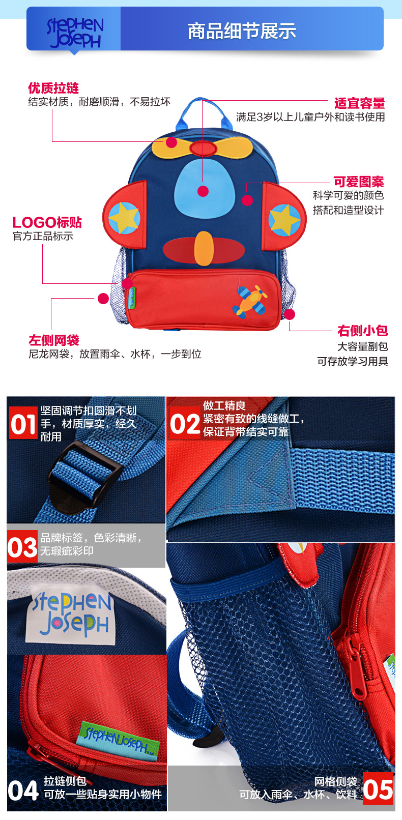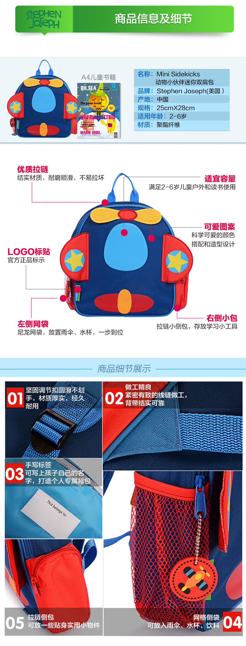 Stephen Joseph-儿童双肩包 迷你双肩包 可爱斜挎包 推荐2-12岁儿童使用 童趣可爱 可放零食水杯 轻便 做工好 款式多 符合美欧安全标准