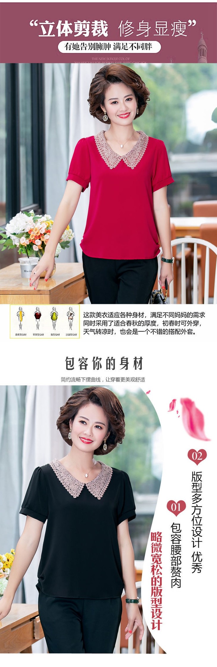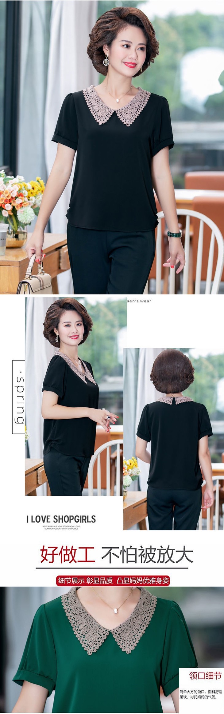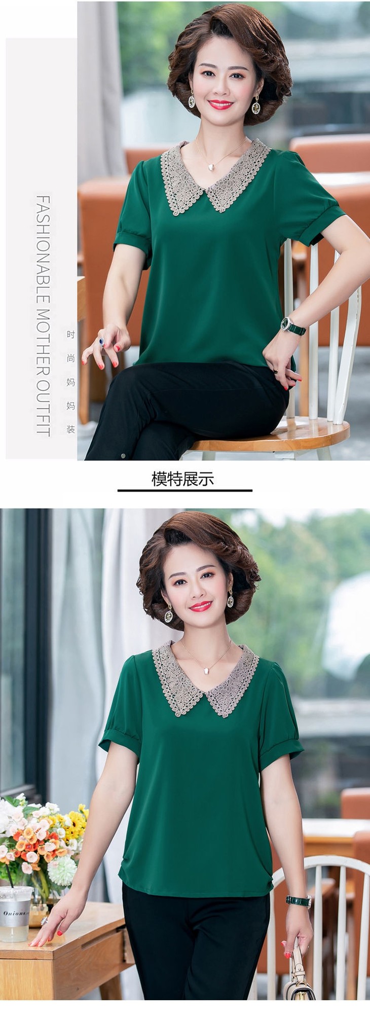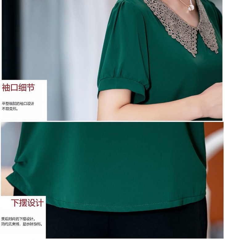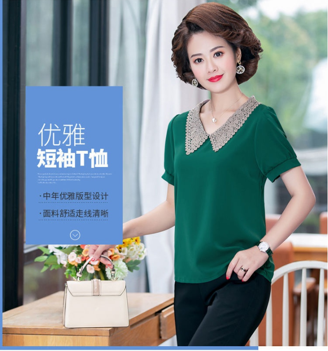W-7855自制妈妈装短袖宽松大码半袖雪纺衫