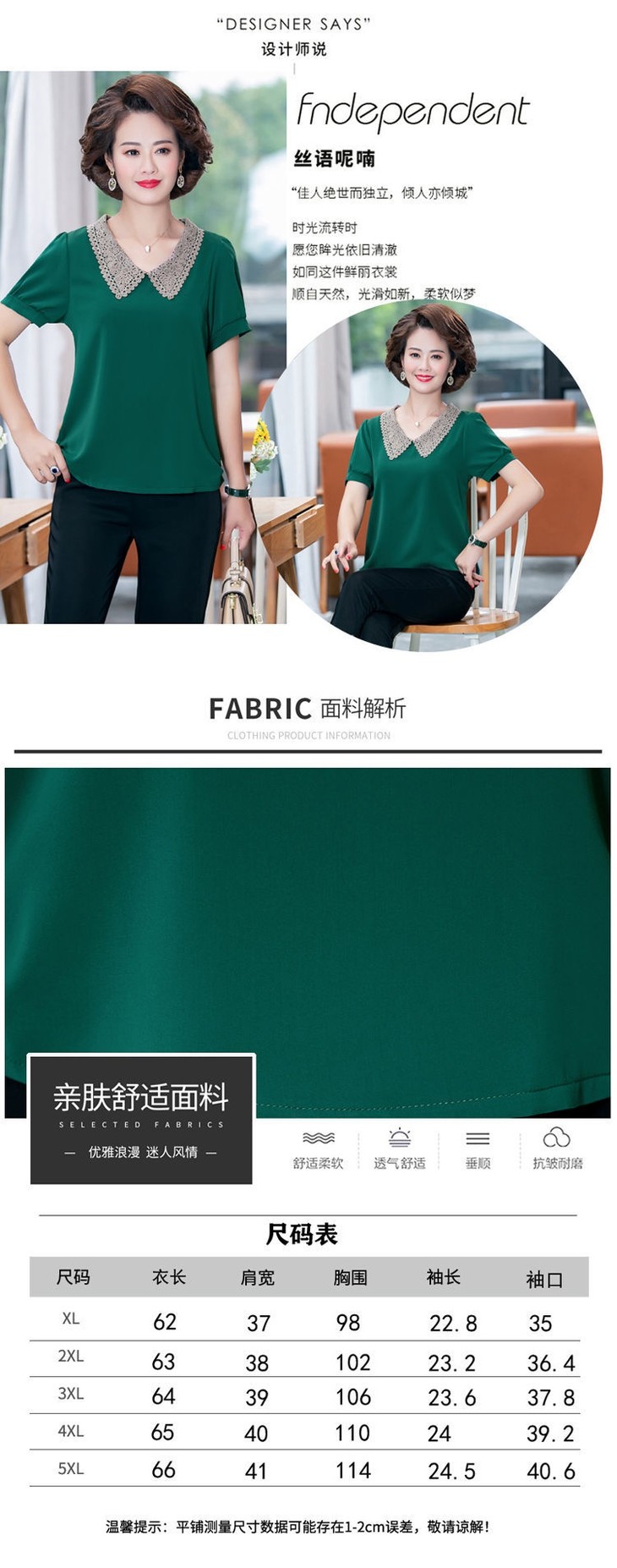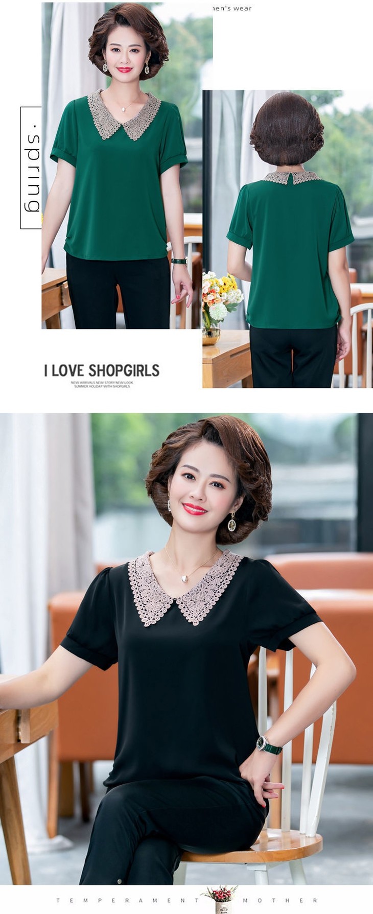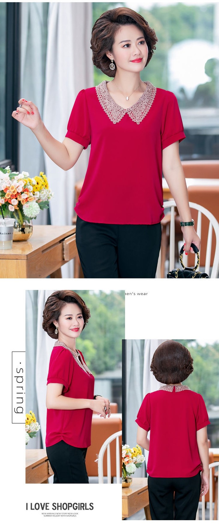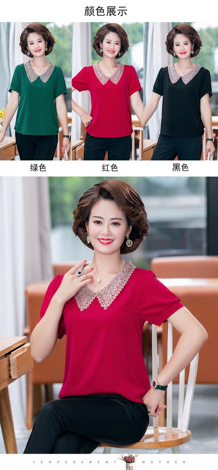 W-7855自制妈妈装短袖宽松大码半袖雪纺衫