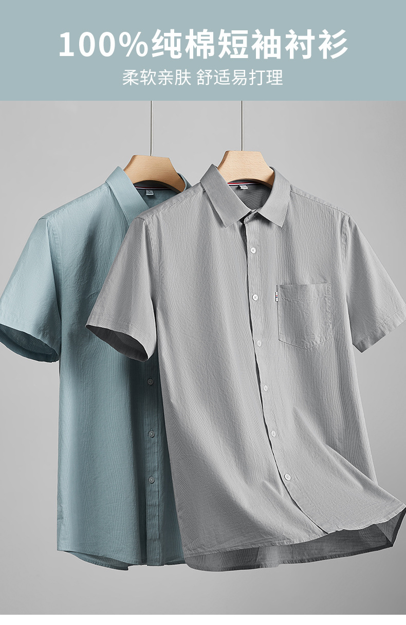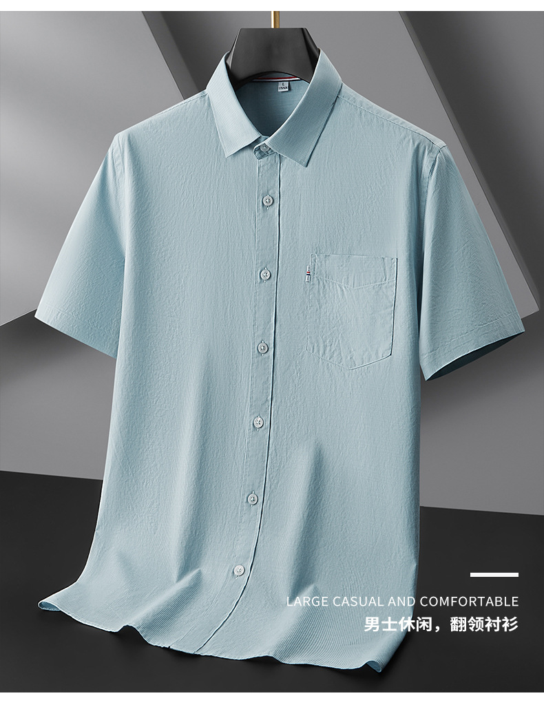 【100%棉】【DKP】大依优型大码条纹短袖衬衫男加肥加大码上衣胖子休闲棉半袖衬衣夏季薄款