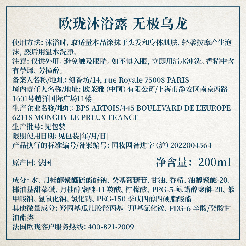 【双12】【效期26年10左右;无塑封】欧珑 沐浴露/身体乳 无极乌龙/茶花香颂/赤霞橘光 国内发货
