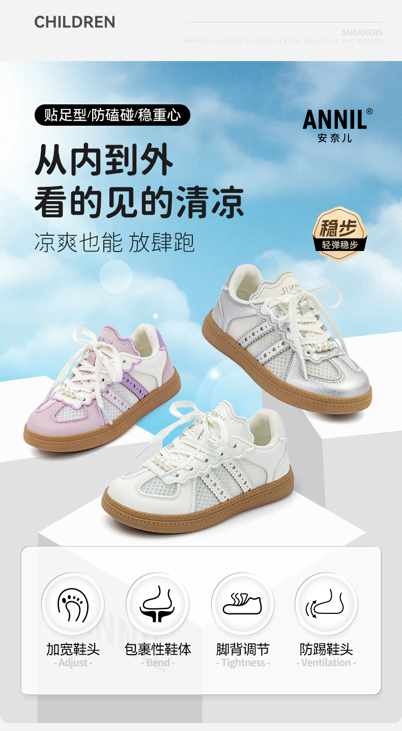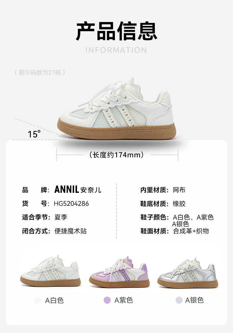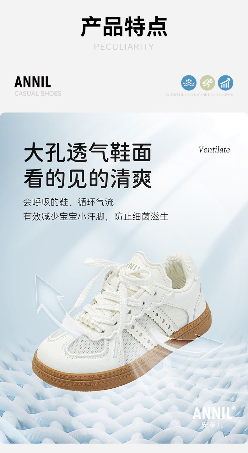 ANNIL/安奈儿女童板鞋2025夏季单网儿童休闲德训鞋女宝运动鞋低帮童鞋子HG5204286