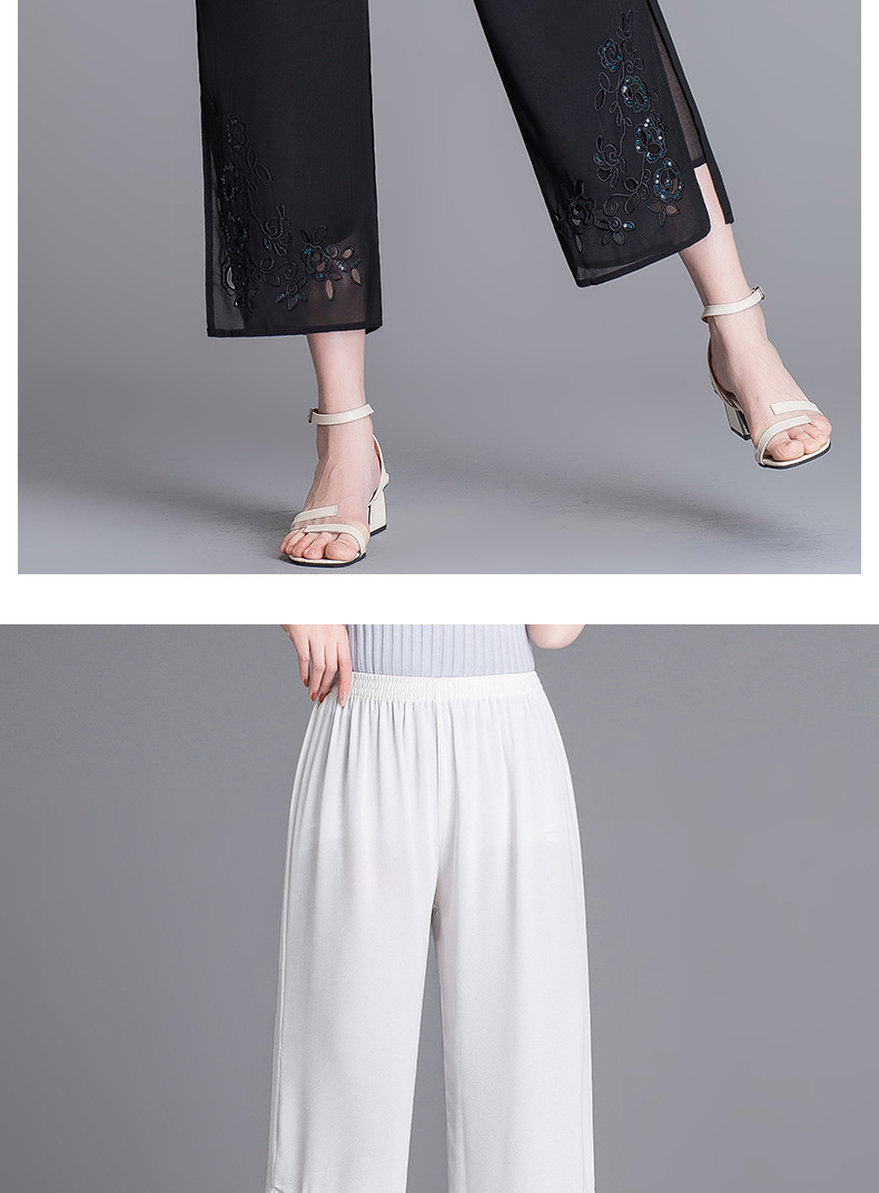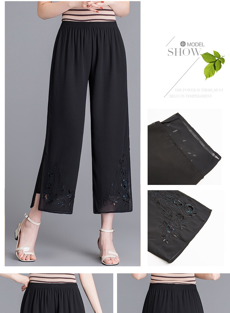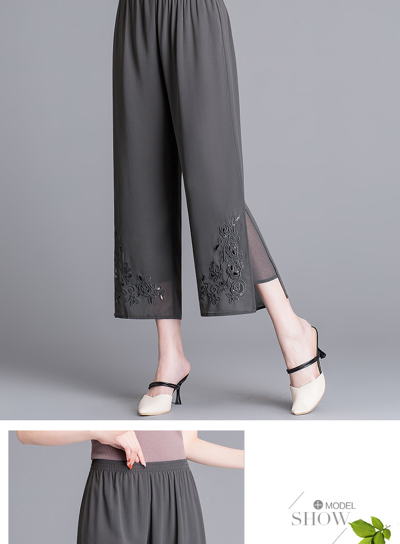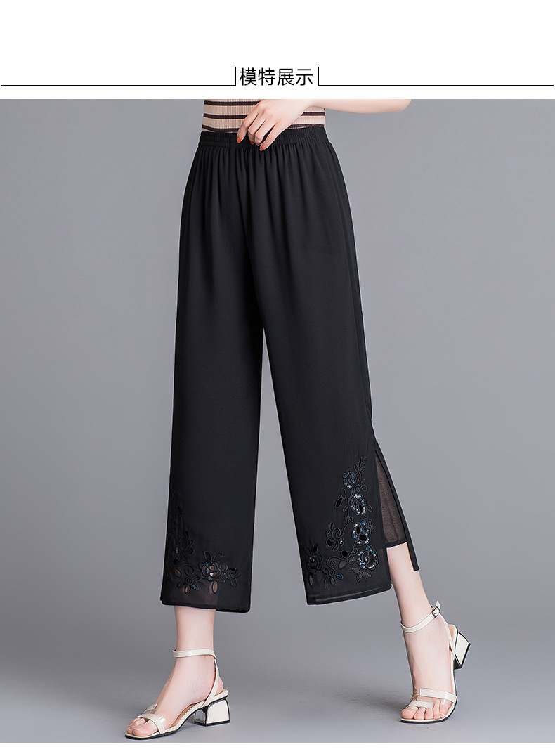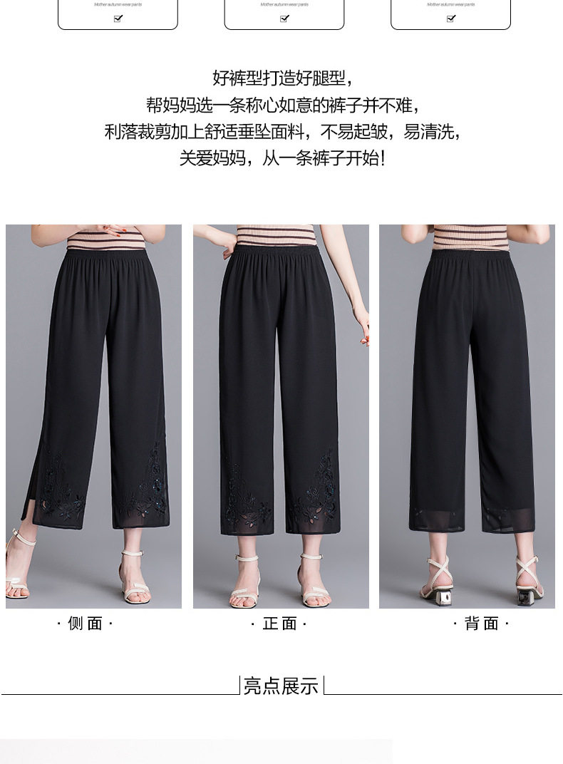 YMS-1909妈妈夏装阔腿裤 中老年松紧腰大码薄款九分裤