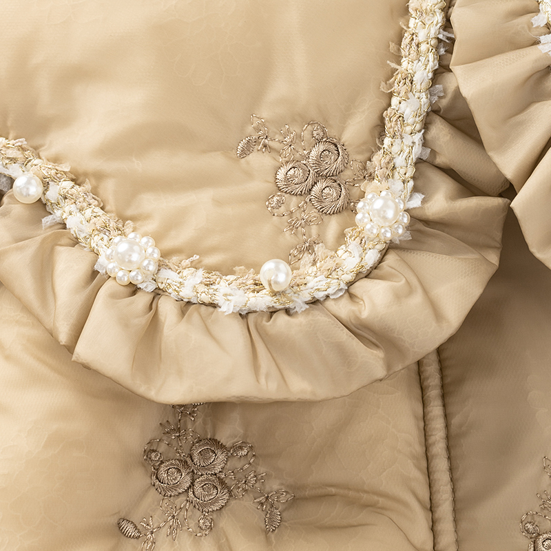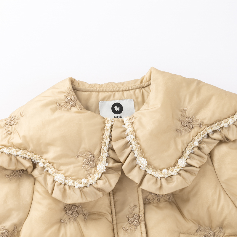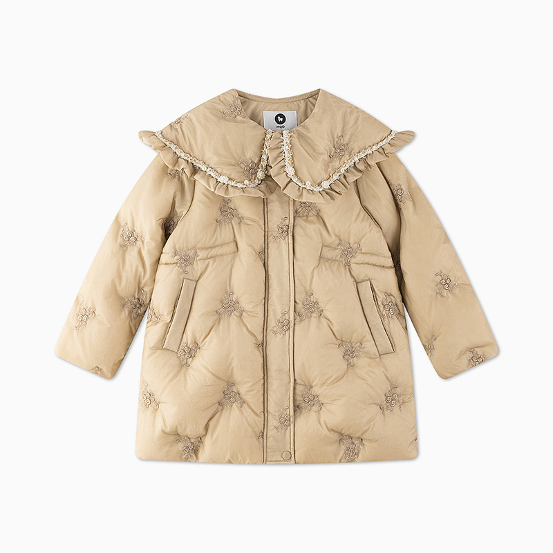 【MQD】女童冬季精致花朵刺绣小香风翻领羽绒服