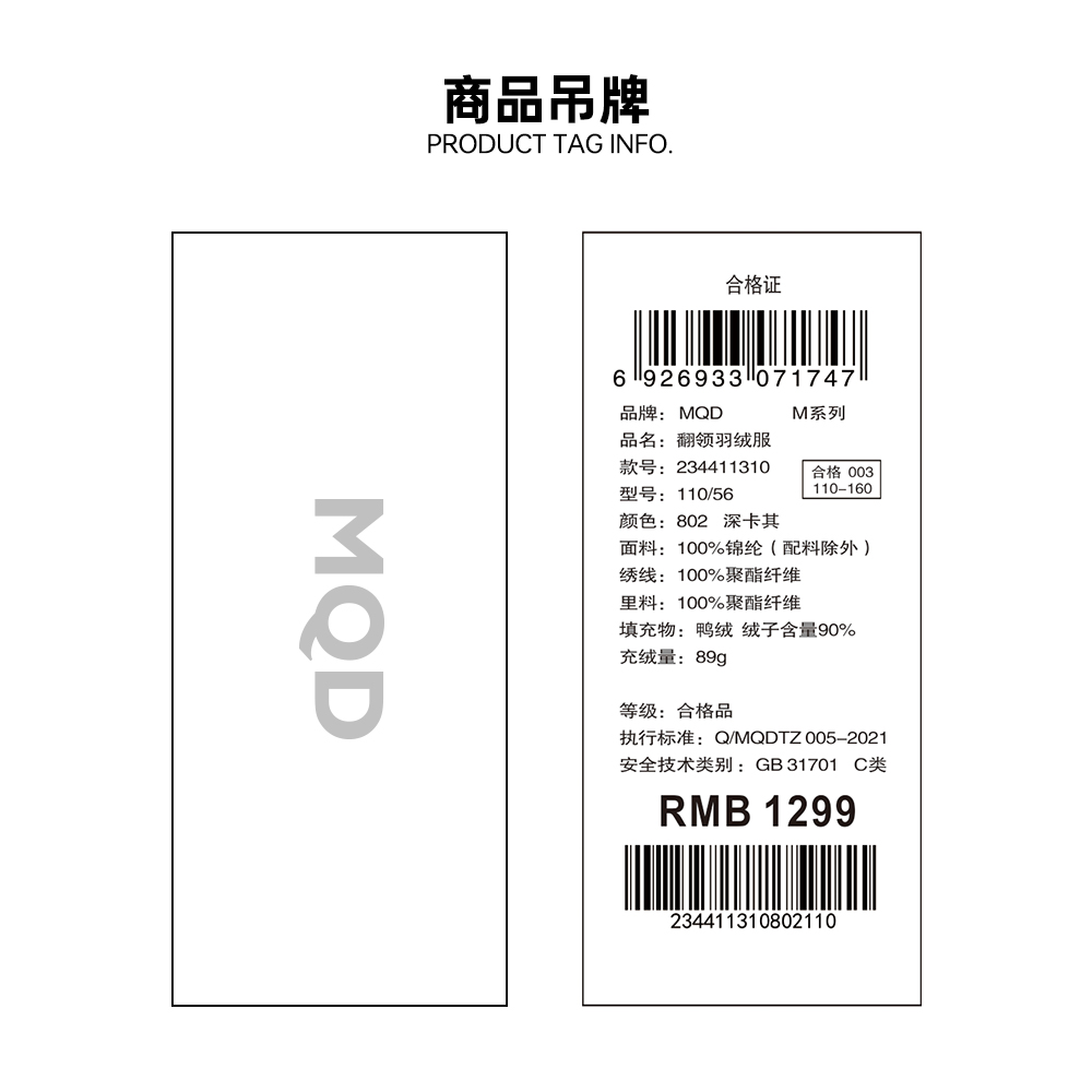 【MQD】【三防】童装儿童羽绒服加绒外套男童新款冬连帽保暖上衣