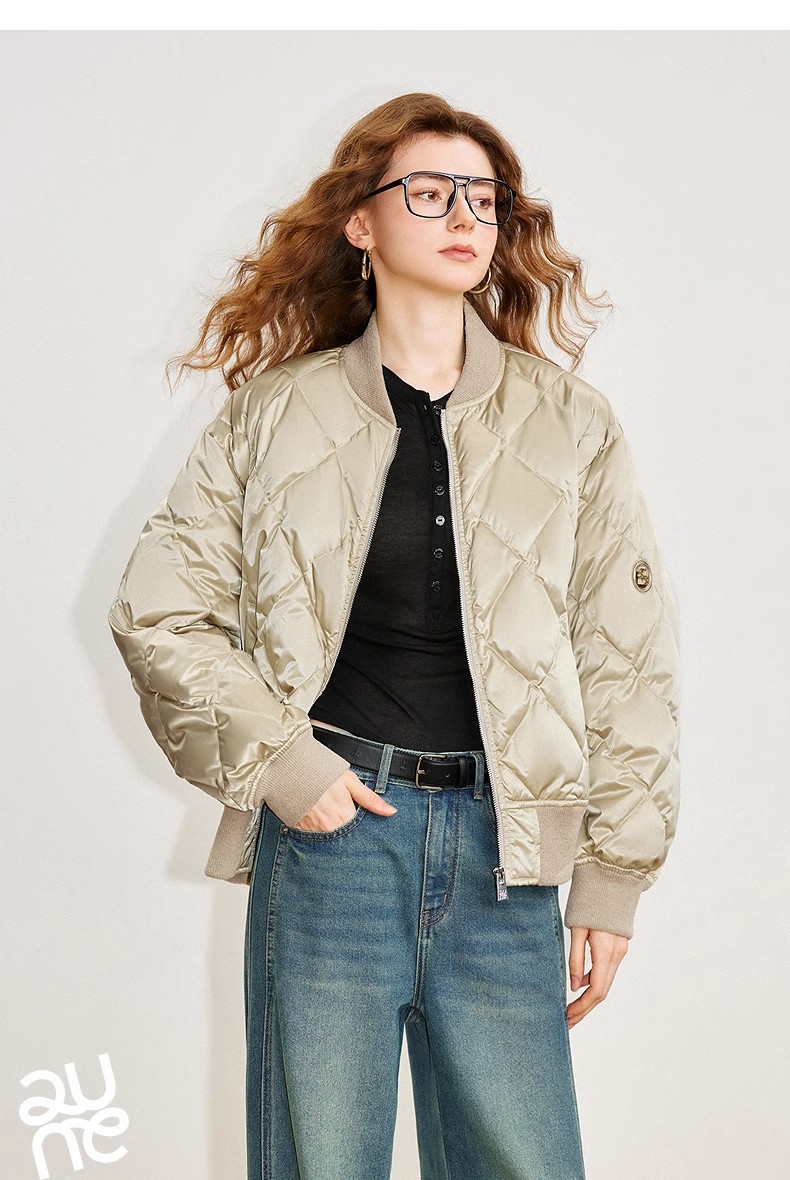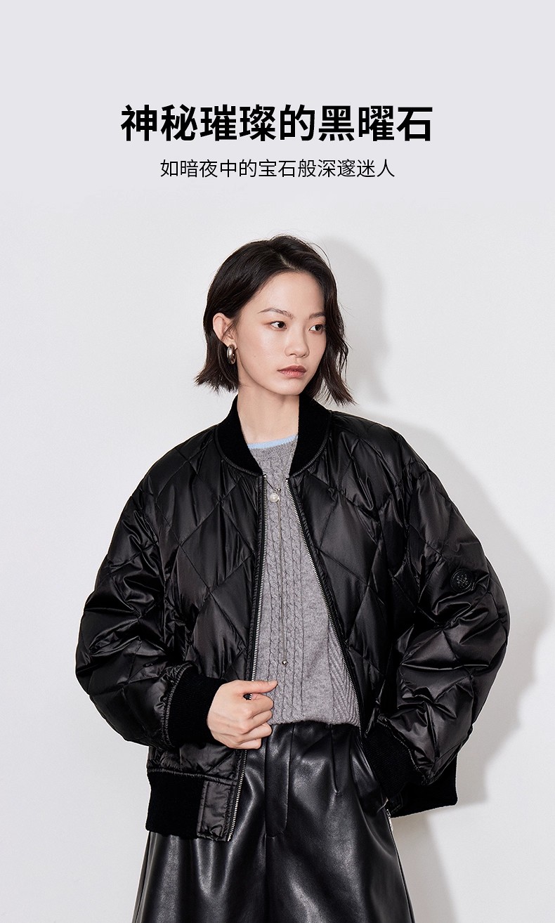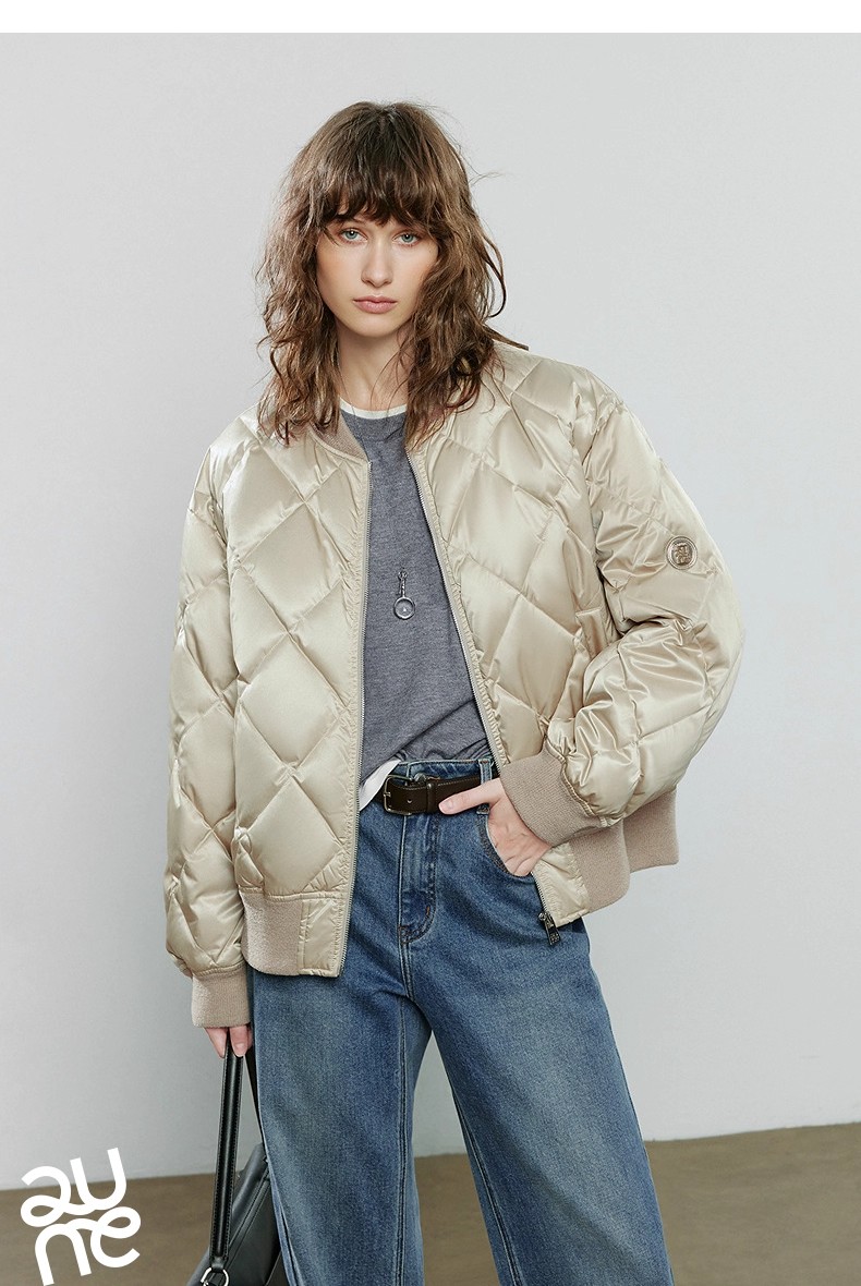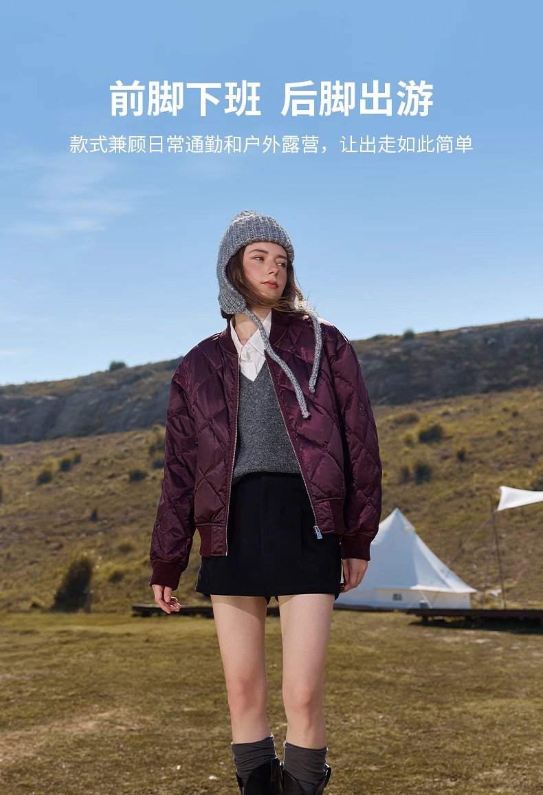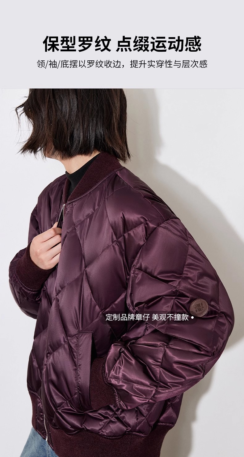 TOYOUTH初语美式复古机车羽绒服女秋冬新款白鸭绒棒球服外套
