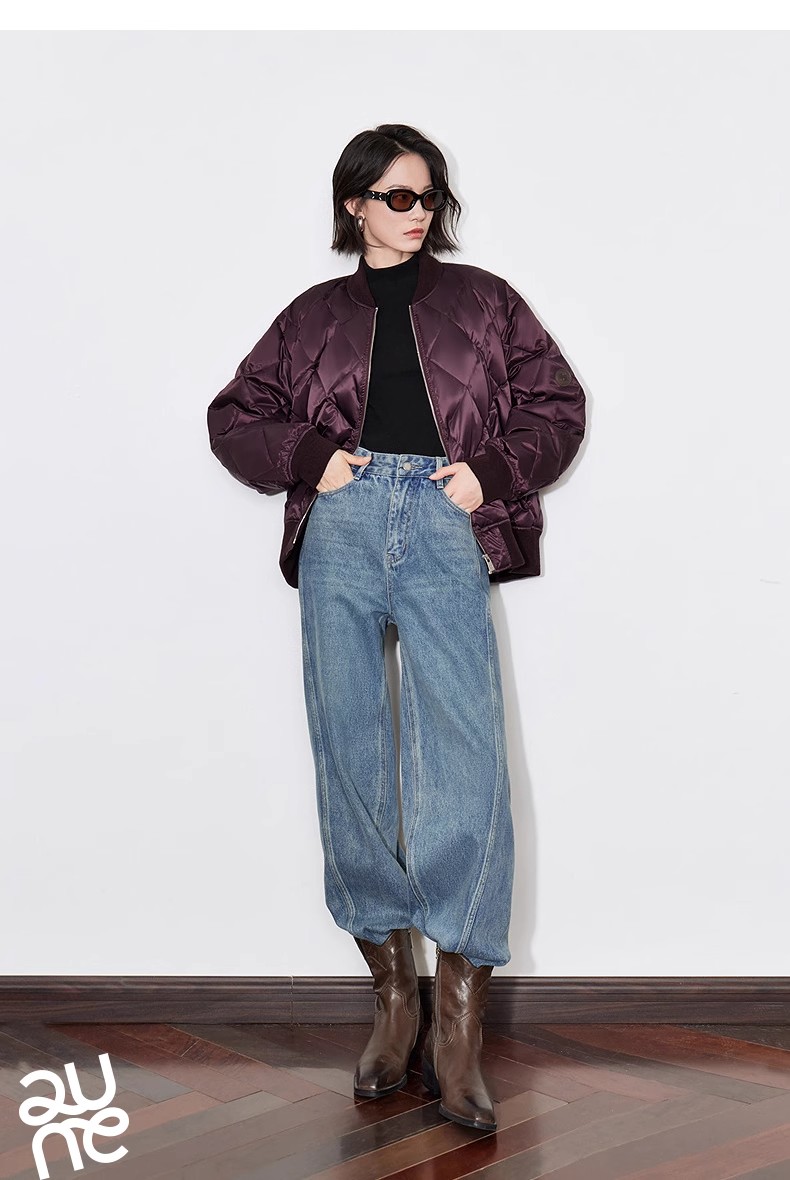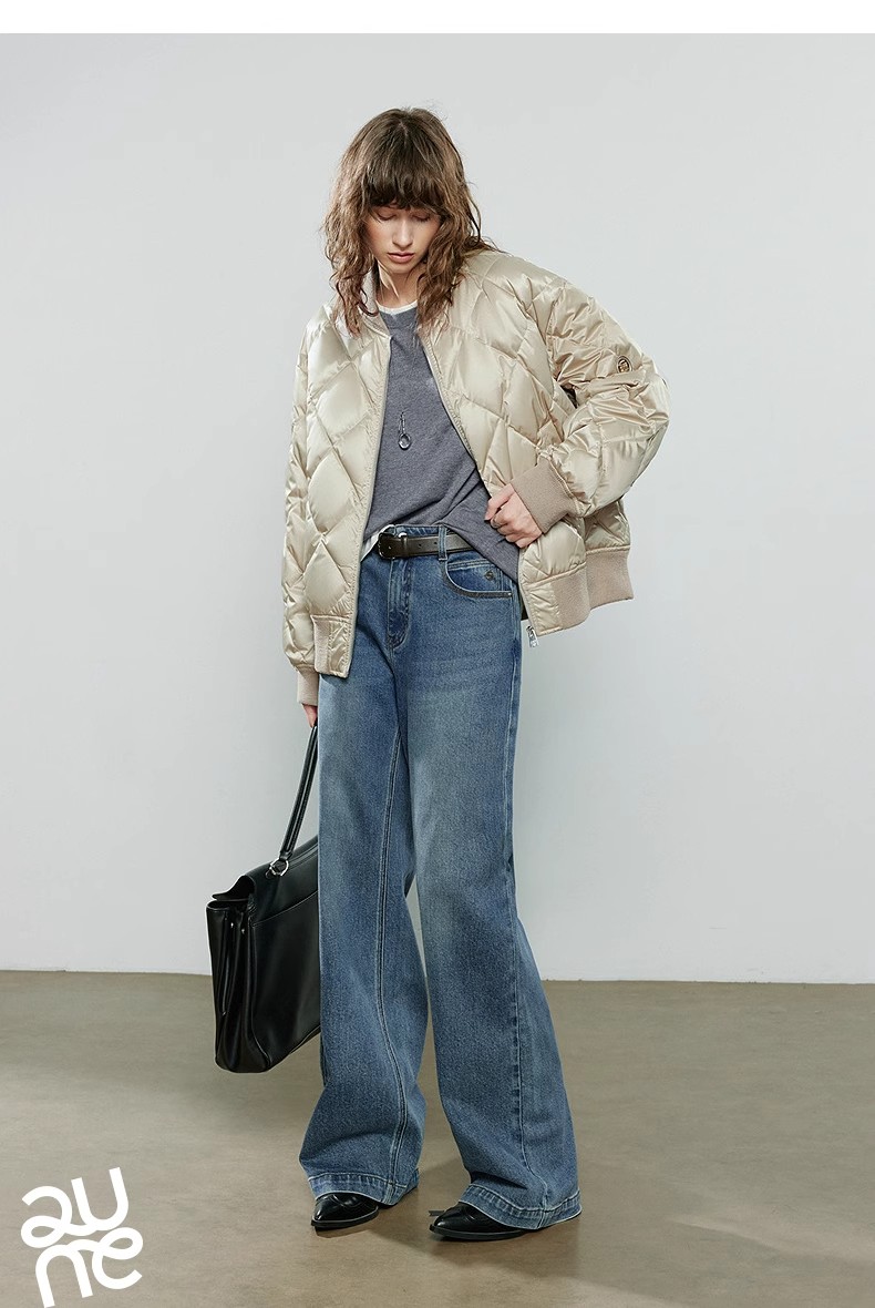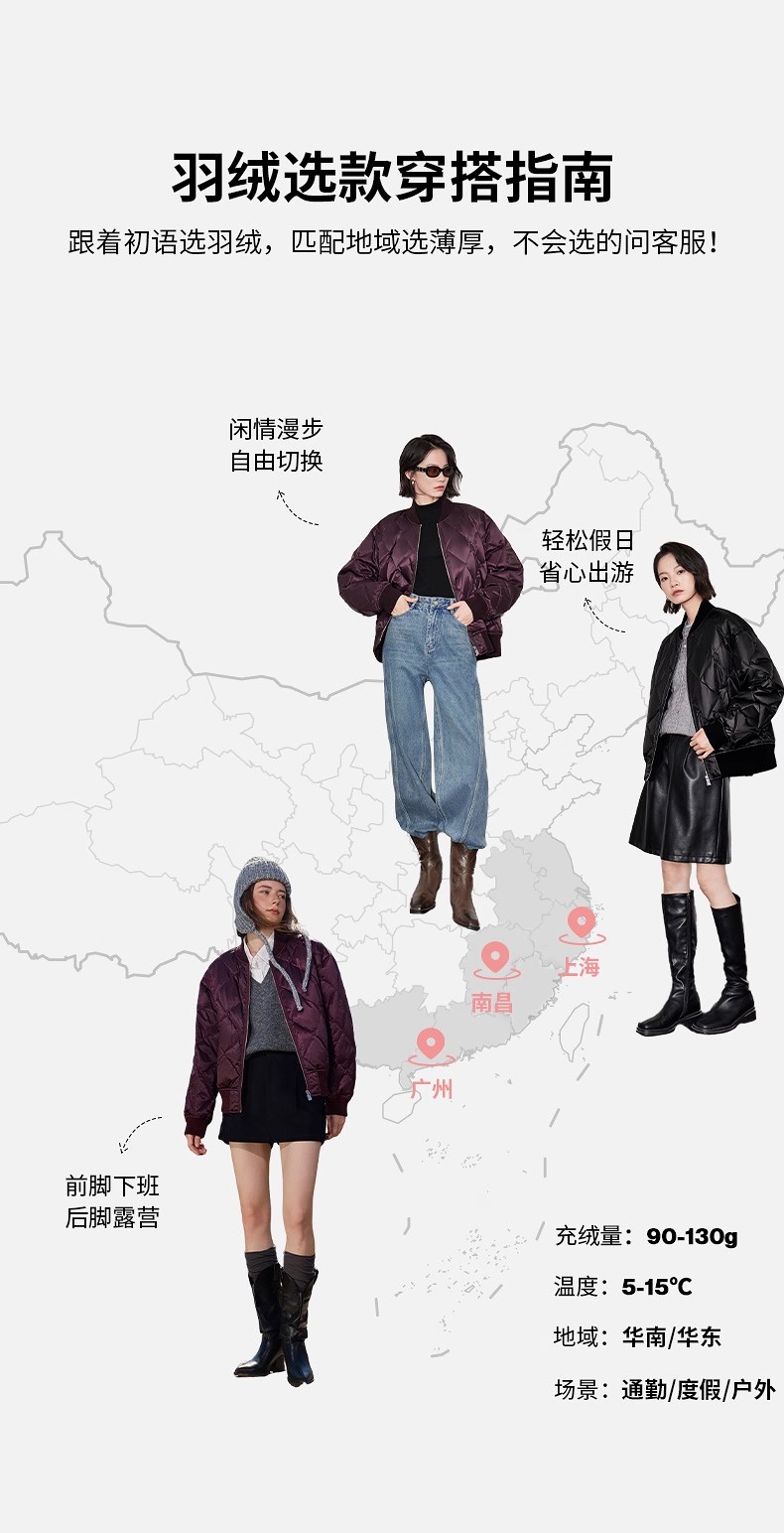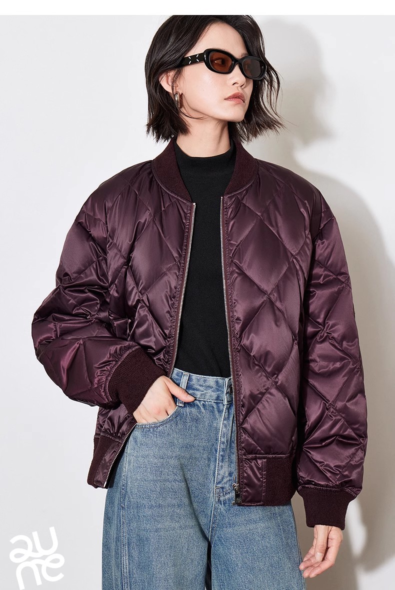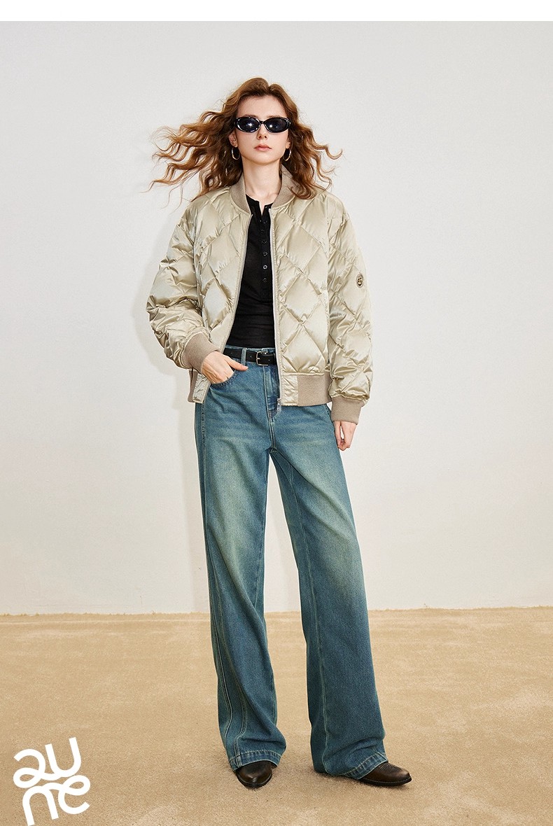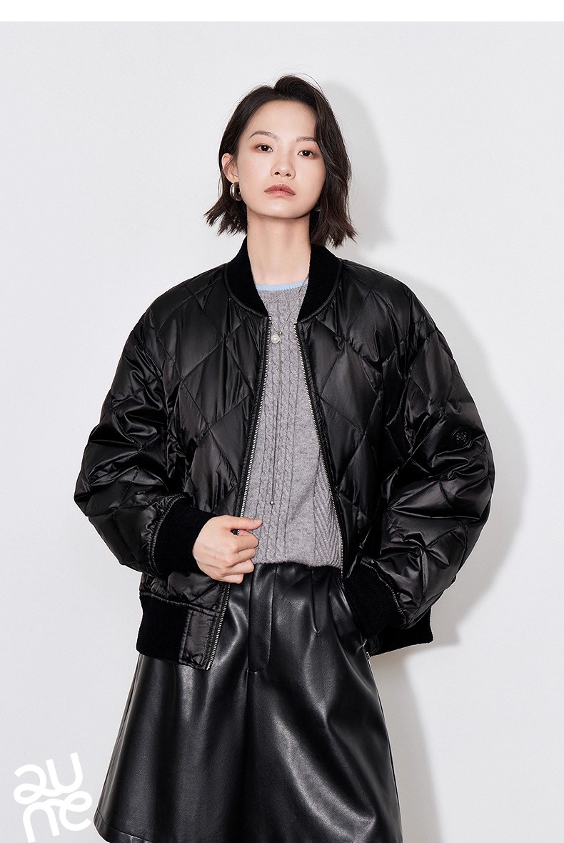 TOYOUTH初语美式复古机车羽绒服女秋冬新款白鸭绒棒球服外套