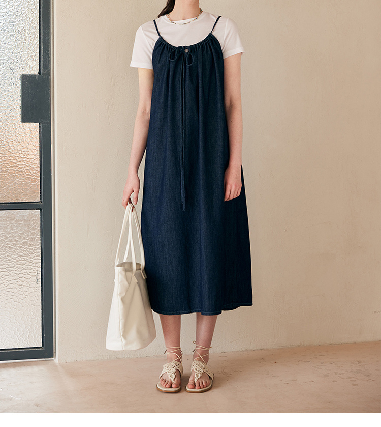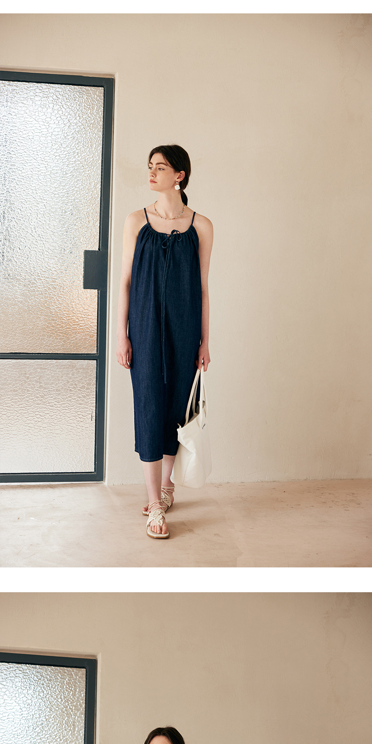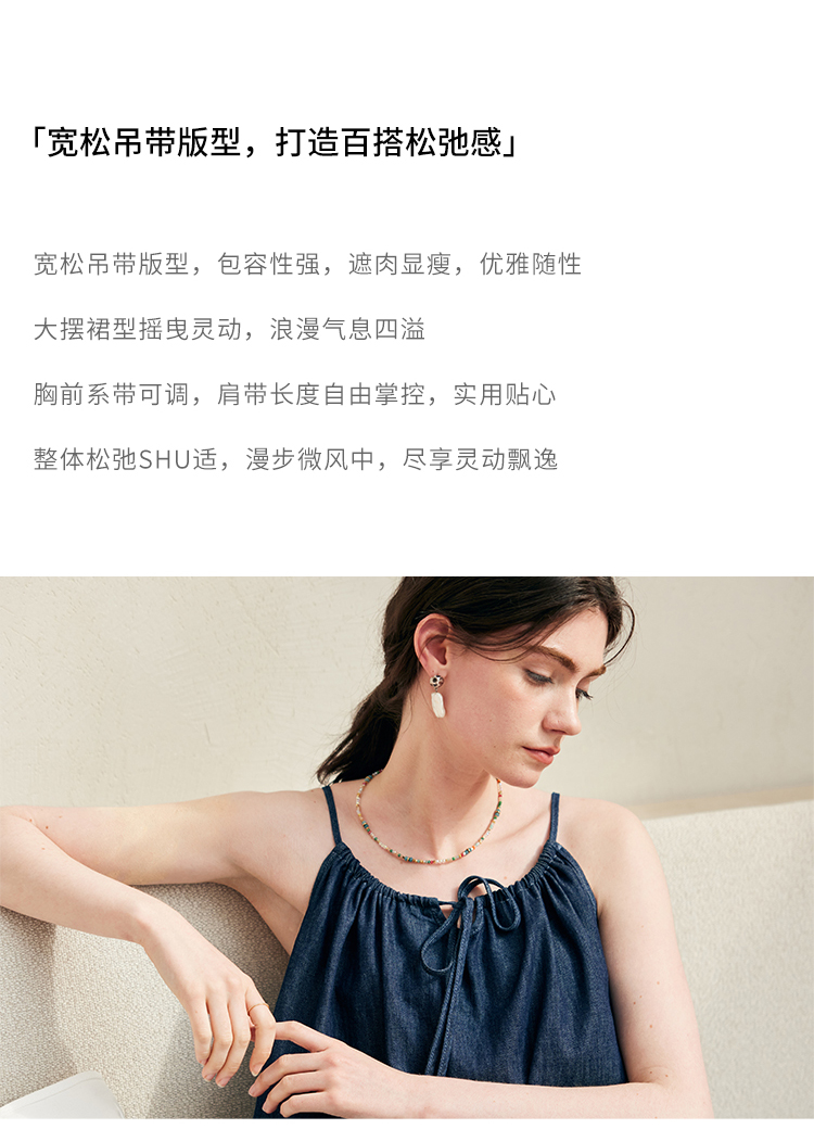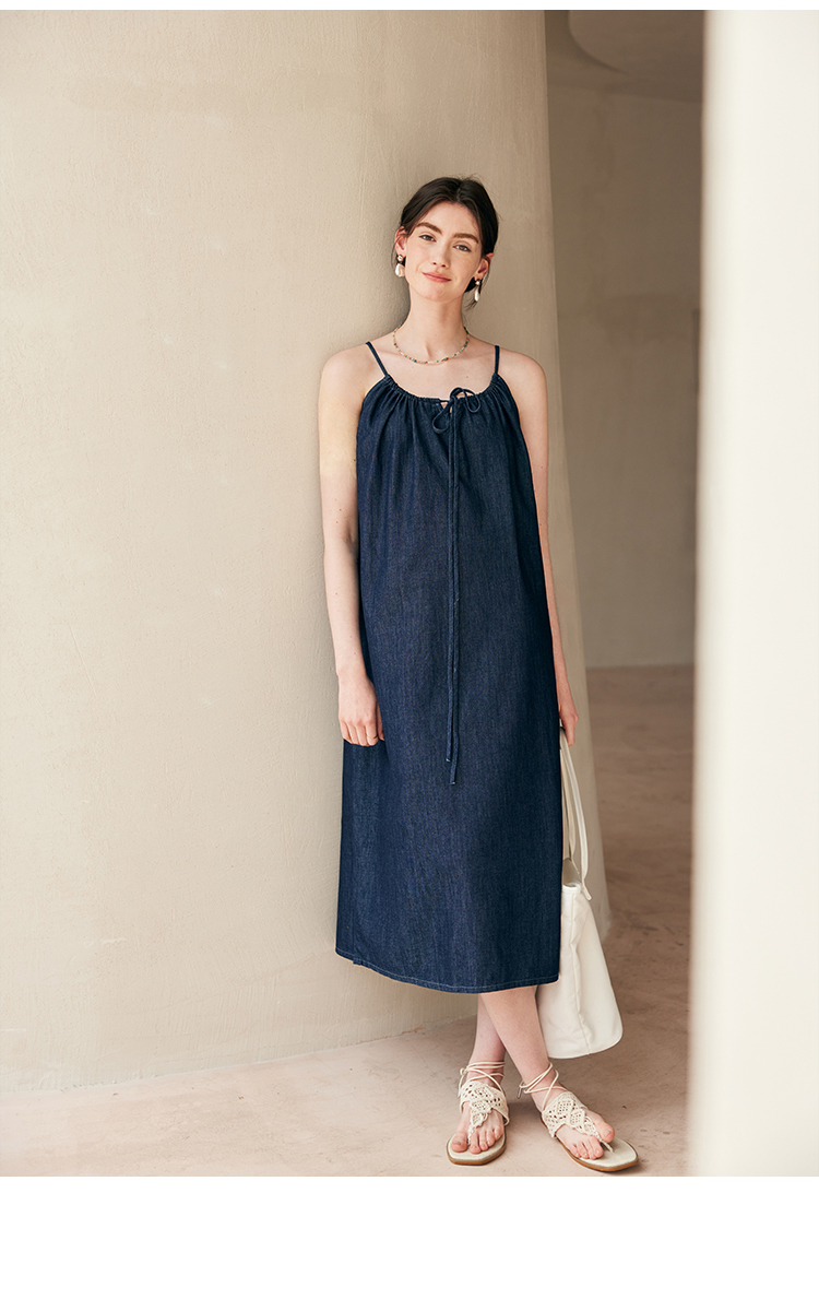 HeyDress复古牛仔吊带裙女夏季法式宽松显瘦慵懒风休闲度假连衣裙