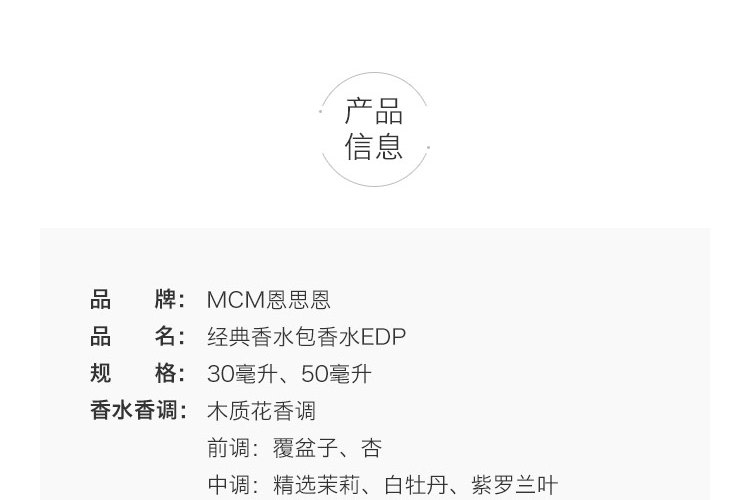 【门店直发 支持同城配送】MCM 新款双肩包造型香水木质茉莉柑橘香调EDP