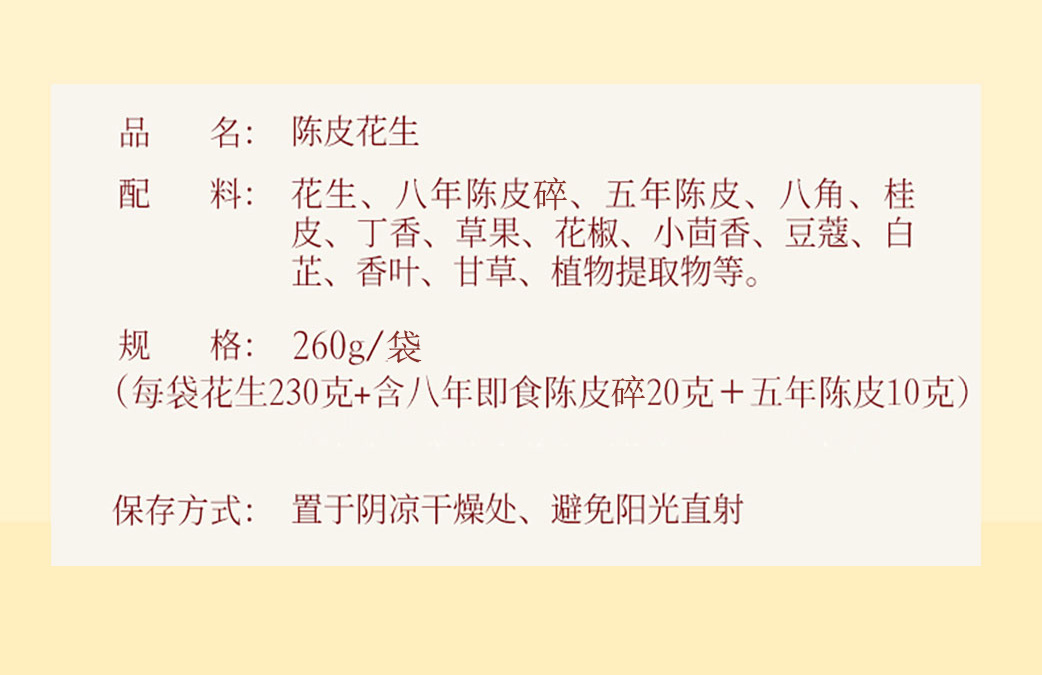 陈皮花生,8年陈化陈皮,7个工序烤晒260g/包
