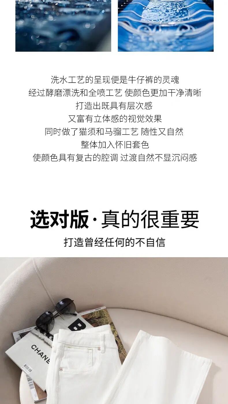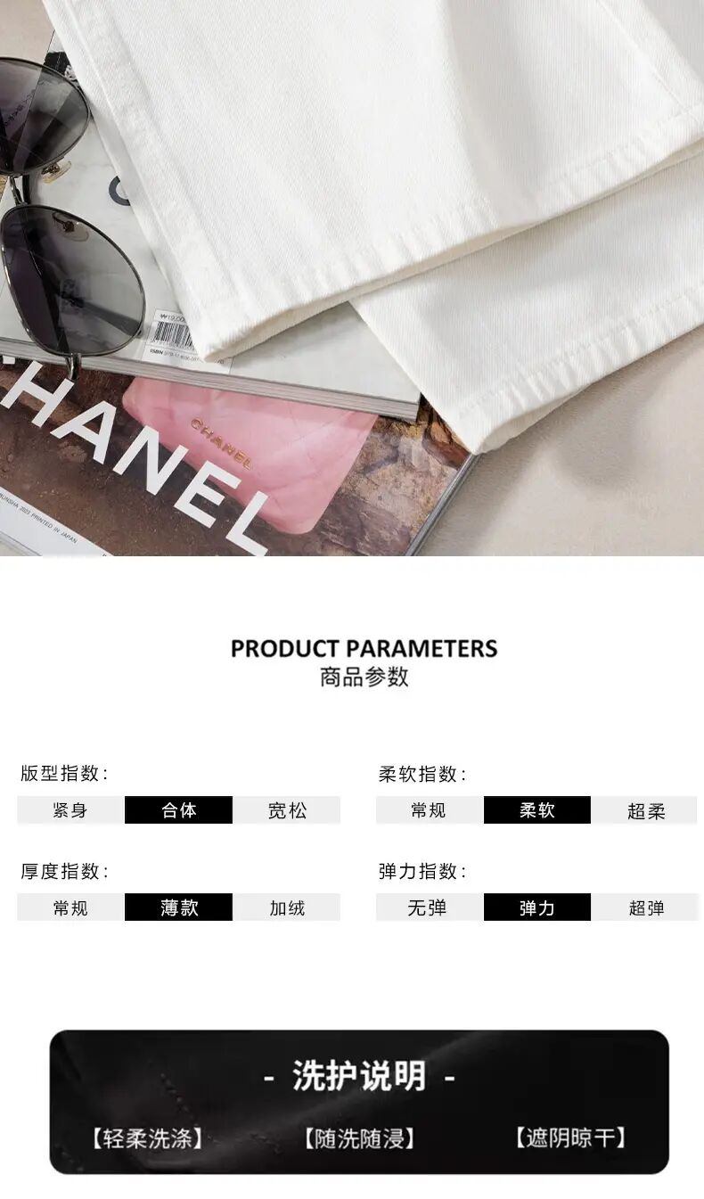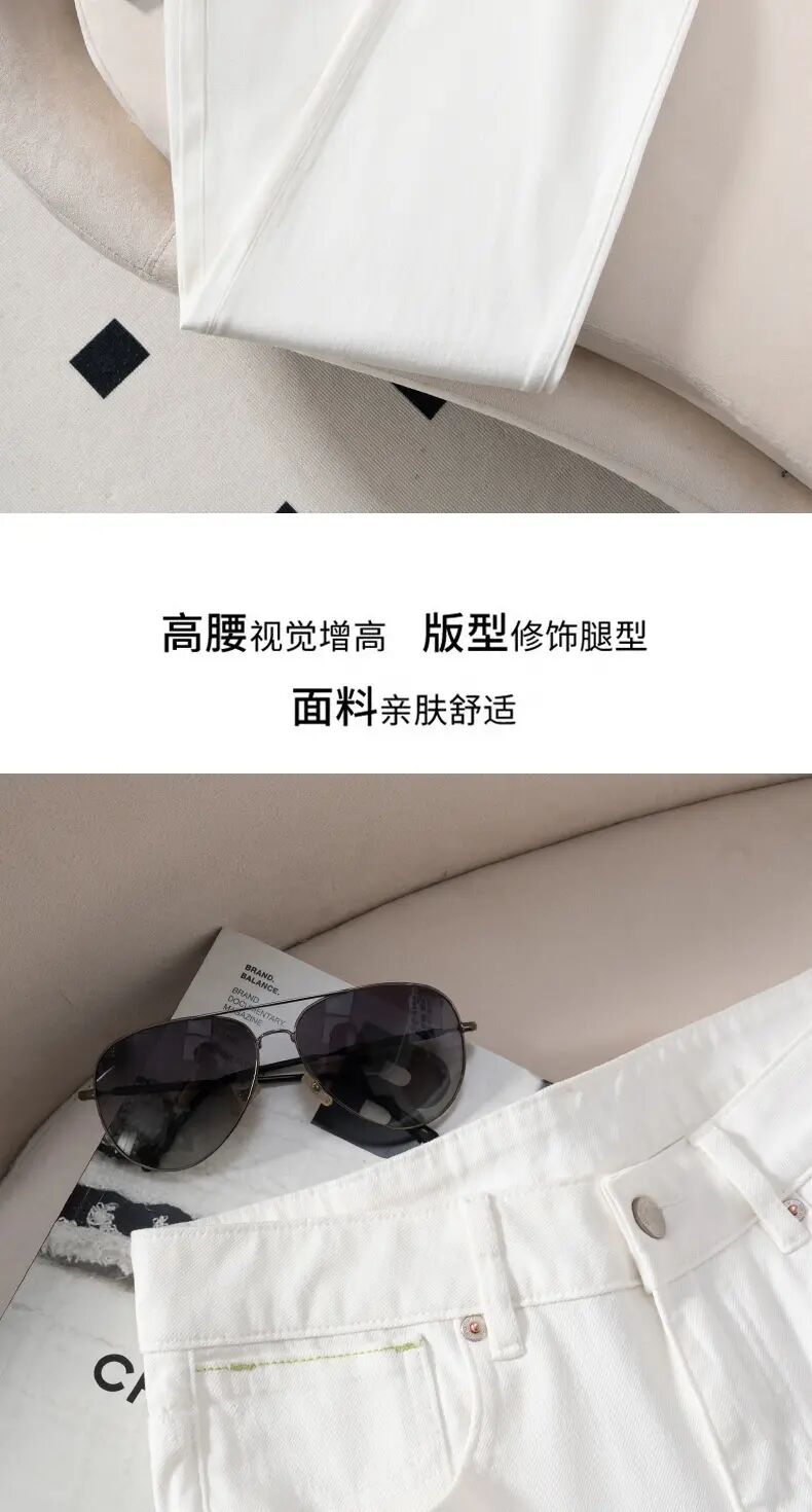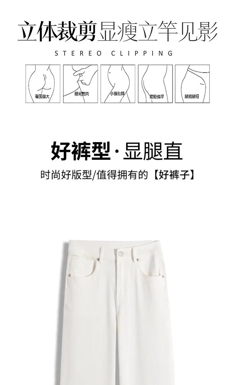 「自」全新升级【铂金会员165/天猫219/差价54】(35103)洛诗琳简约白色牛仔裤窄版阔腿裤2025夏季新款薄款直筒裤35103
