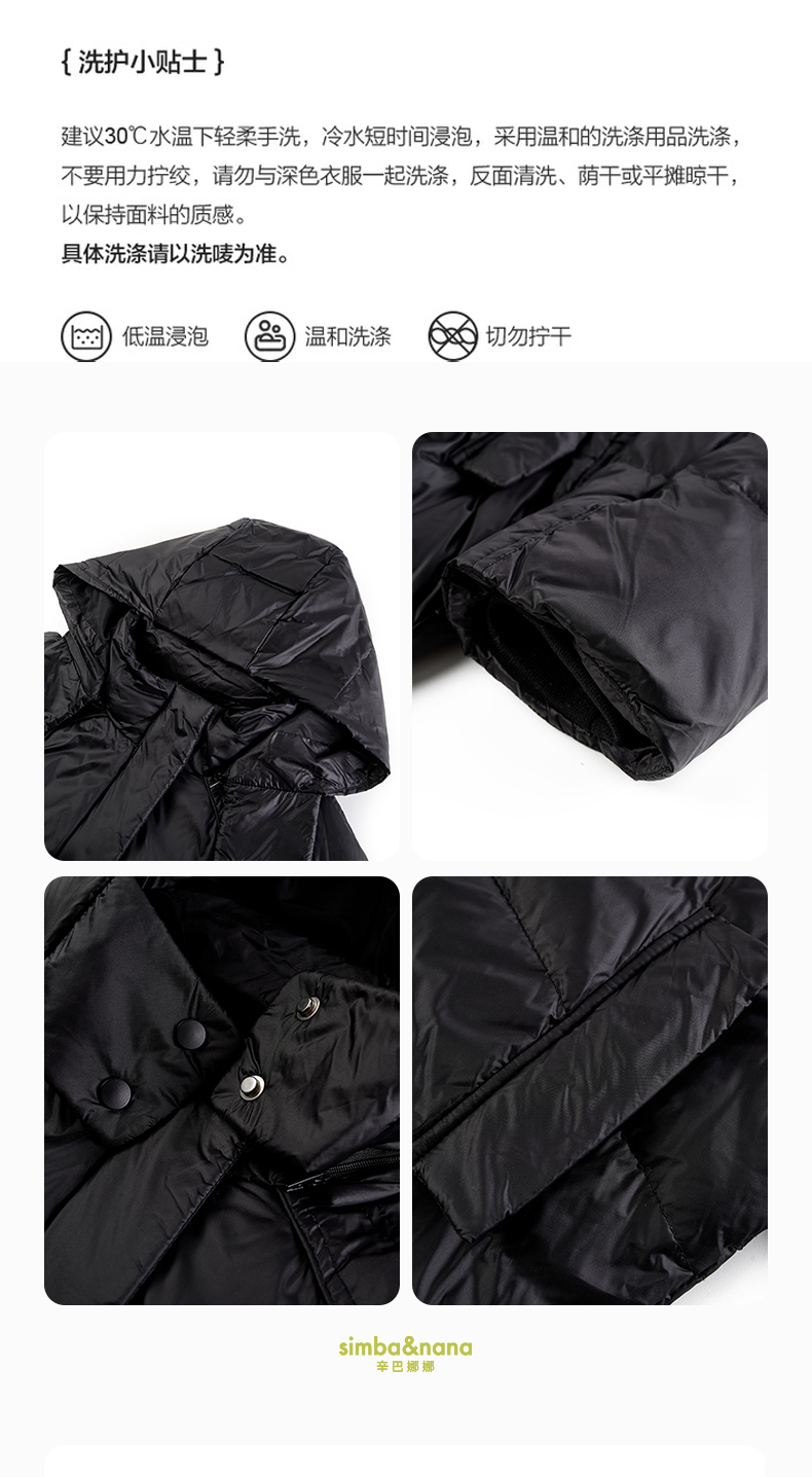 【辛巴娜娜】simbanana【大童】女童羽绒服中长款连帽加厚保暖冬季新款